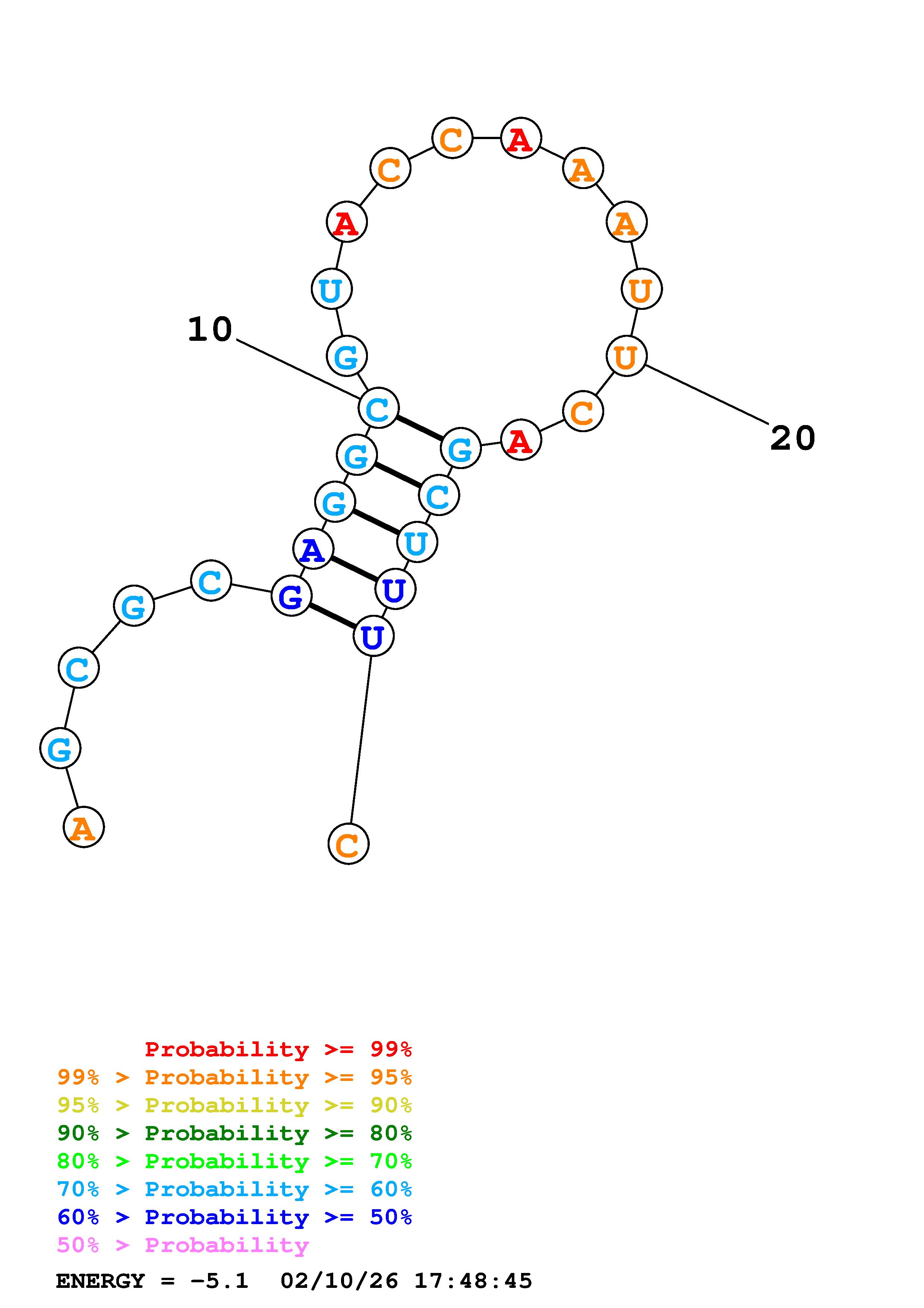 (Generate a structure or structures composed of highly probable base pairs. This is an alternative method for structure prediction that may have higher fidelity in structure prediction.)