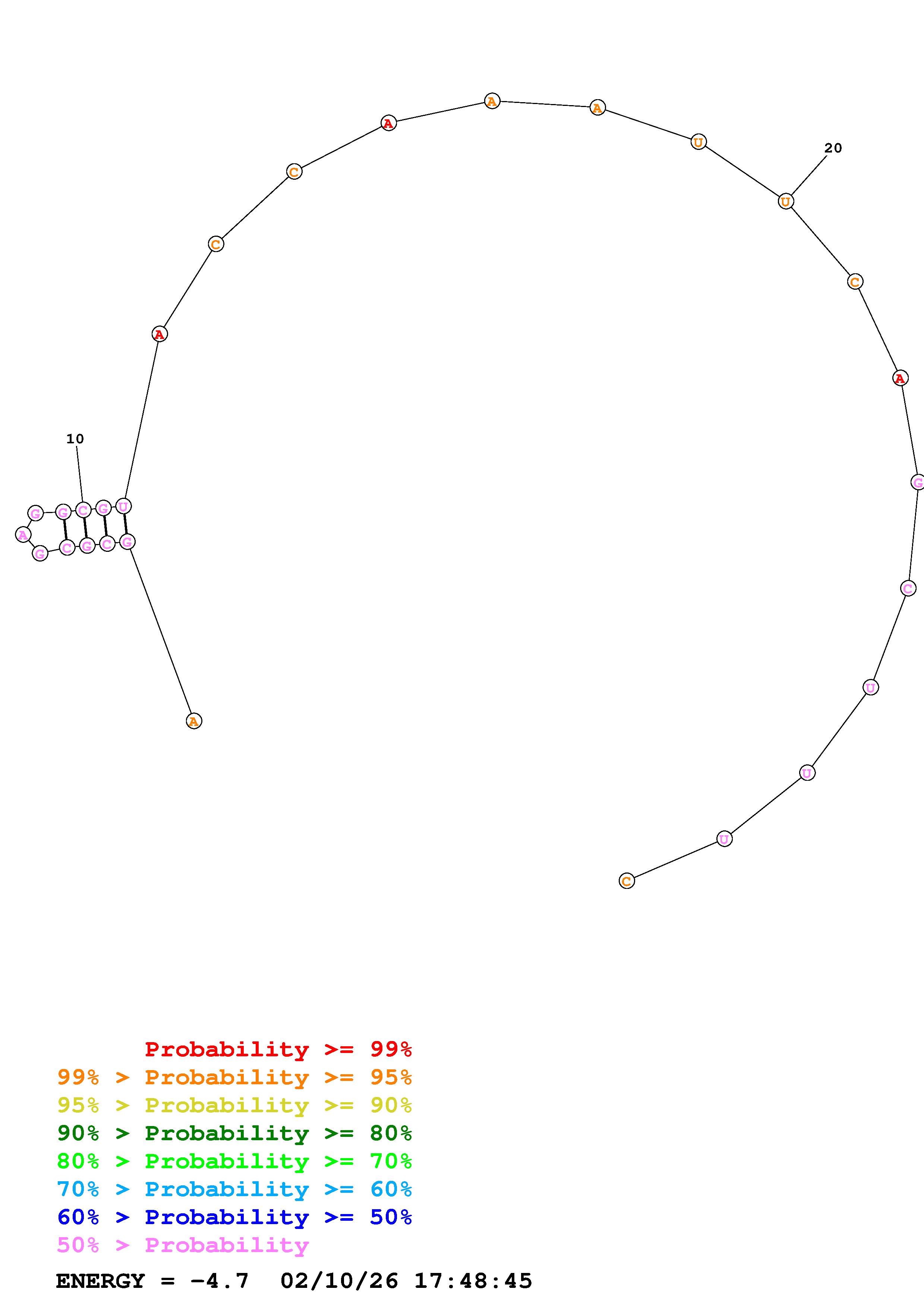 (Predict a secondary structure of probable base pairs, which might include pseudoknots.)