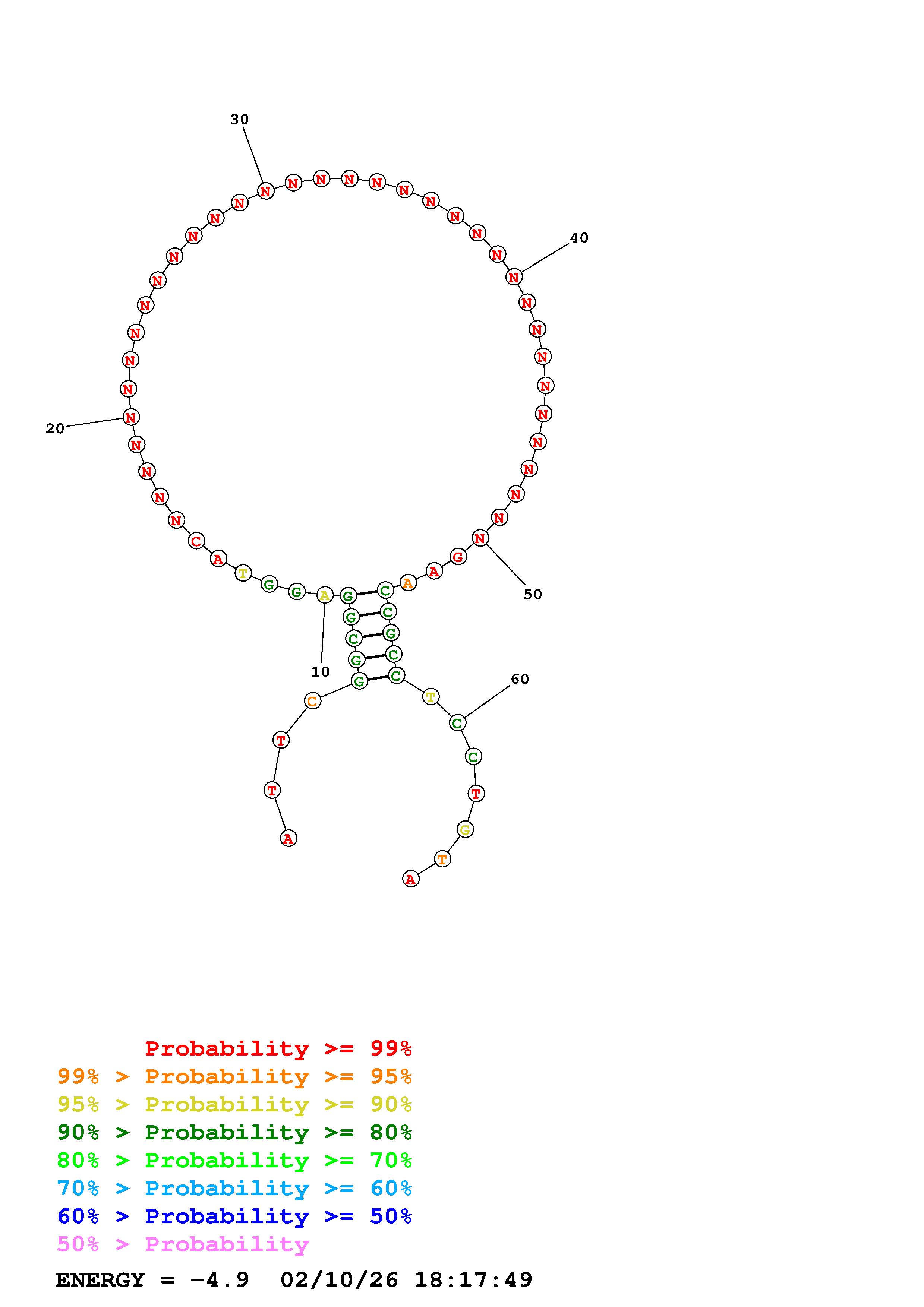 (Generate a structure or structures composed of highly probable base pairs. This is an alternative method for structure prediction that may have higher fidelity in structure prediction.)