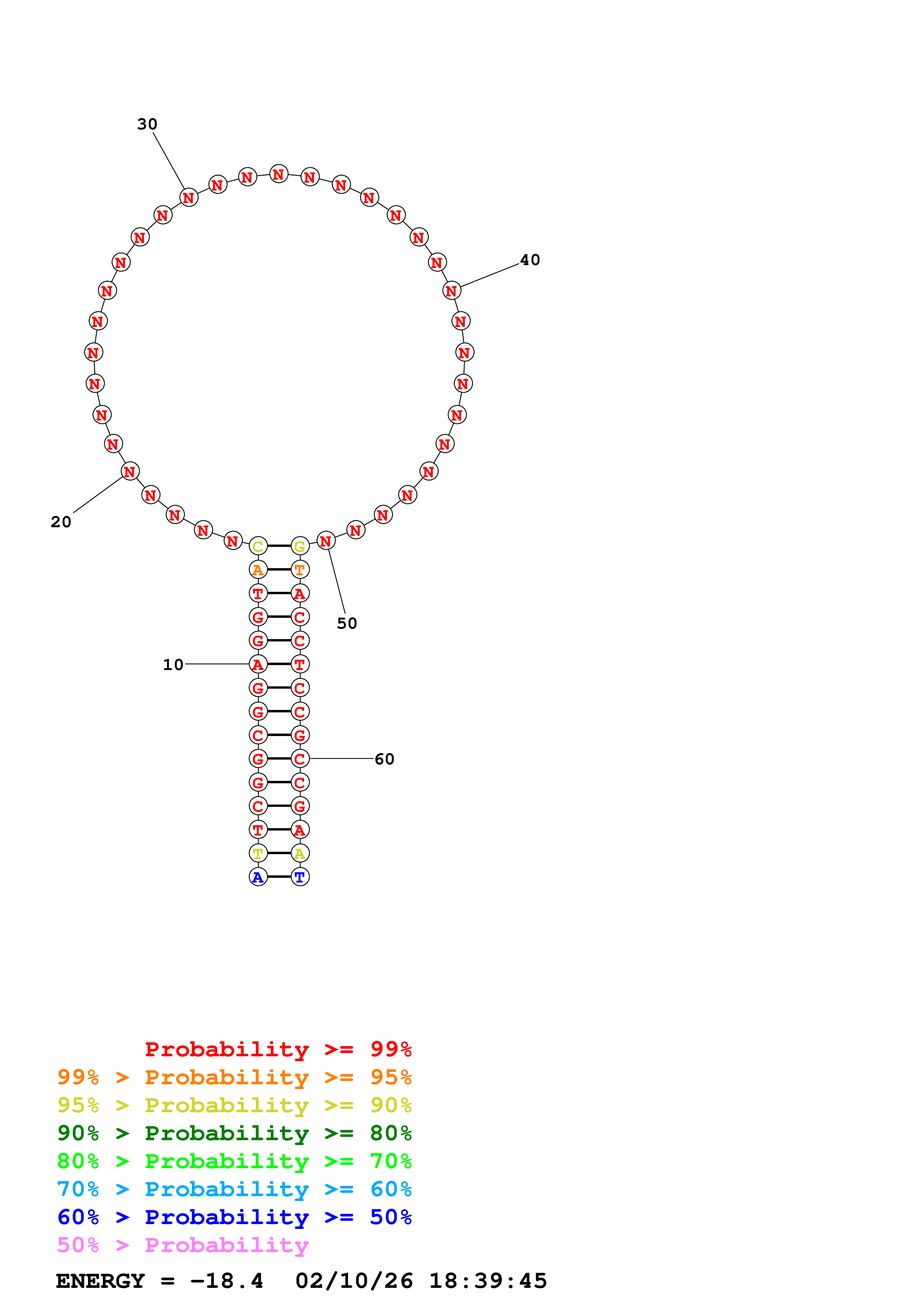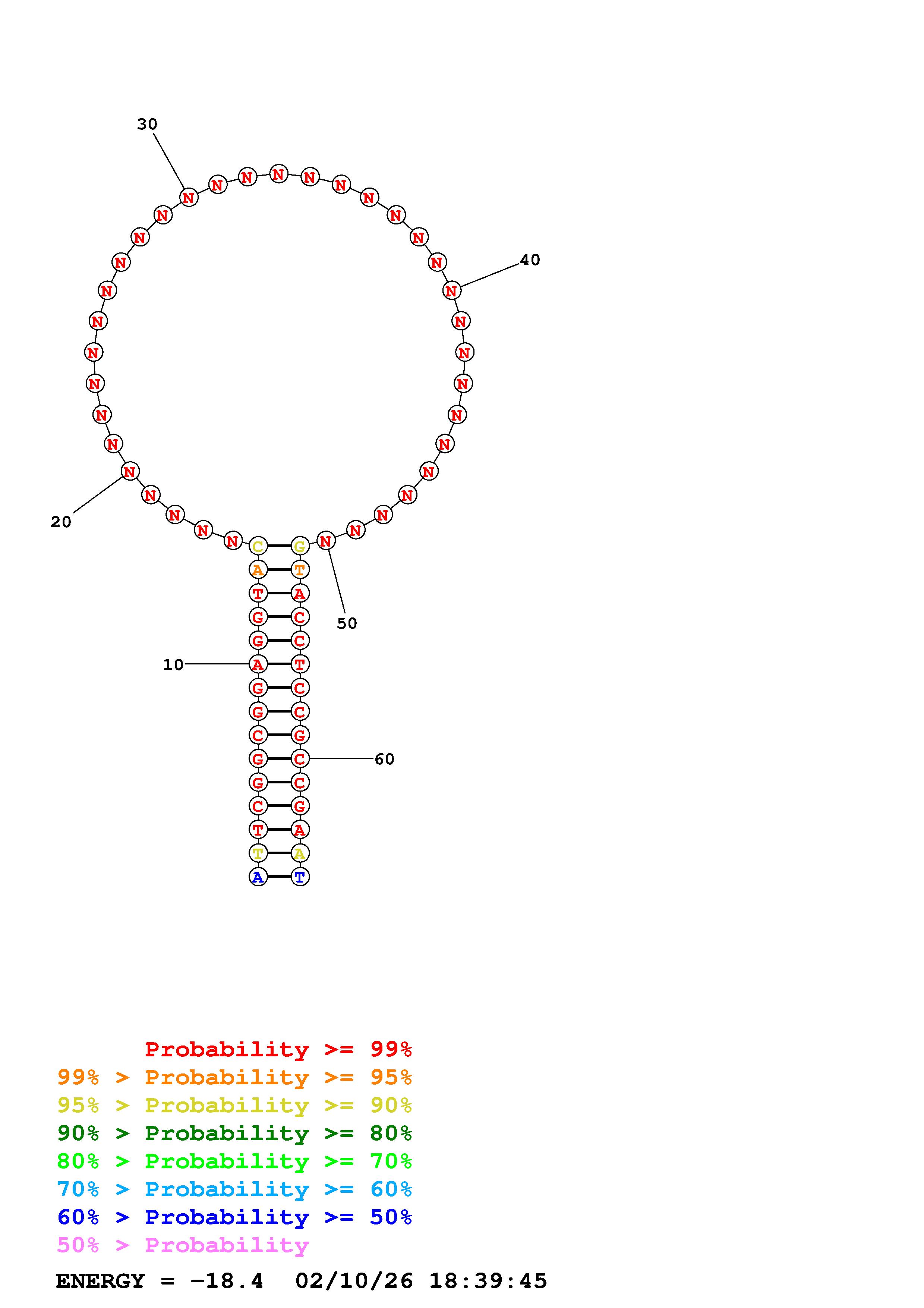 Fold Predict1.fasta Fold.ct --DNA --loop 30 --maximum 20 --percent 10 --temperature 298.15 --window 3
