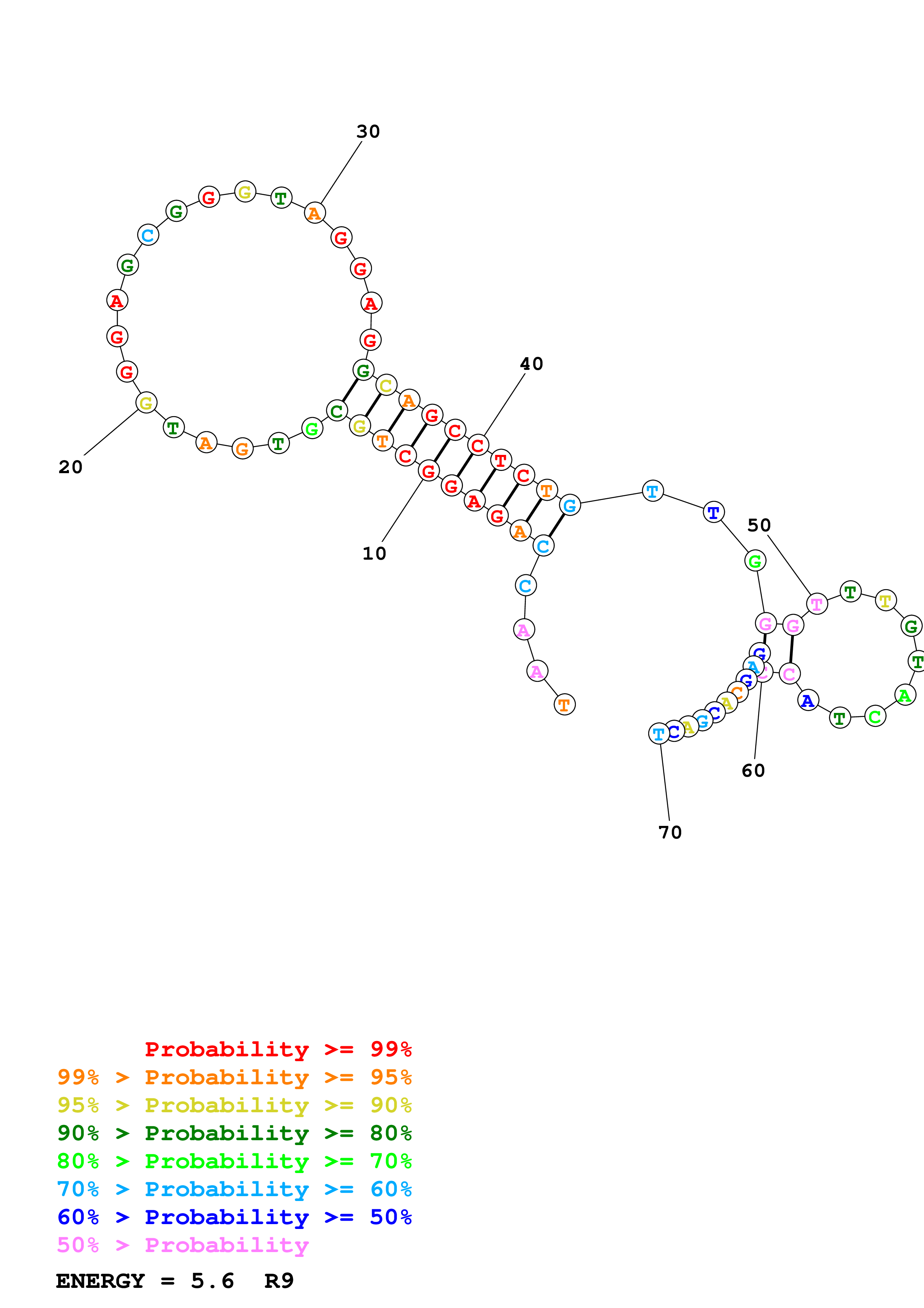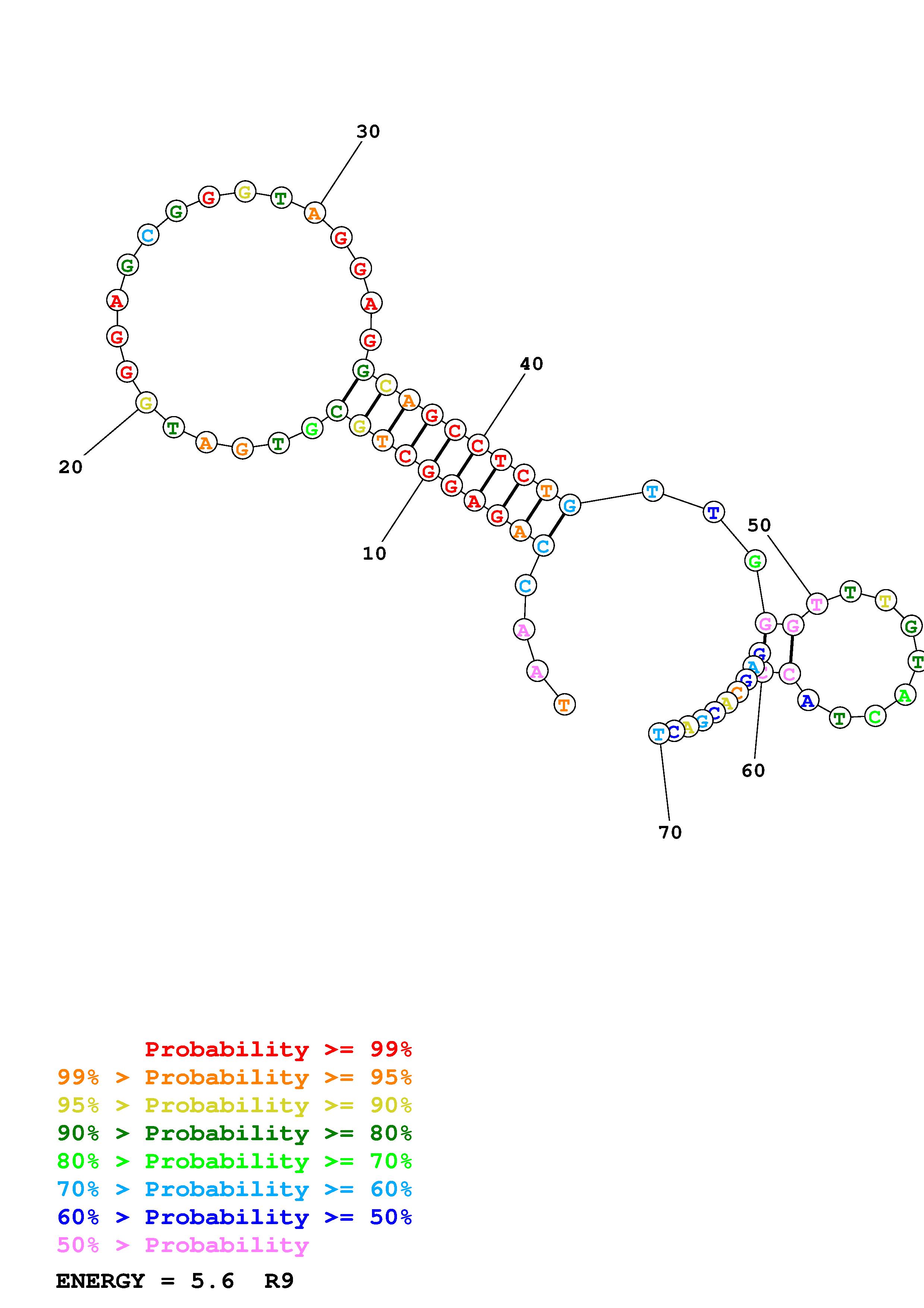 Fold Predict1.fasta Fold.ct --DNA --loop 30 --maximum 20 --percent 10 --temperature 300.15 --window 3