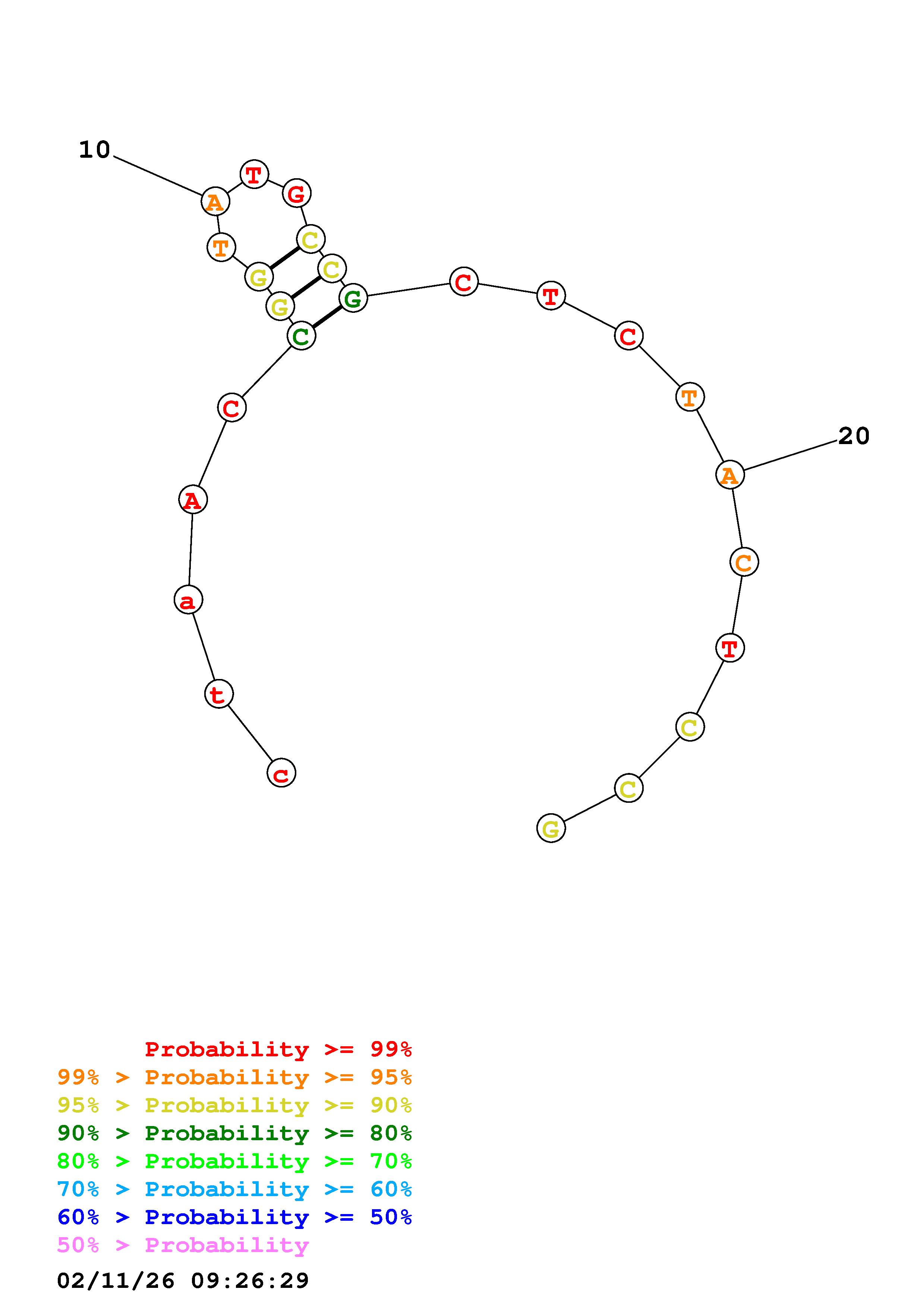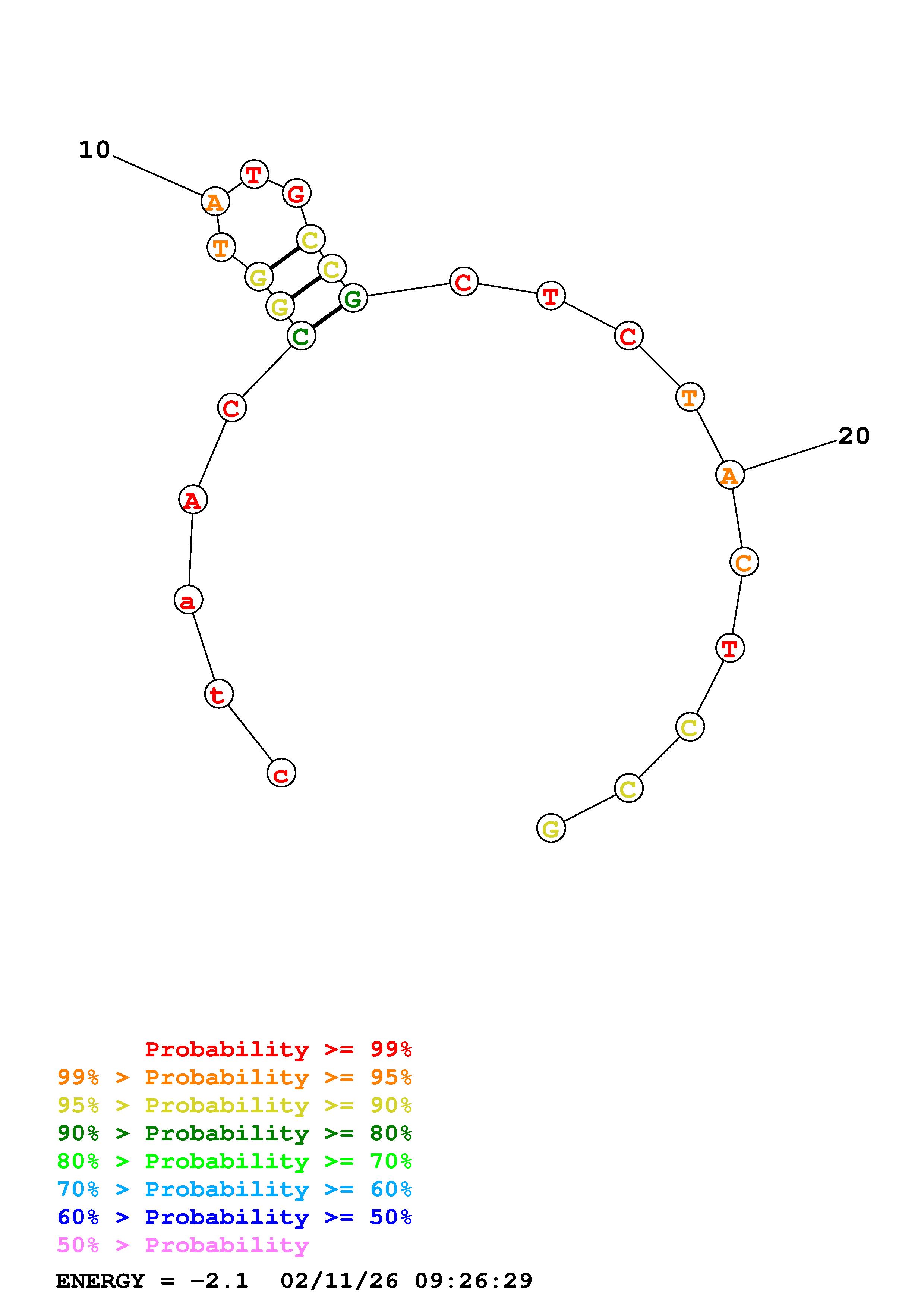 Fold Predict1.fasta Fold.ct --DNA --loop 30 --maximum 20 --percent 10 --temperature 310.15 --window 3