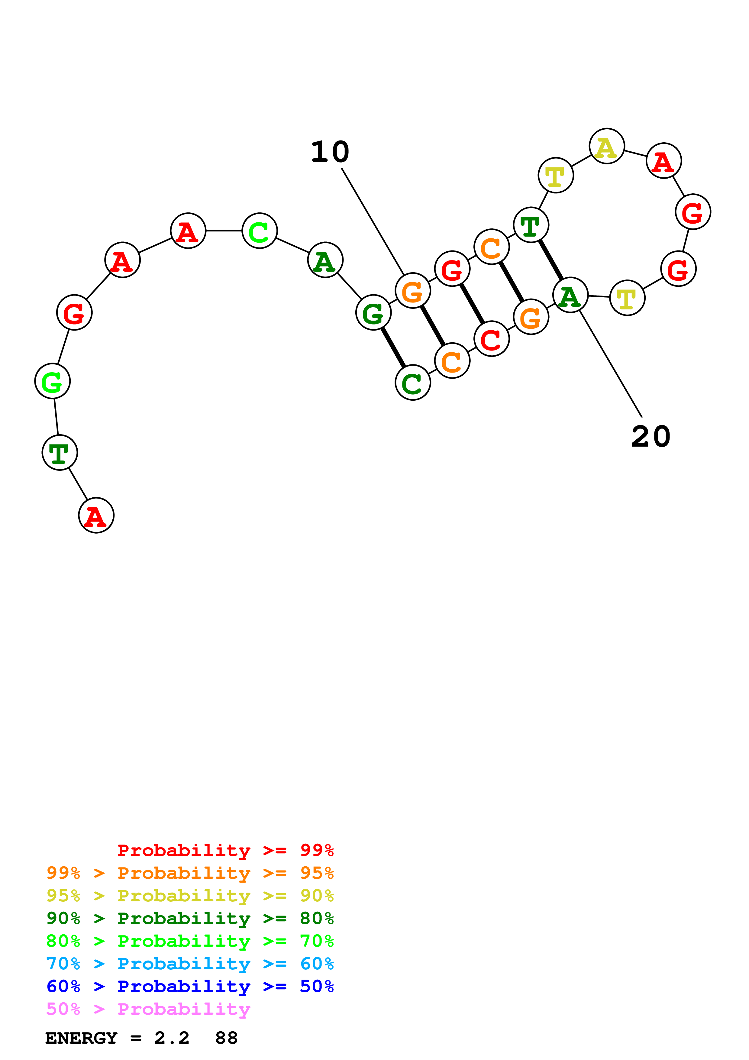 (Generate a structure or structures composed of highly probable base pairs. This is an alternative method for structure prediction that may have higher fidelity in structure prediction.)