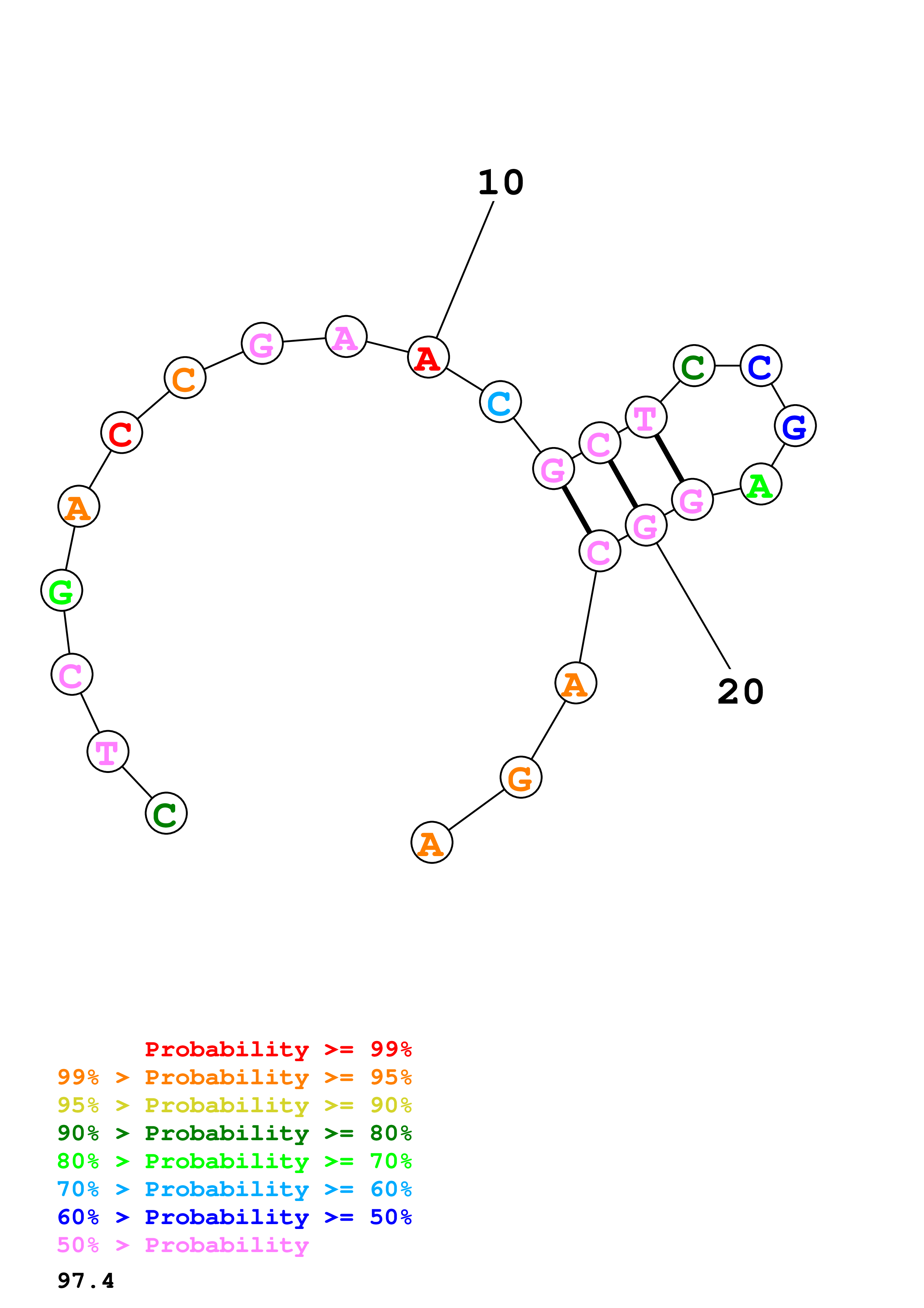 (Generate a structure or structures composed of highly probable base pairs. This is an alternative method for structure prediction that may have higher fidelity in structure prediction.)