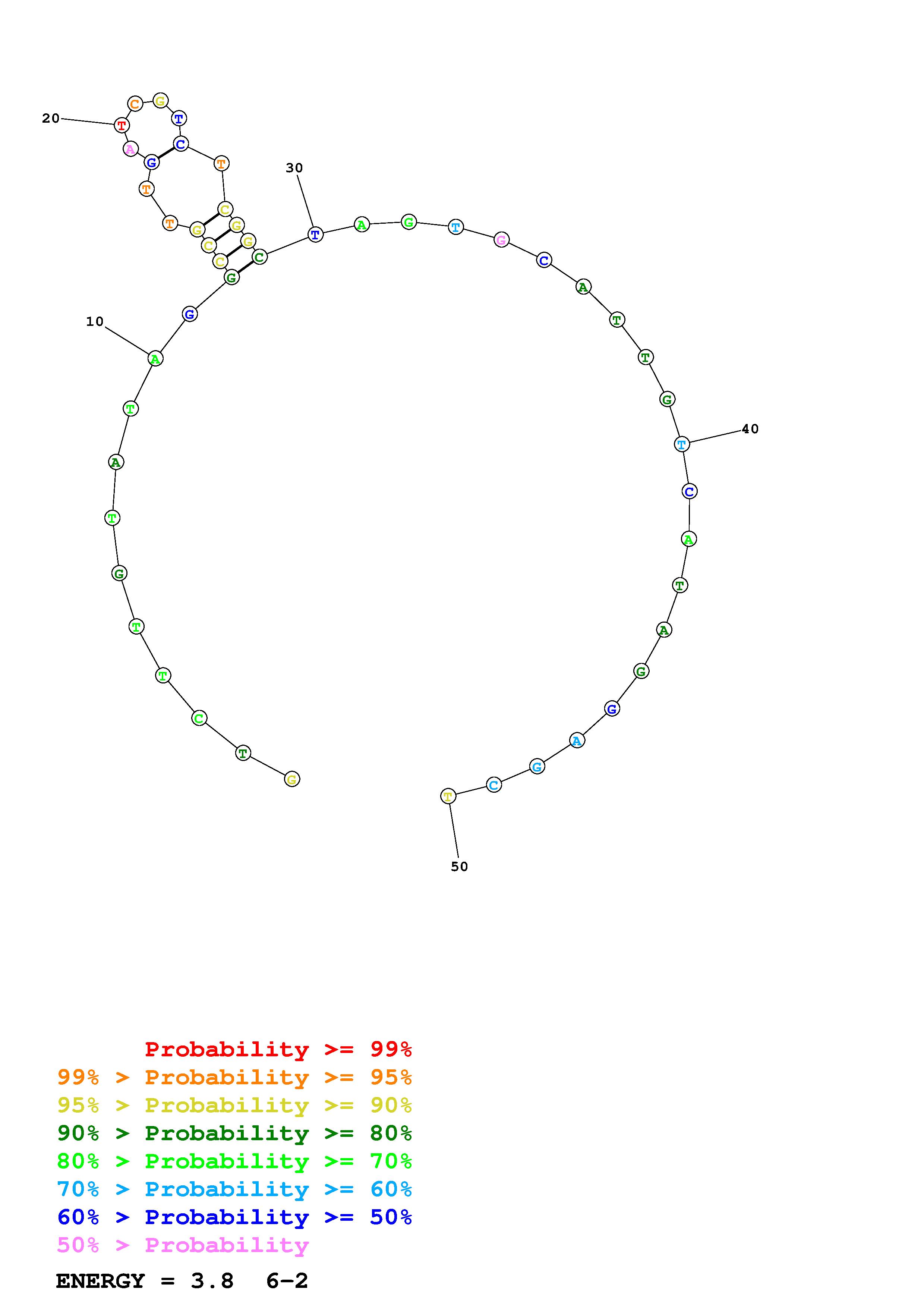 Fold Predict1.fasta Fold.ct --DNA --loop 30 --maximum 20 --percent 10 --temperature 310.15 --window 3