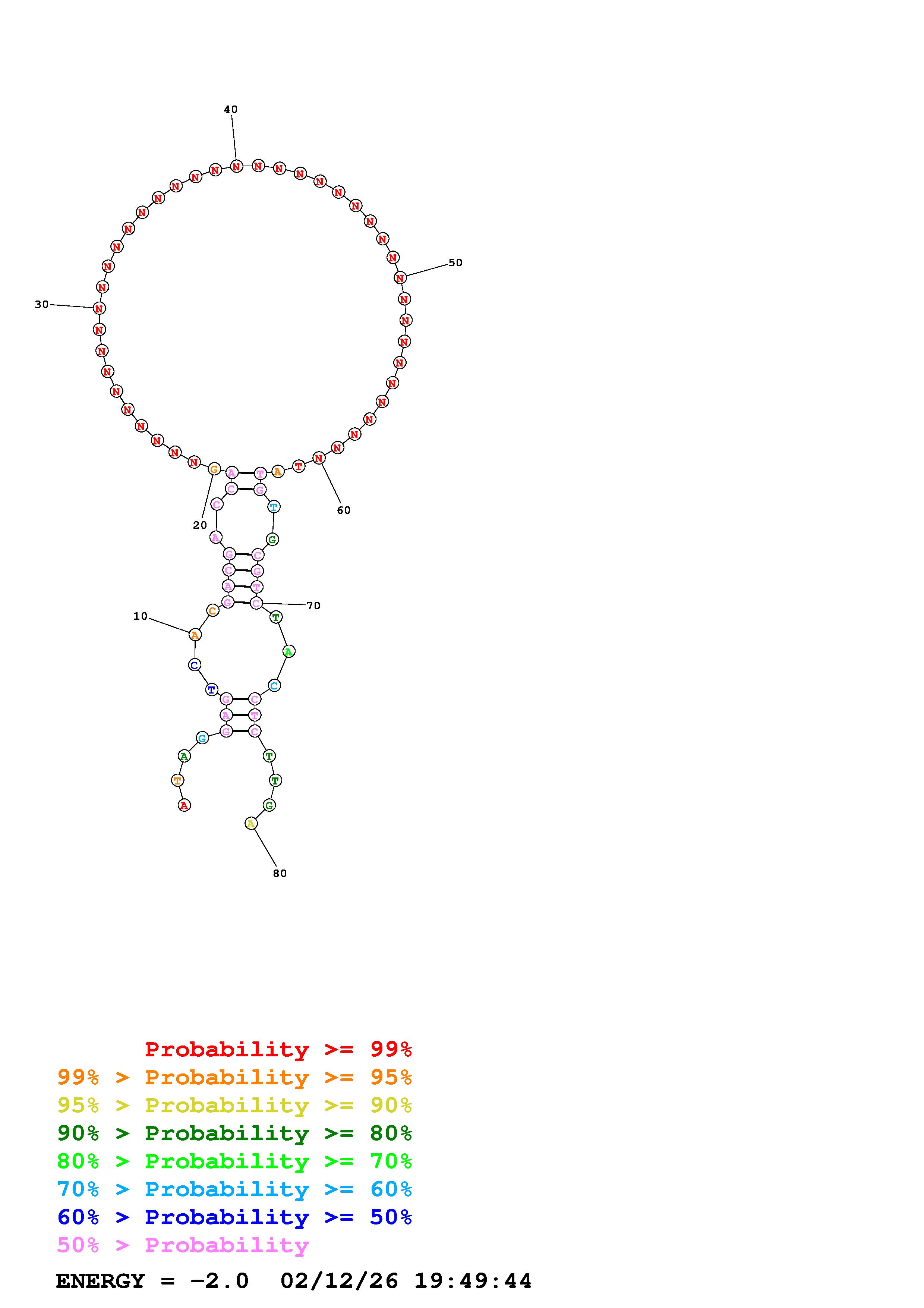 (Generate a structure or structures composed of highly probable base pairs. This is an alternative method for structure prediction that may have higher fidelity in structure prediction.)