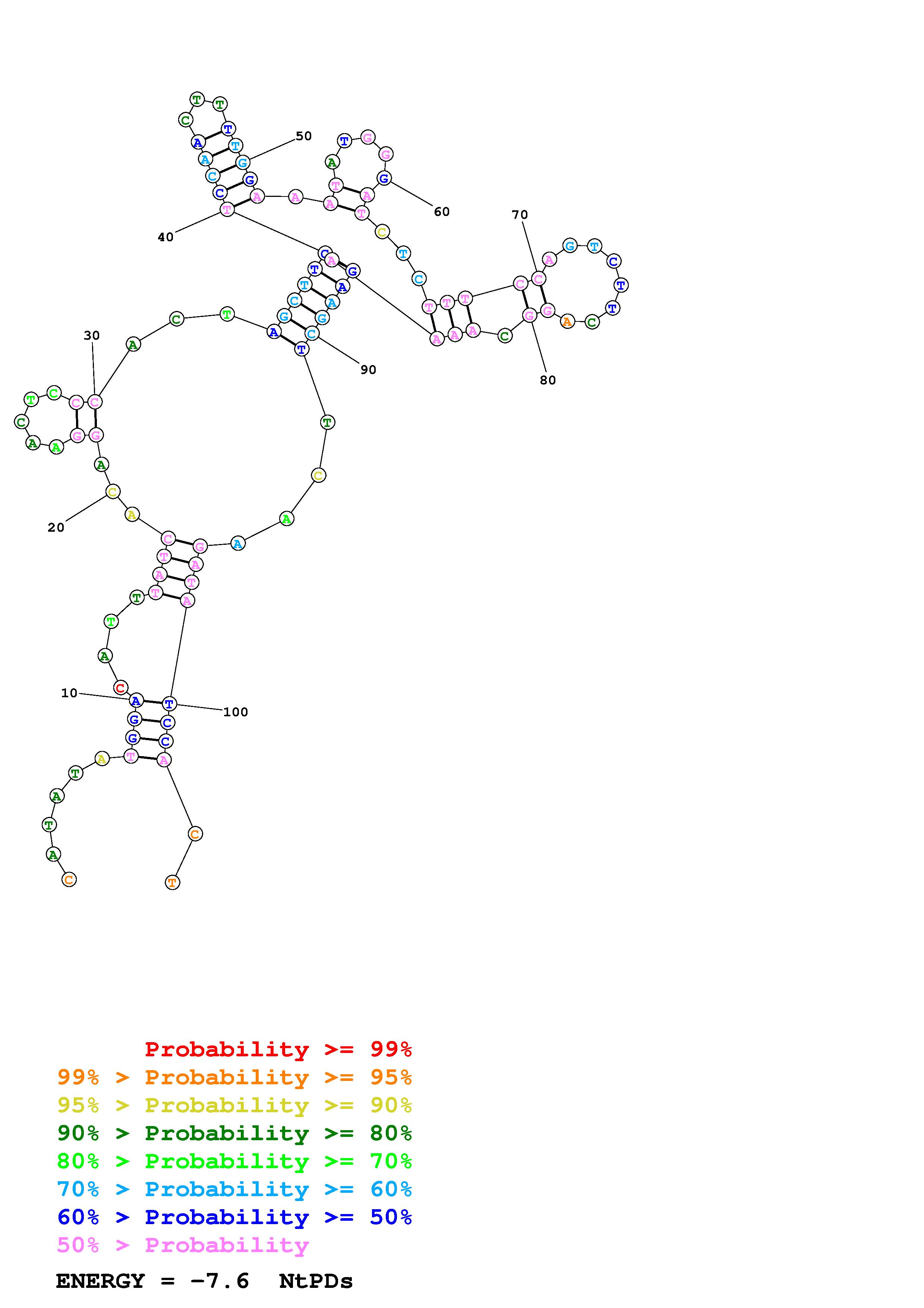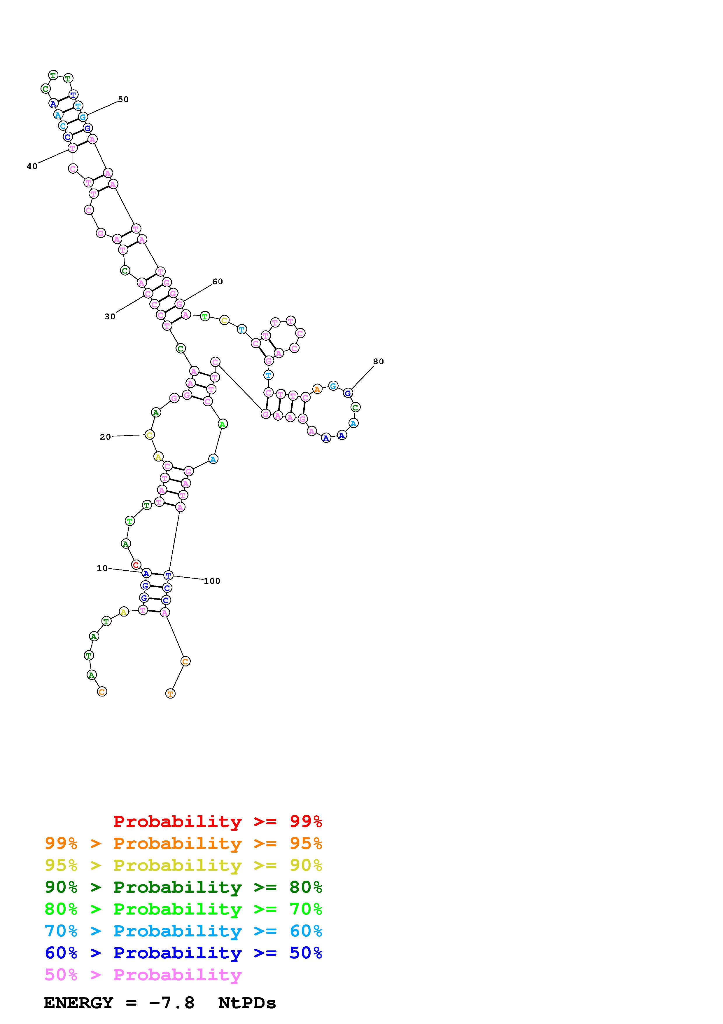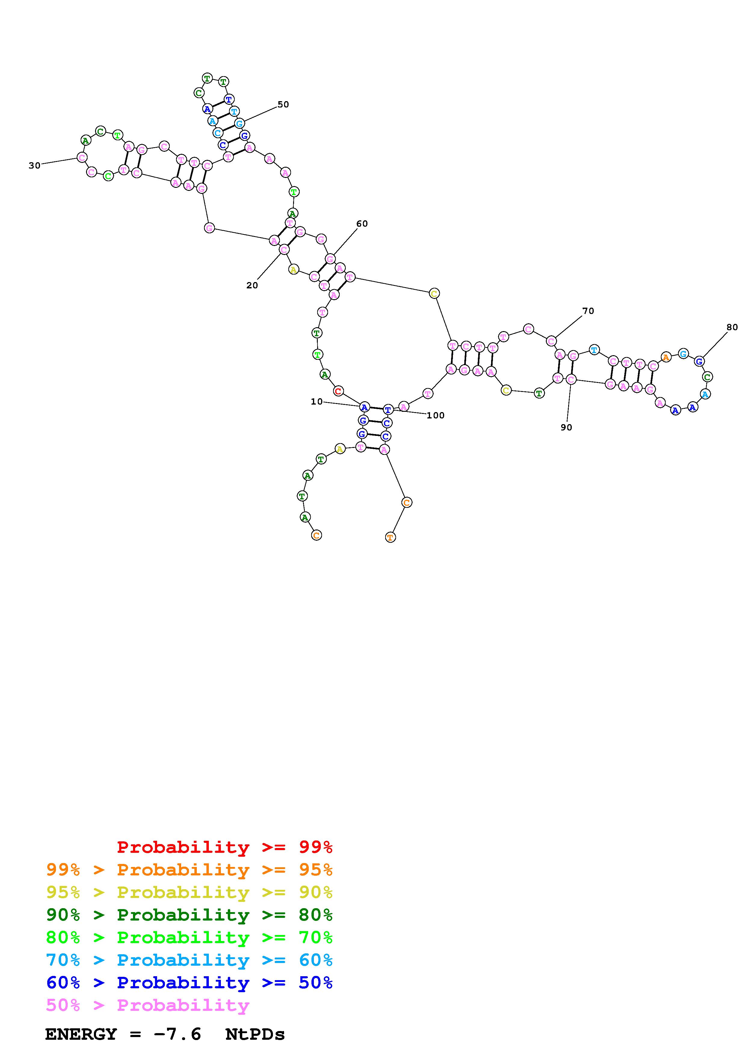 Fold Predict1.fasta Fold.ct --DNA --loop 30 --maximum 20 --percent 10 --temperature 310.15 --window 3