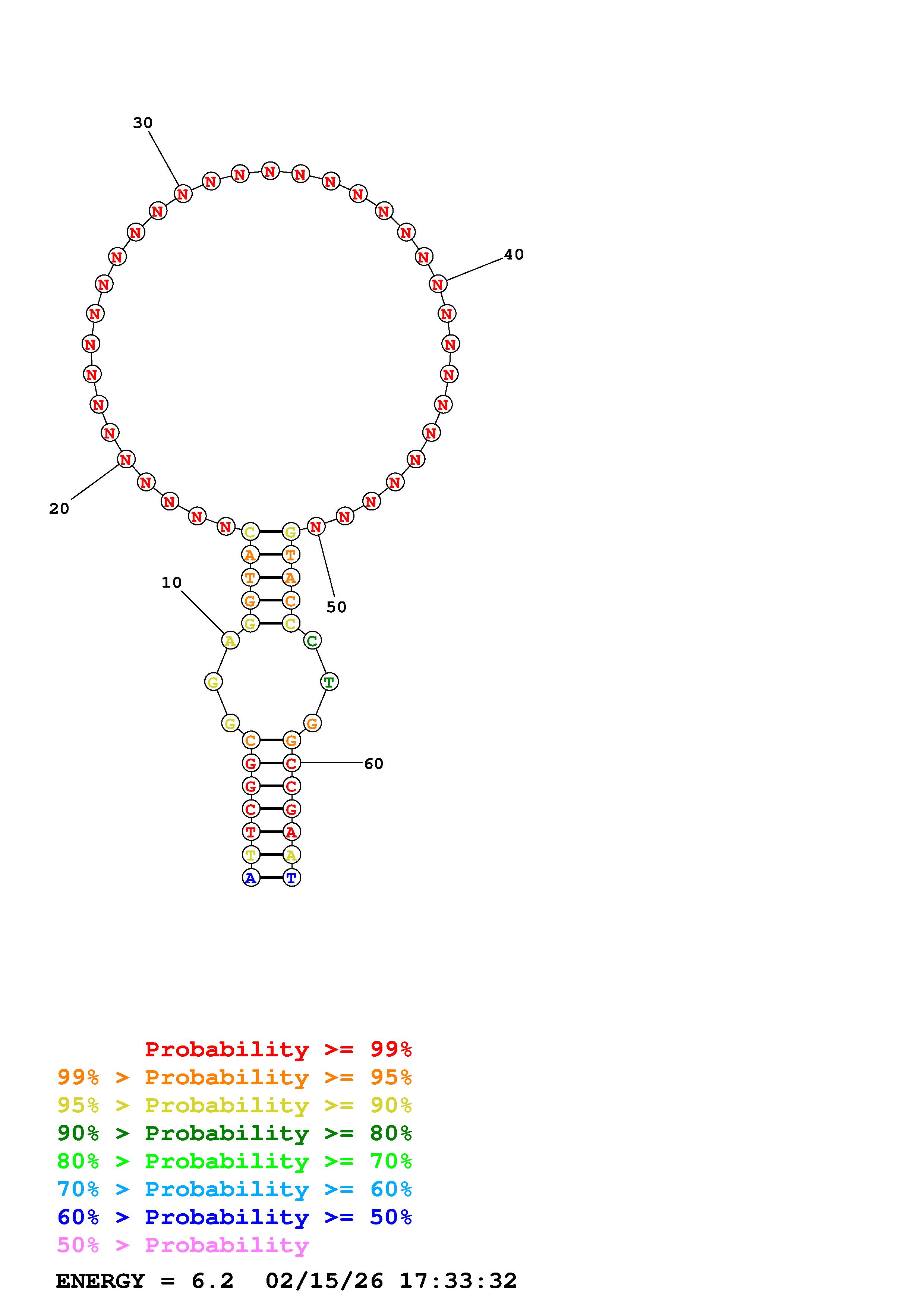 Fold Predict1.fasta Fold.ct --DNA --loop 30 --maximum 20 --percent 10 --temperature 298.15 --window 3