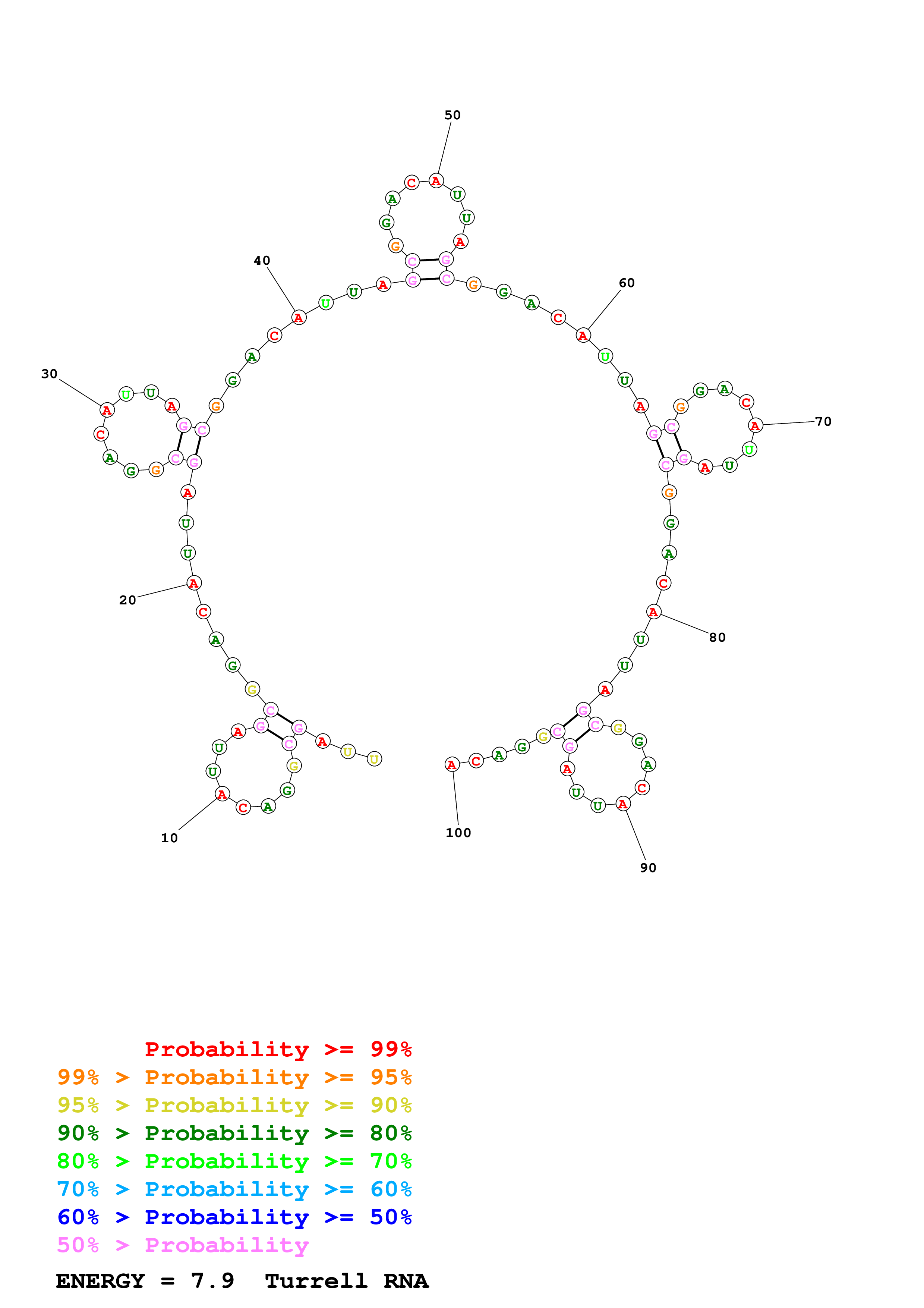 (Generate a structure or structures composed of highly probable base pairs. This is an alternative method for structure prediction that may have higher fidelity in structure prediction.)