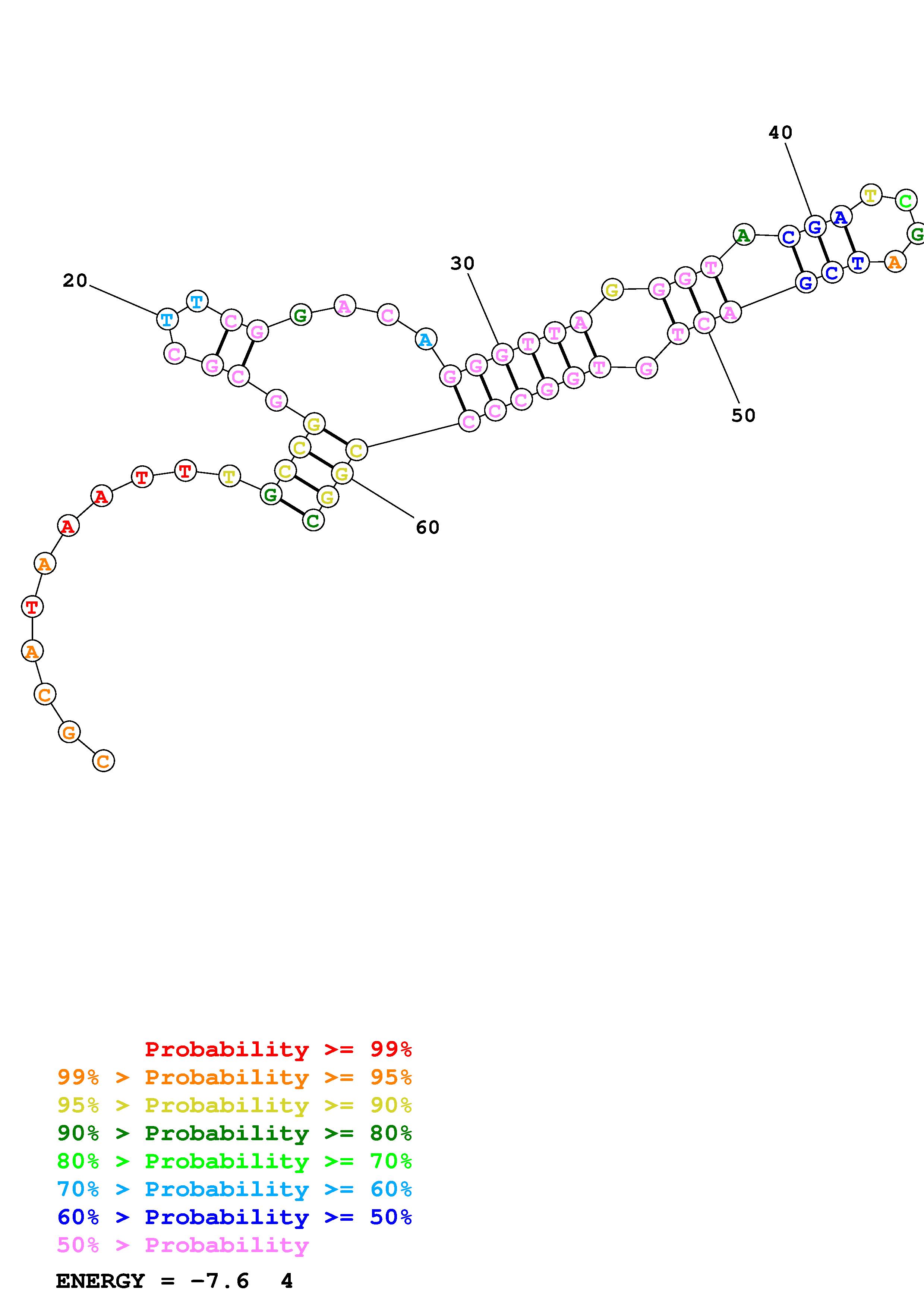 Fold Predict1.fasta Fold.ct --DNA --loop 30 --maximum 20 --percent 10 --temperature 310.15 --window 3