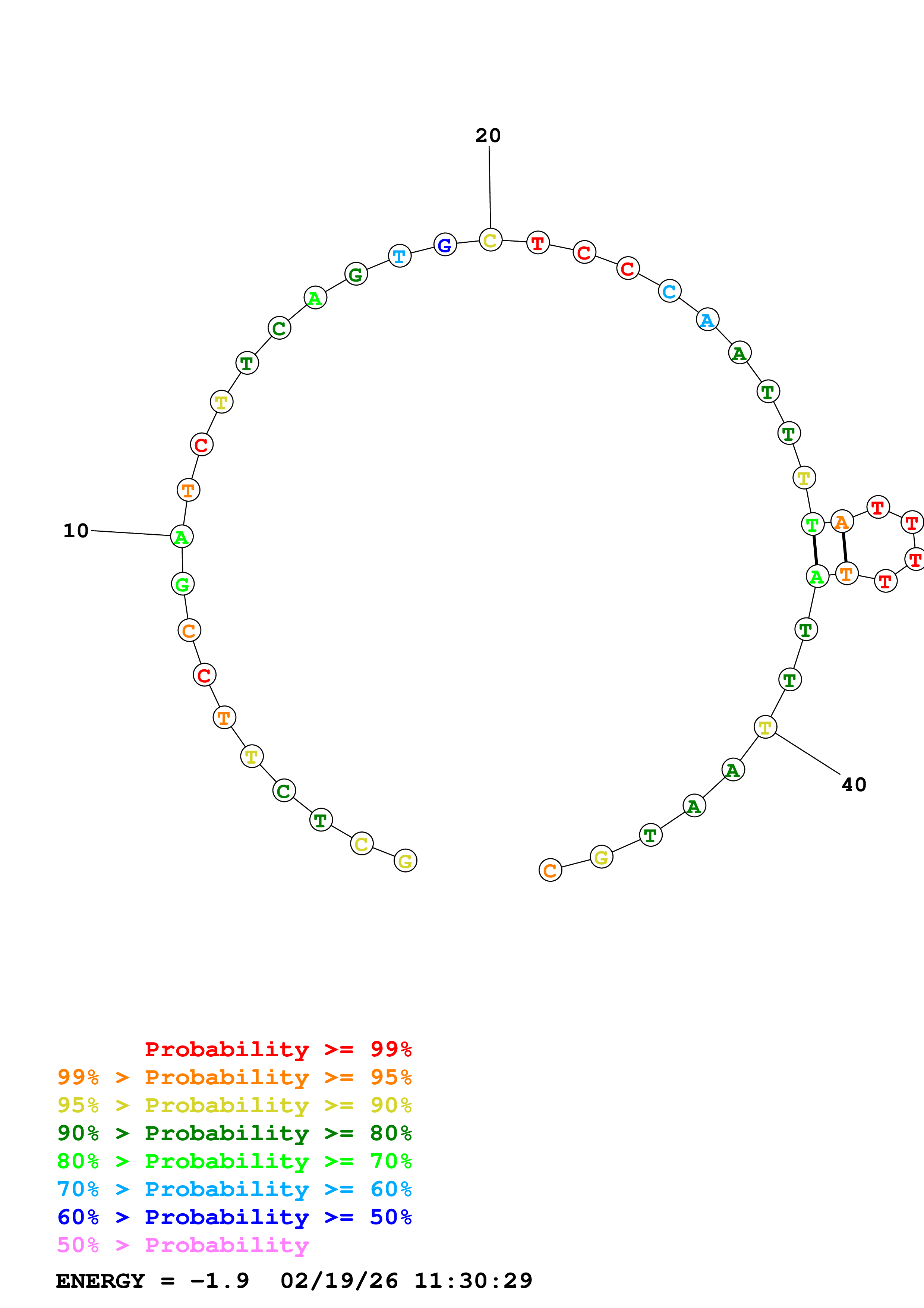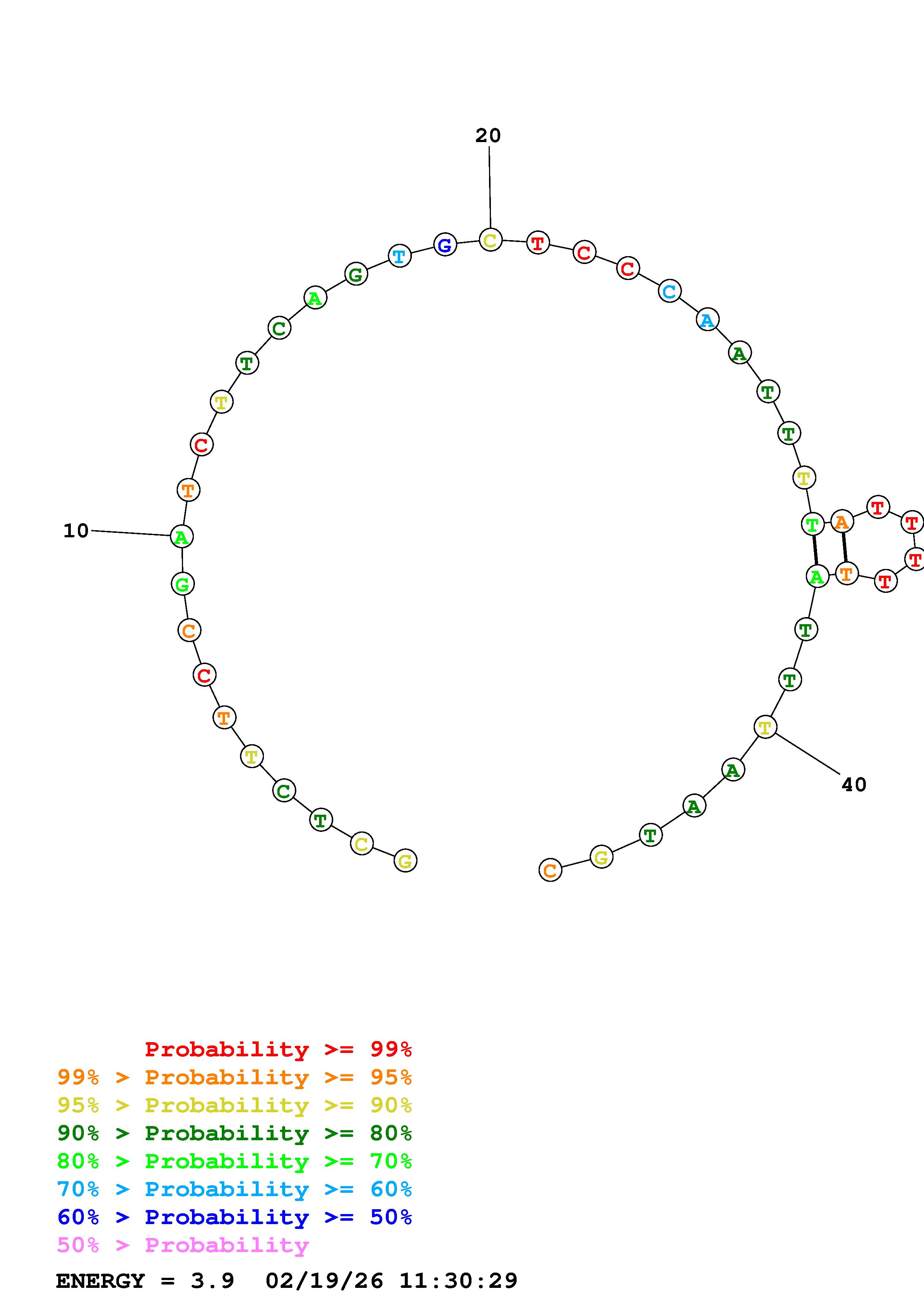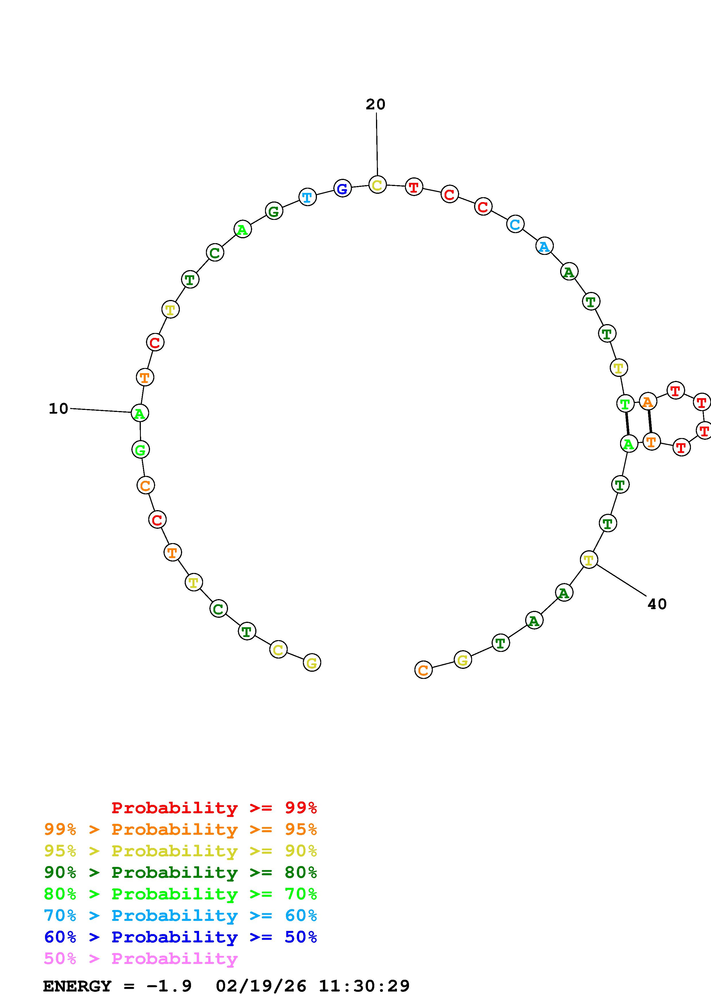 Fold Predict1.fasta Fold.ct --DNA --loop 30 --maximum 20 --percent 10 --temperature 333 --window 3