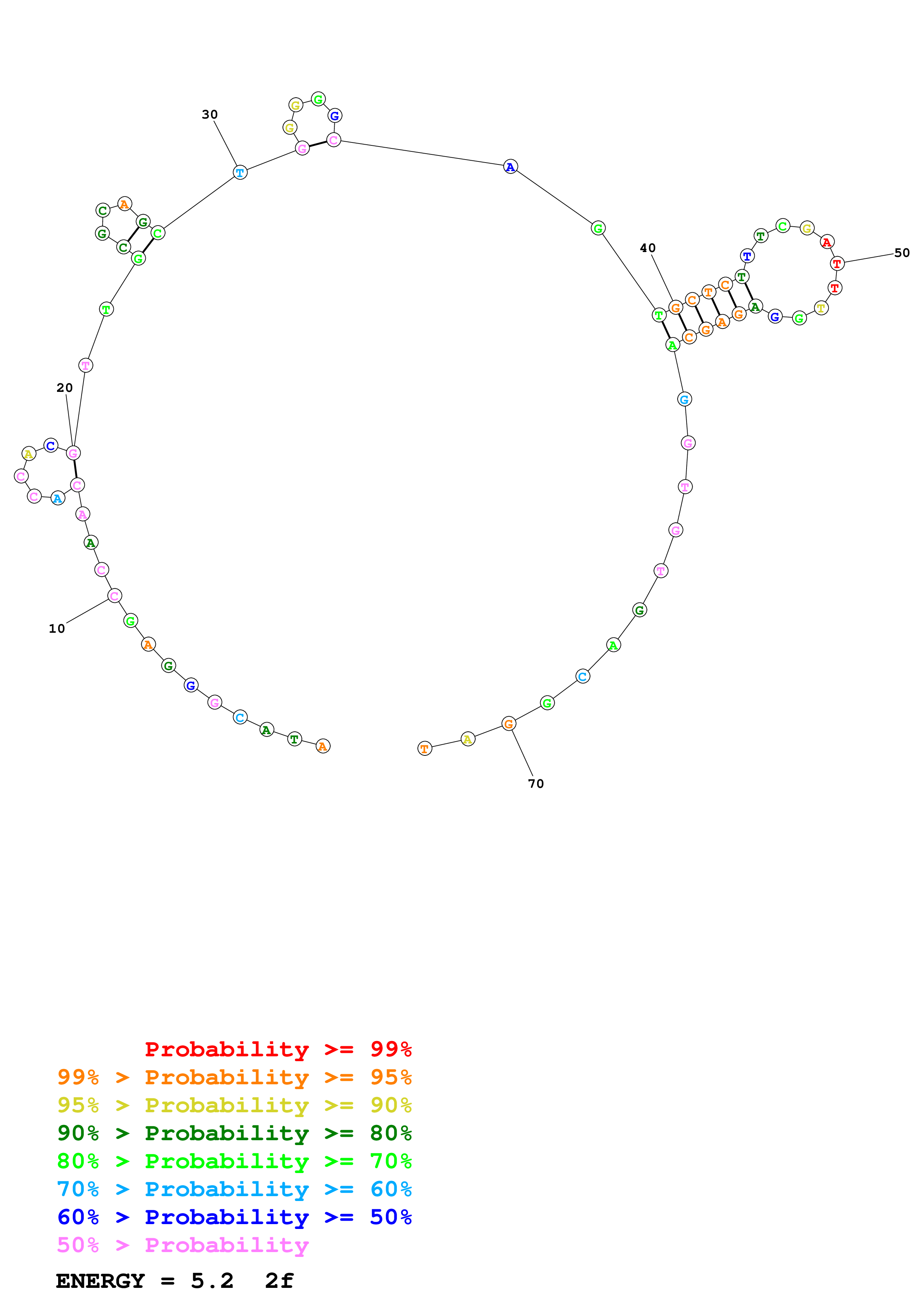 Fold Predict1.fasta Fold.ct --DNA --loop 30 --maximum 20 --percent 10 --temperature 310.15 --window 3