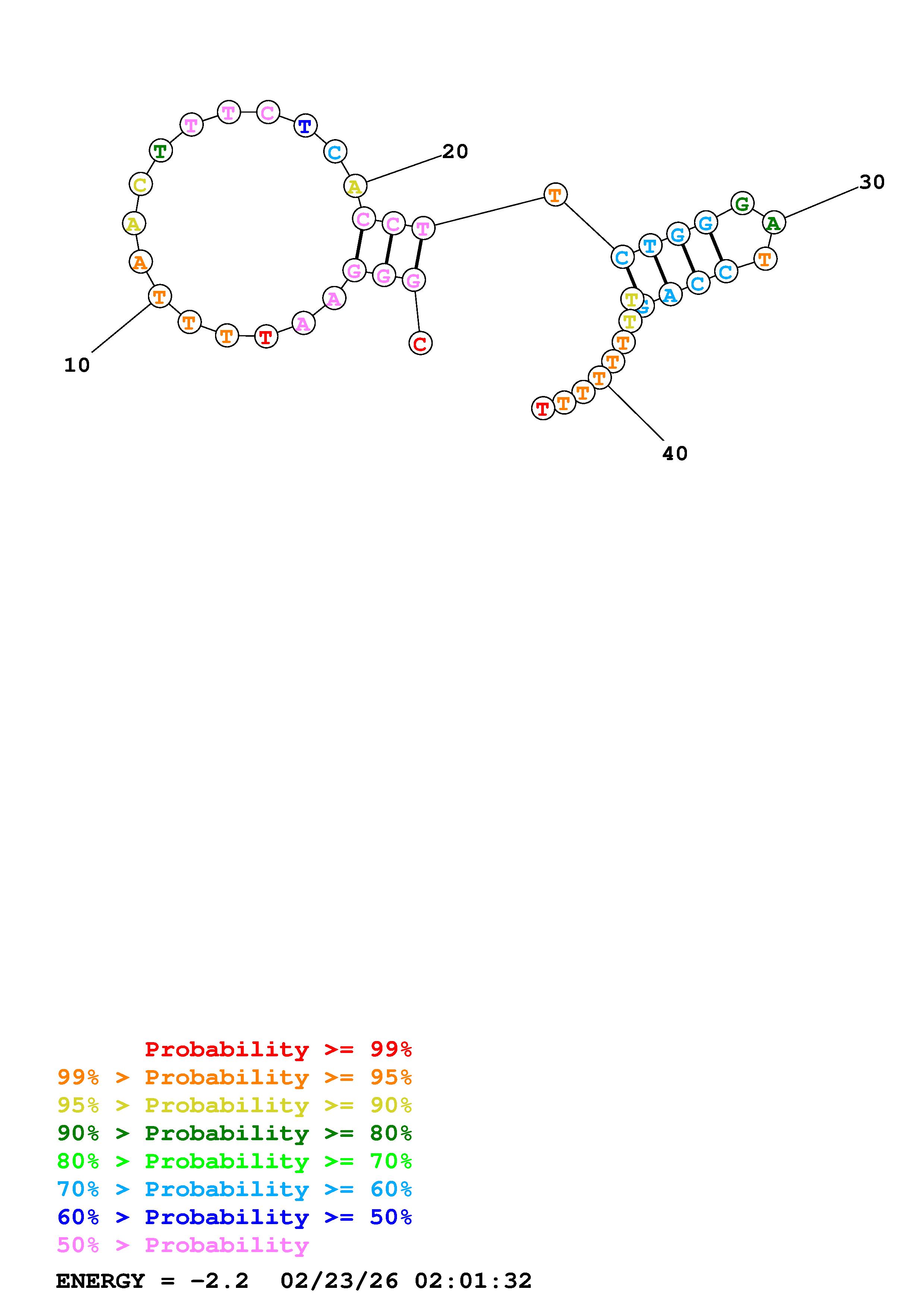 Fold Predict1.fasta Fold.ct --DNA --loop 30 --maximum 20 --percent 10 --temperature 310.15 --window 3