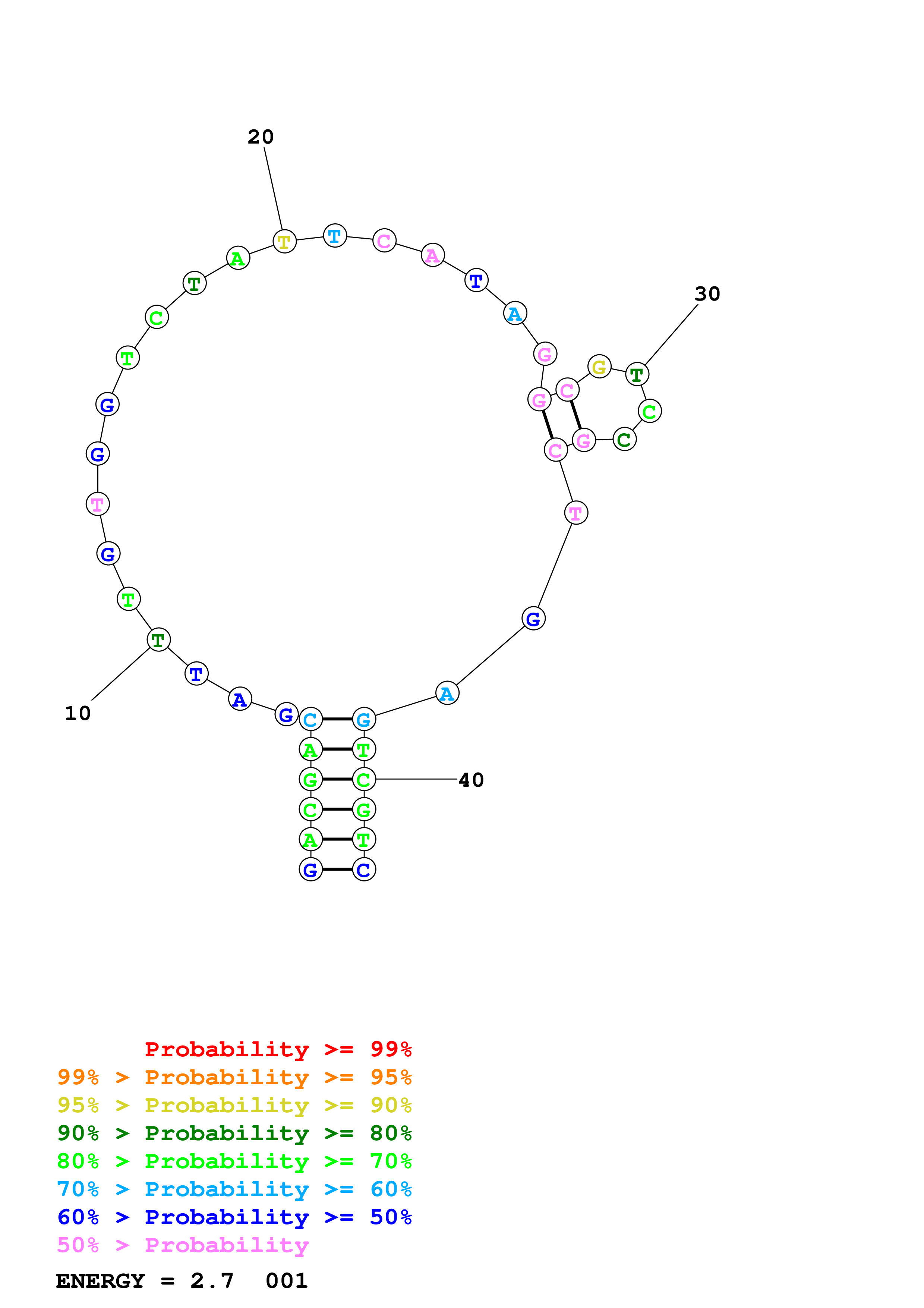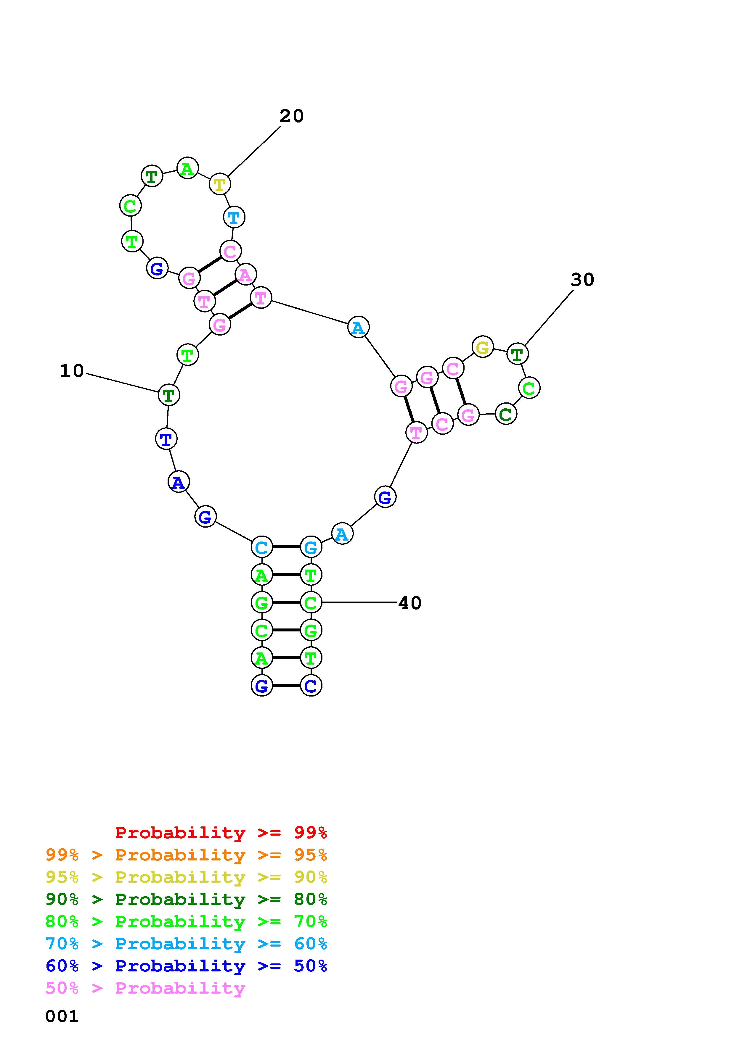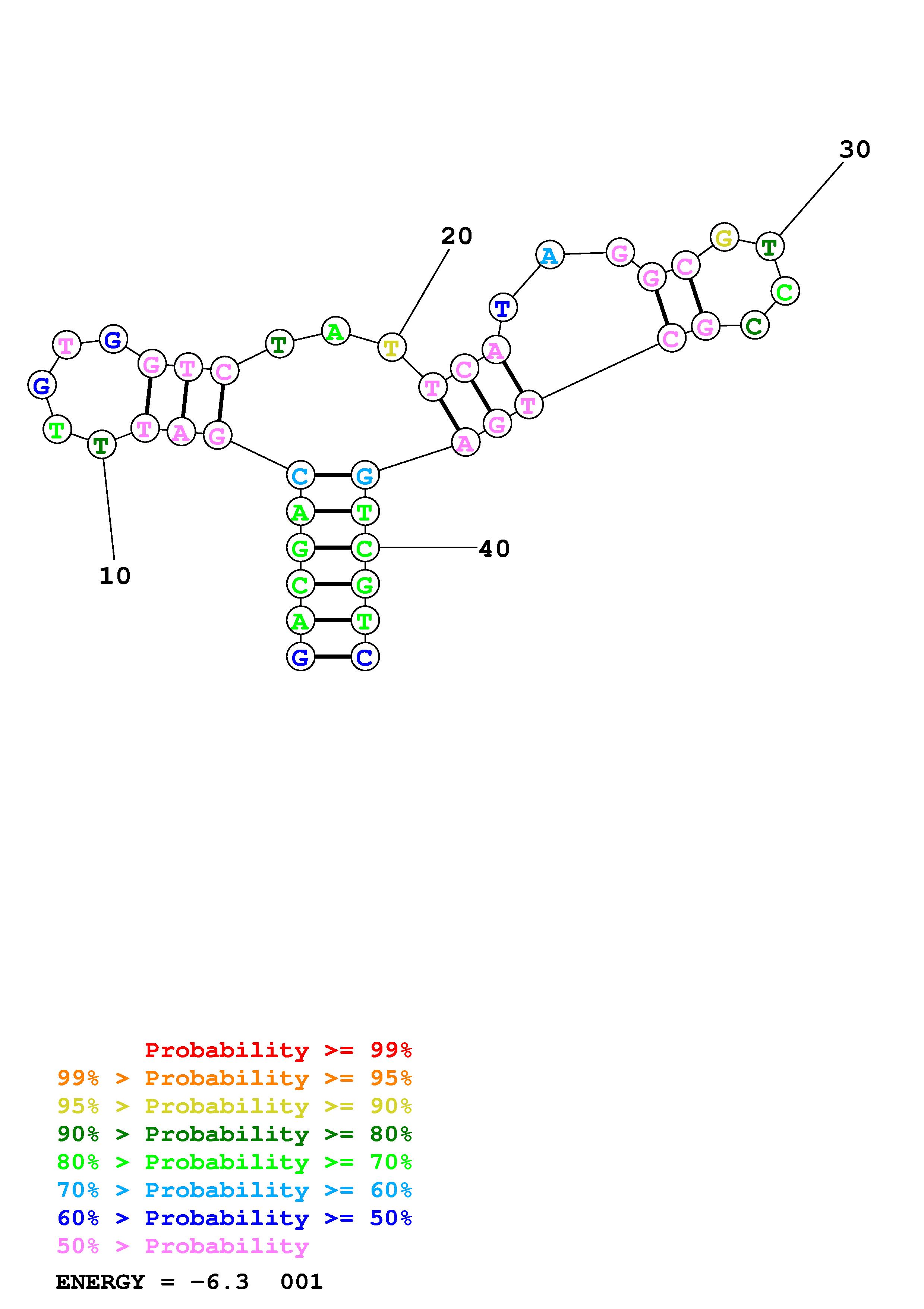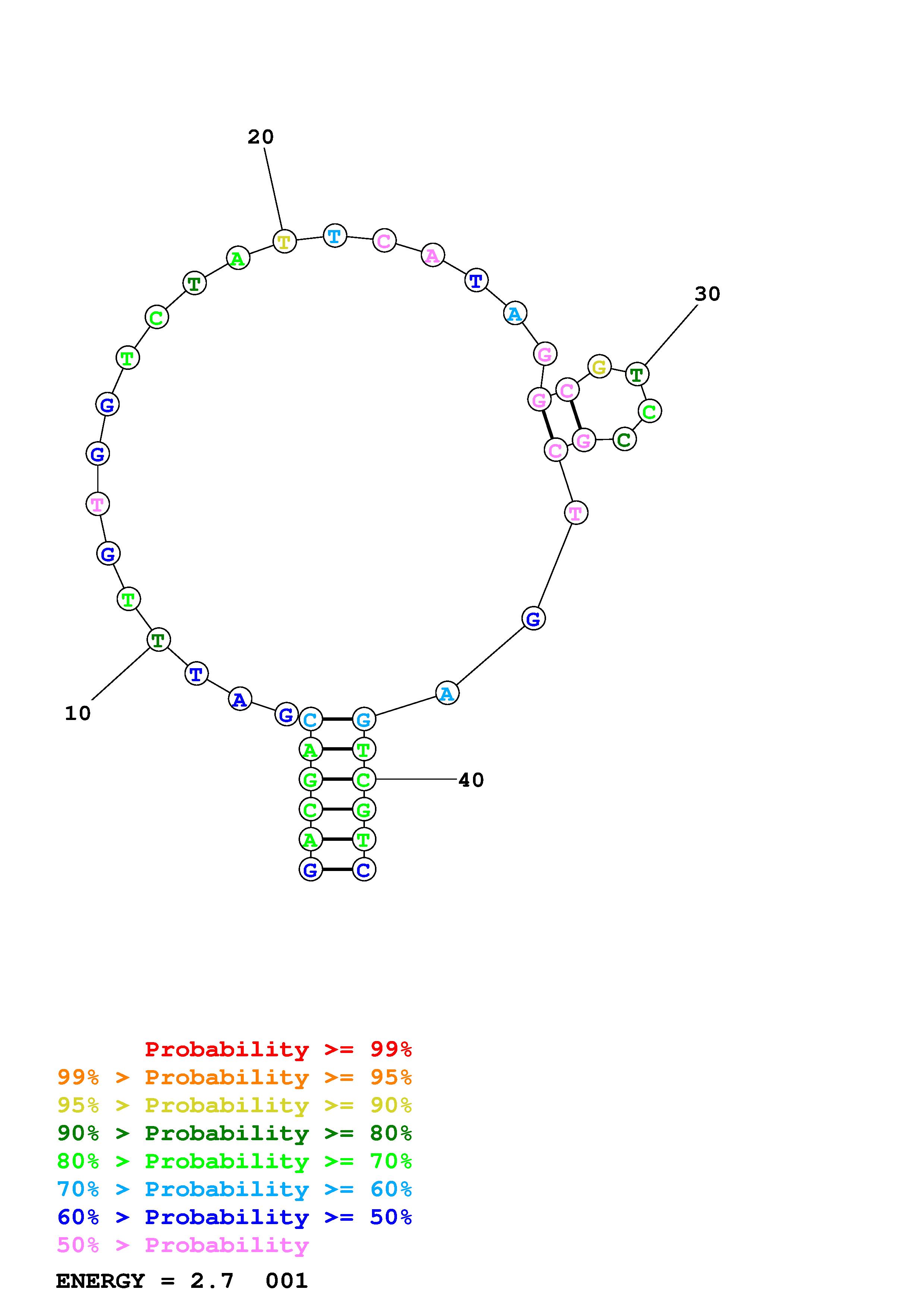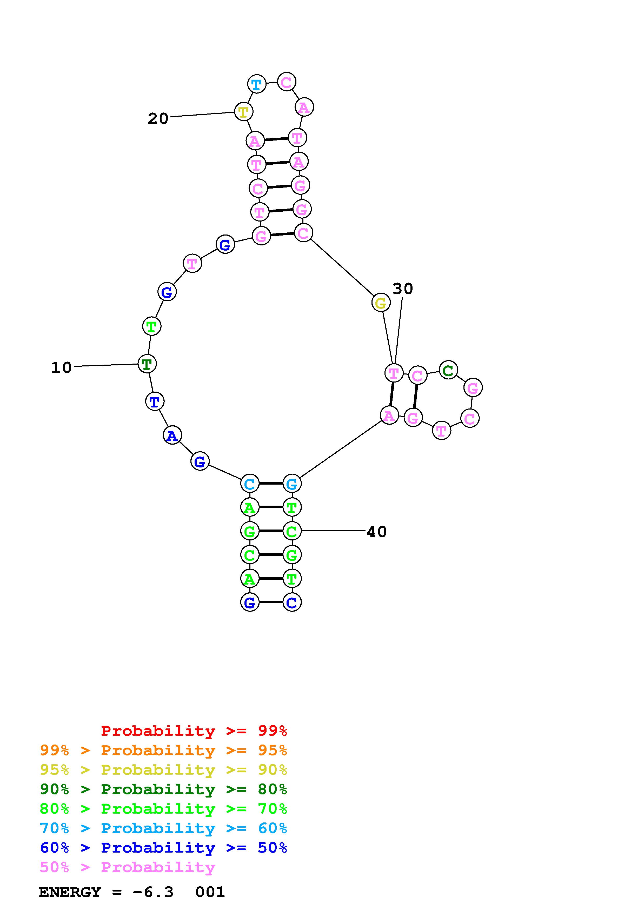 Fold Predict1.fasta Fold.ct --DNA --loop 30 --maximum 20 --percent 10 --temperature 298.15 --window 3