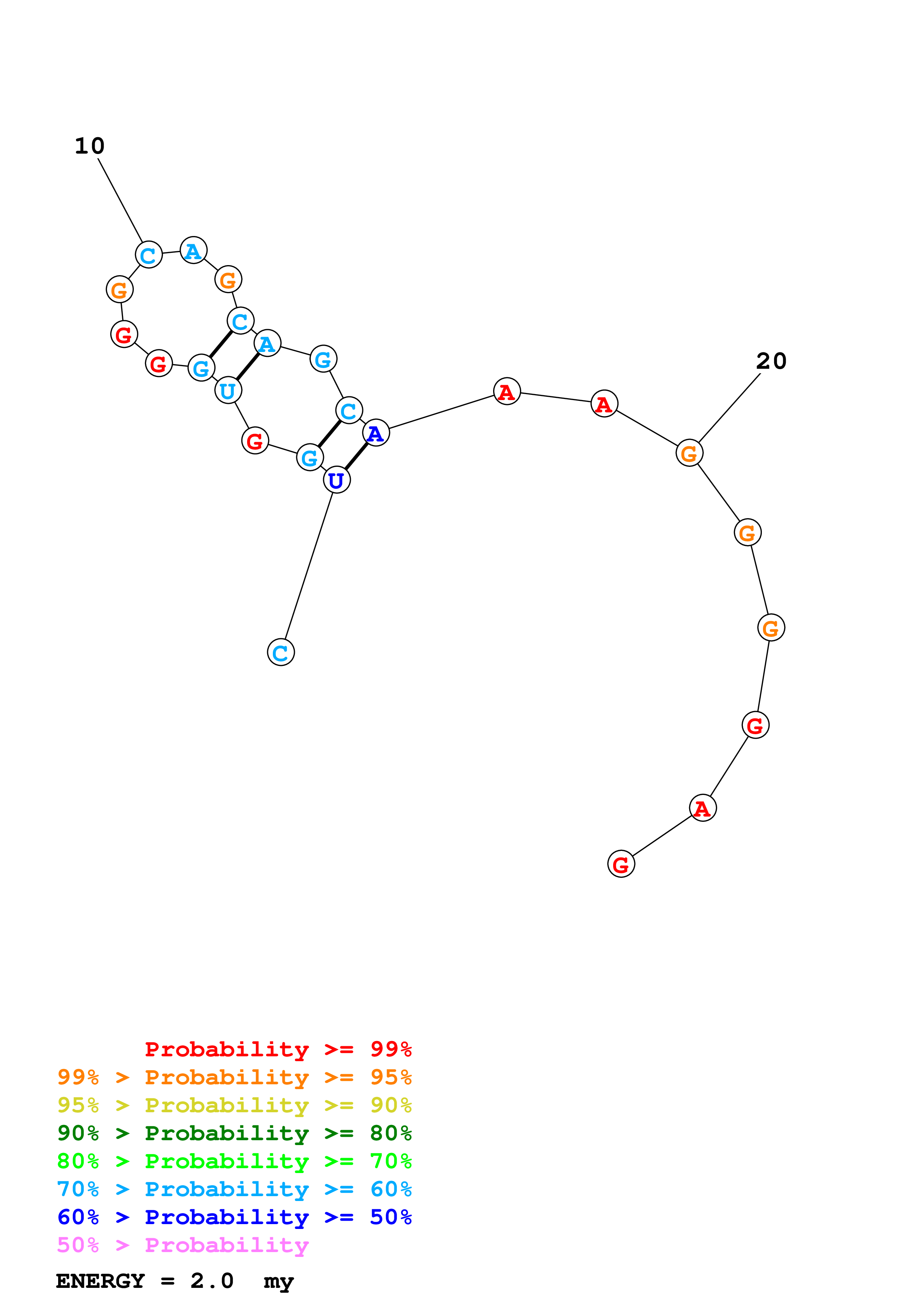 (Generate a structure or structures composed of highly probable base pairs. This is an alternative method for structure prediction that may have higher fidelity in structure prediction.)