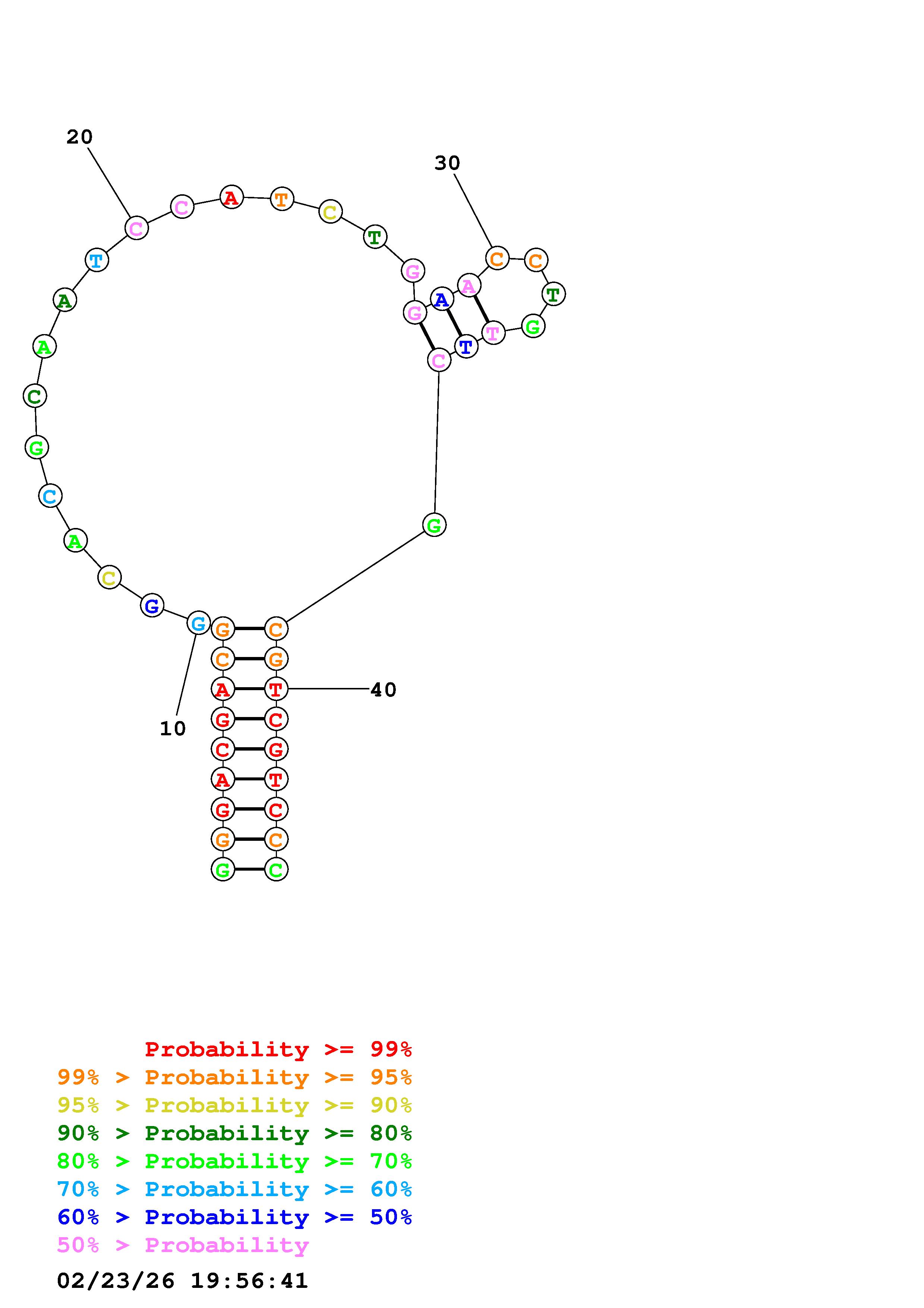 Fold Predict1.fasta Fold.ct --DNA --loop 30 --maximum 20 --percent 10 --temperature 298 --window 3