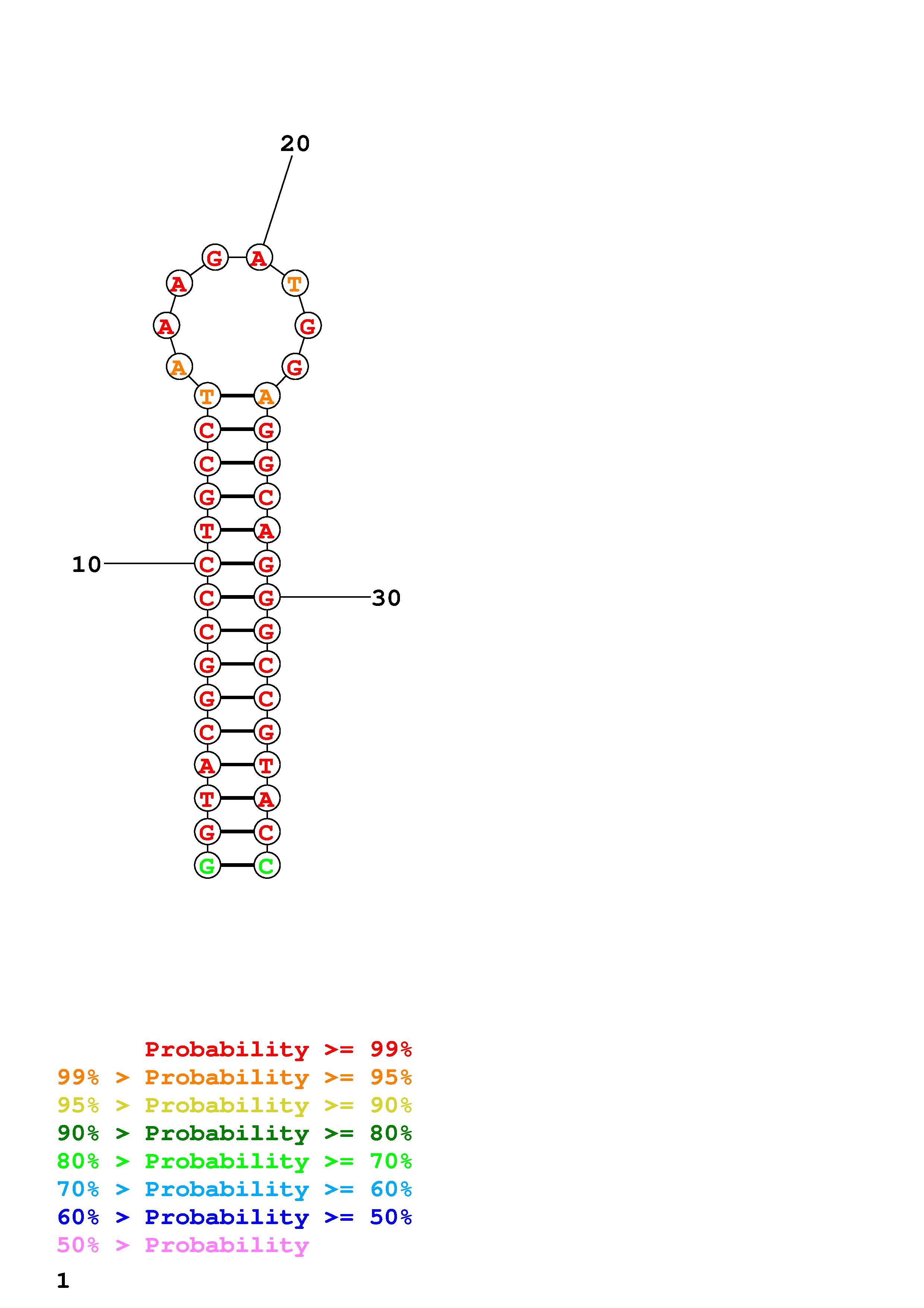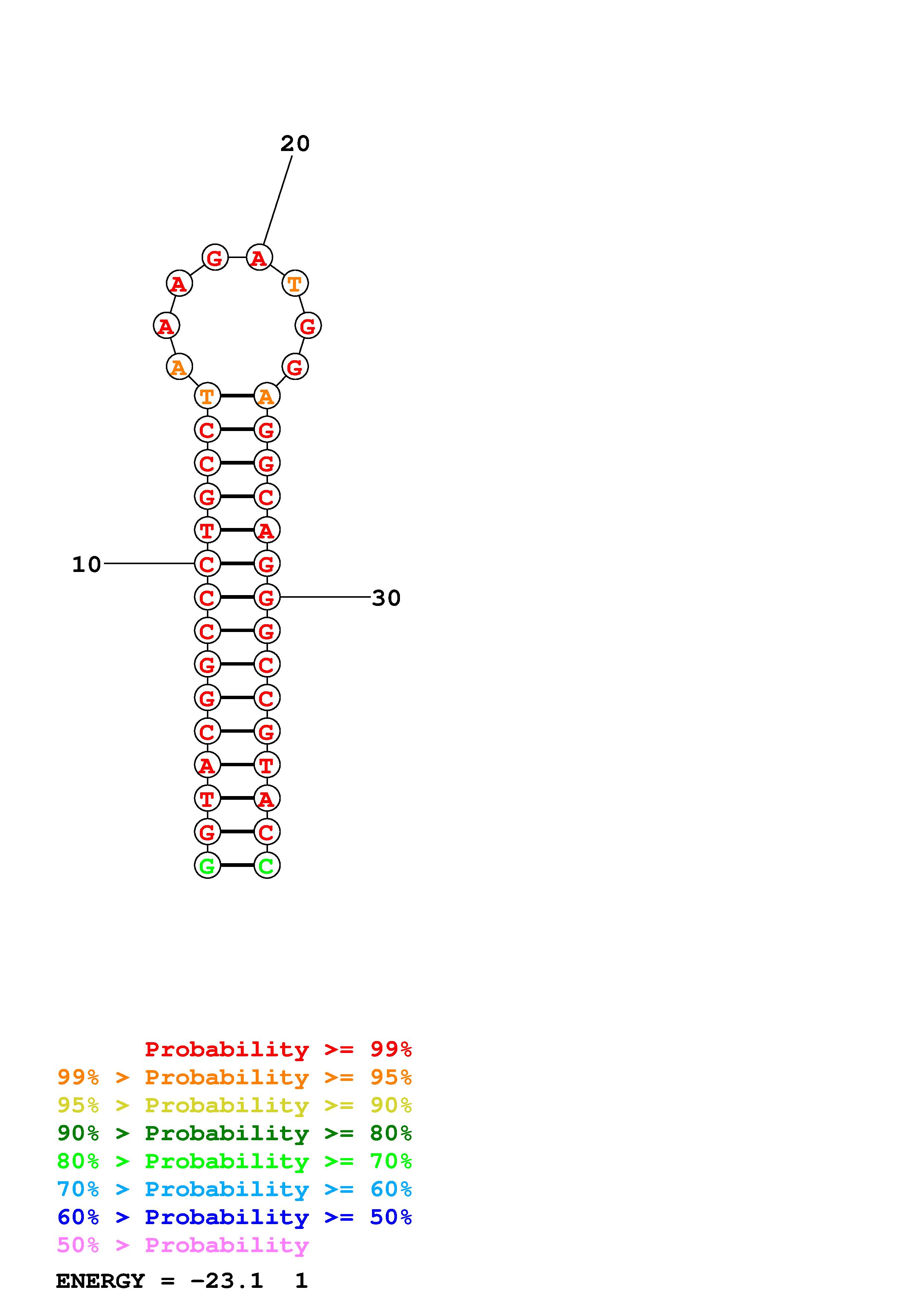 Fold Predict1.fasta Fold.ct --DNA --loop 30 --maximum 20 --percent 10 --temperature 298.15 --window 3