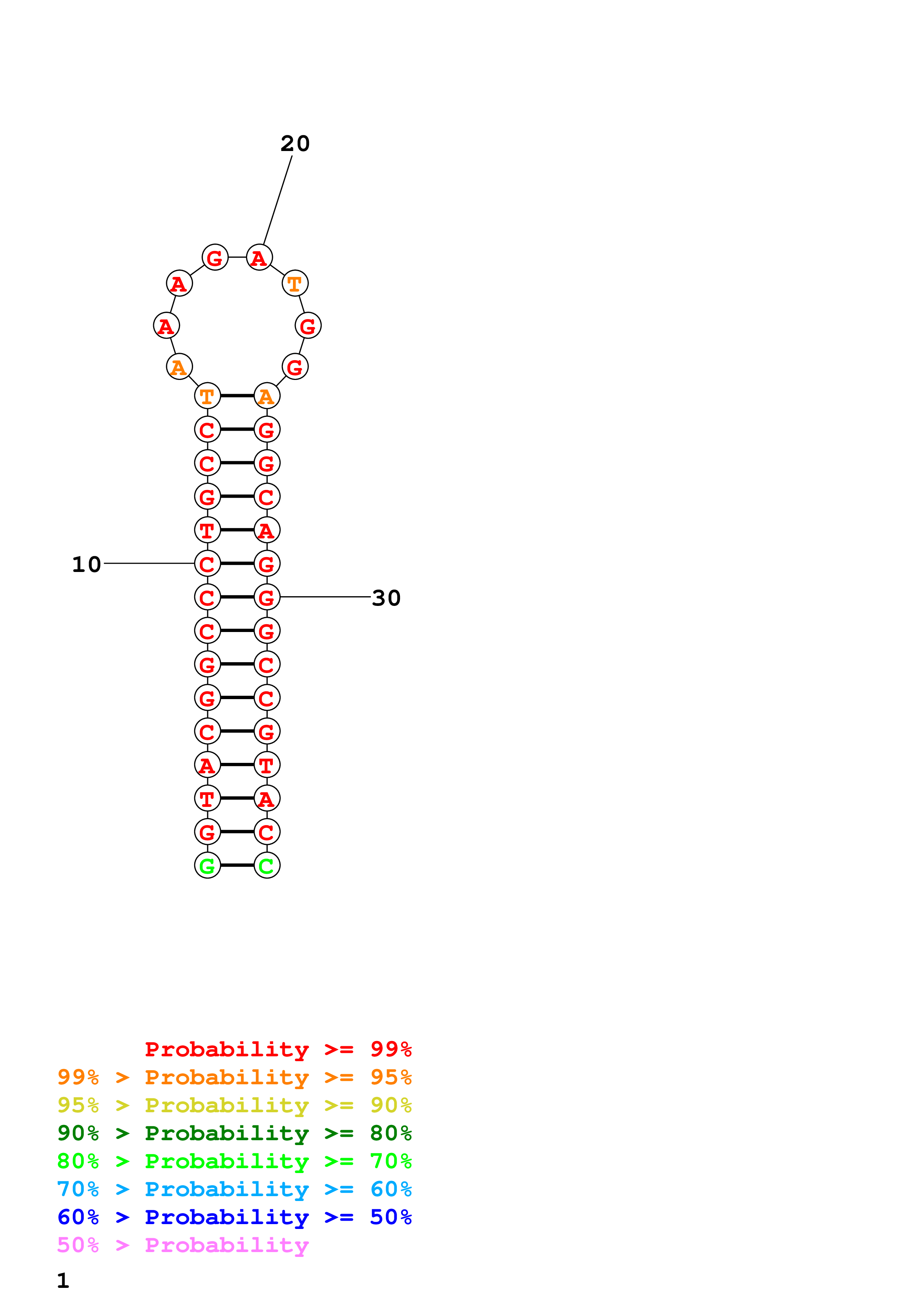 (Generate a structure or structures composed of highly probable base pairs. This is an alternative method for structure prediction that may have higher fidelity in structure prediction.)