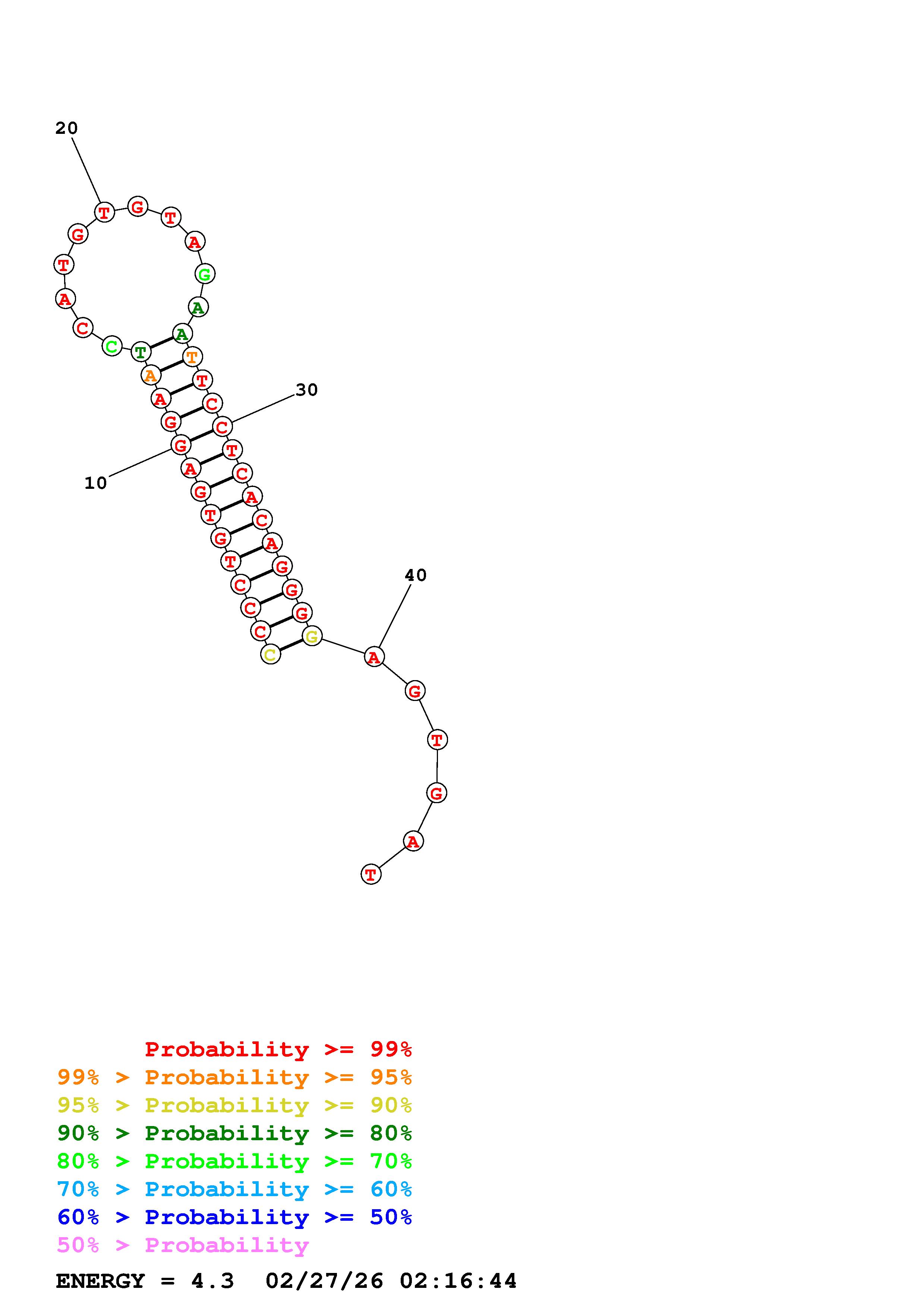 Fold Predict1.fasta Fold.ct --DNA --loop 30 --maximum 20 --percent 10 --temperature 298.15 --window 3