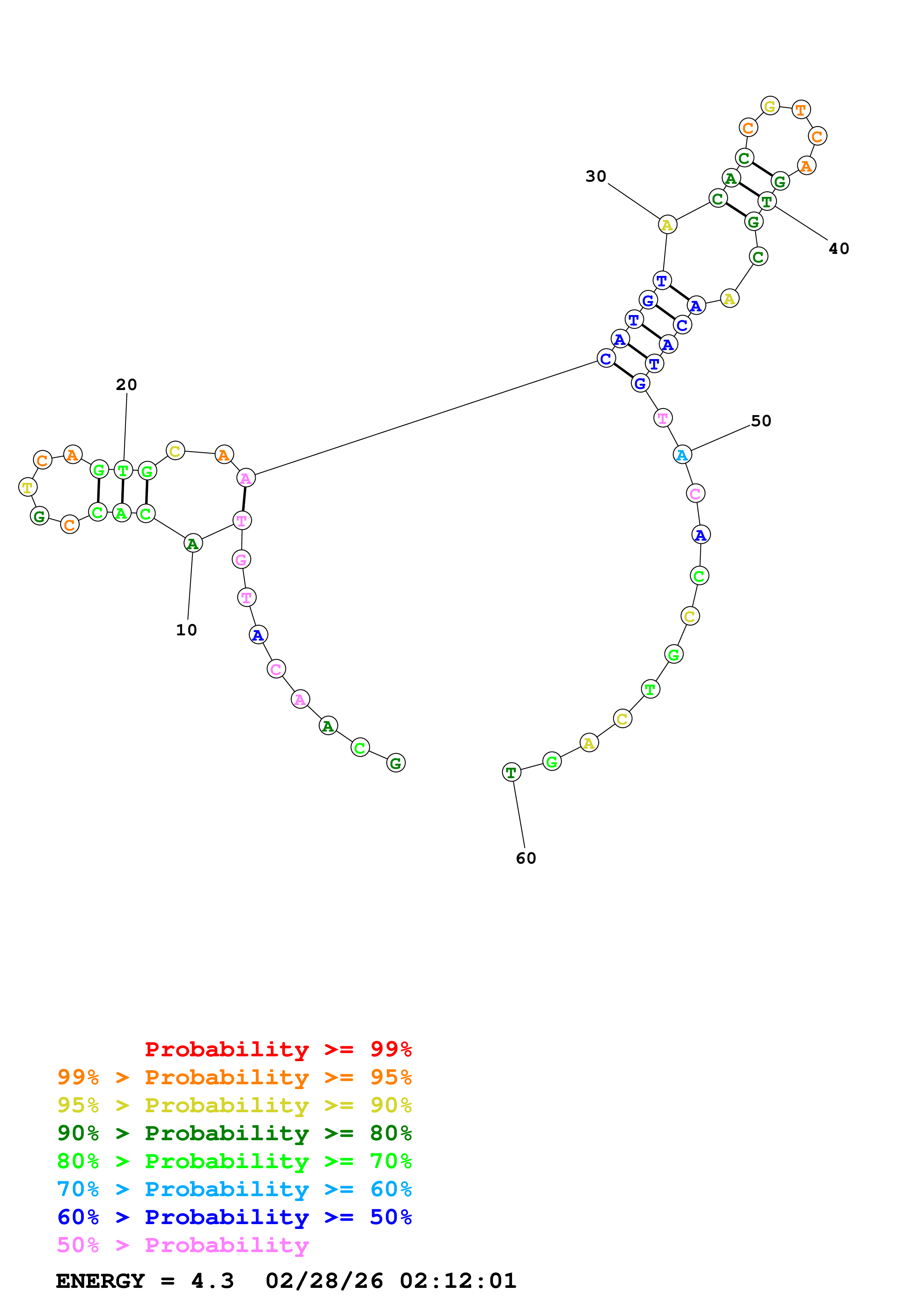 Fold Predict1.fasta Fold.ct --DNA --loop 30 --maximum 20 --percent 10 --temperature 310.15 --window 3
