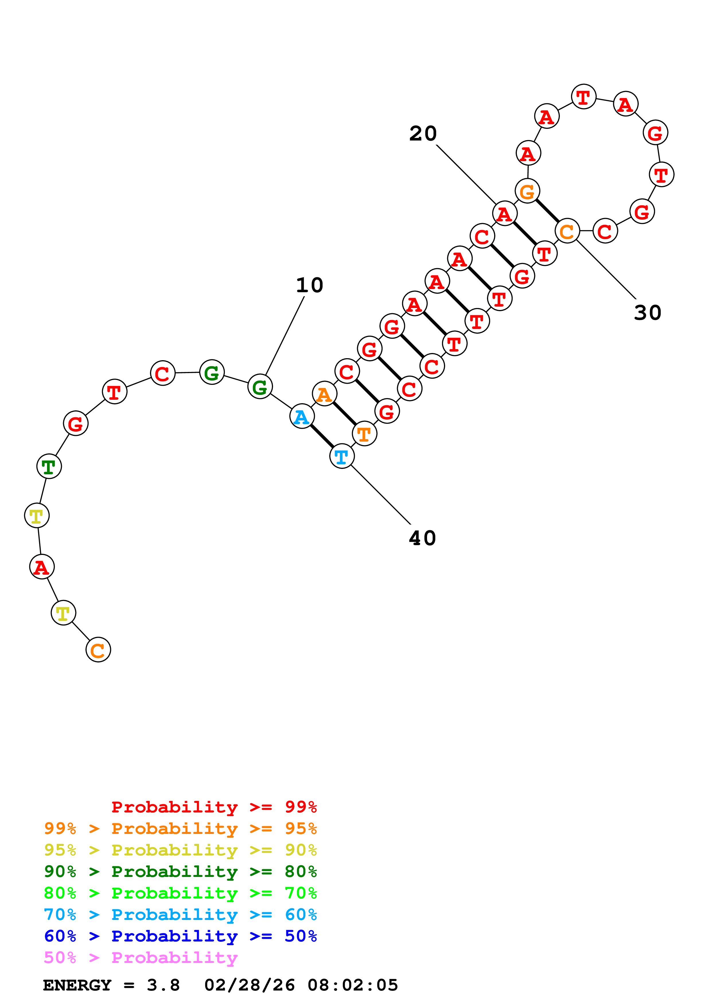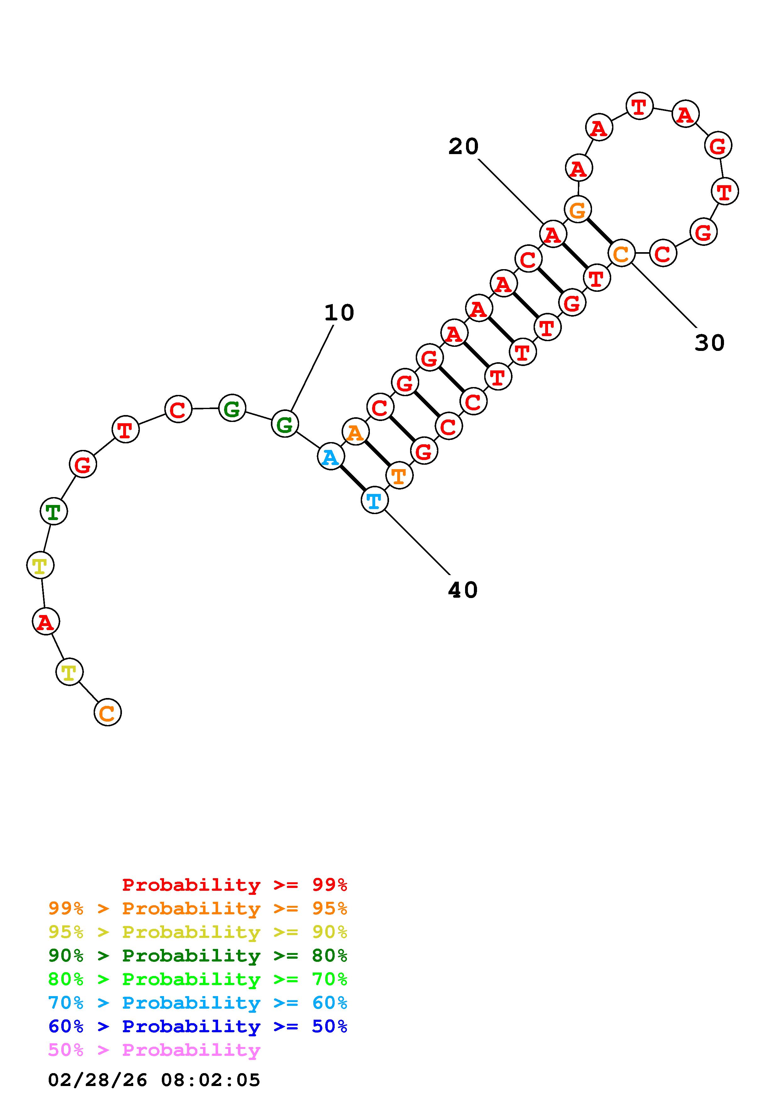 Fold Predict1.fasta Fold.ct --DNA --loop 30 --maximum 20 --percent 10 --temperature 310.15 --window 3
