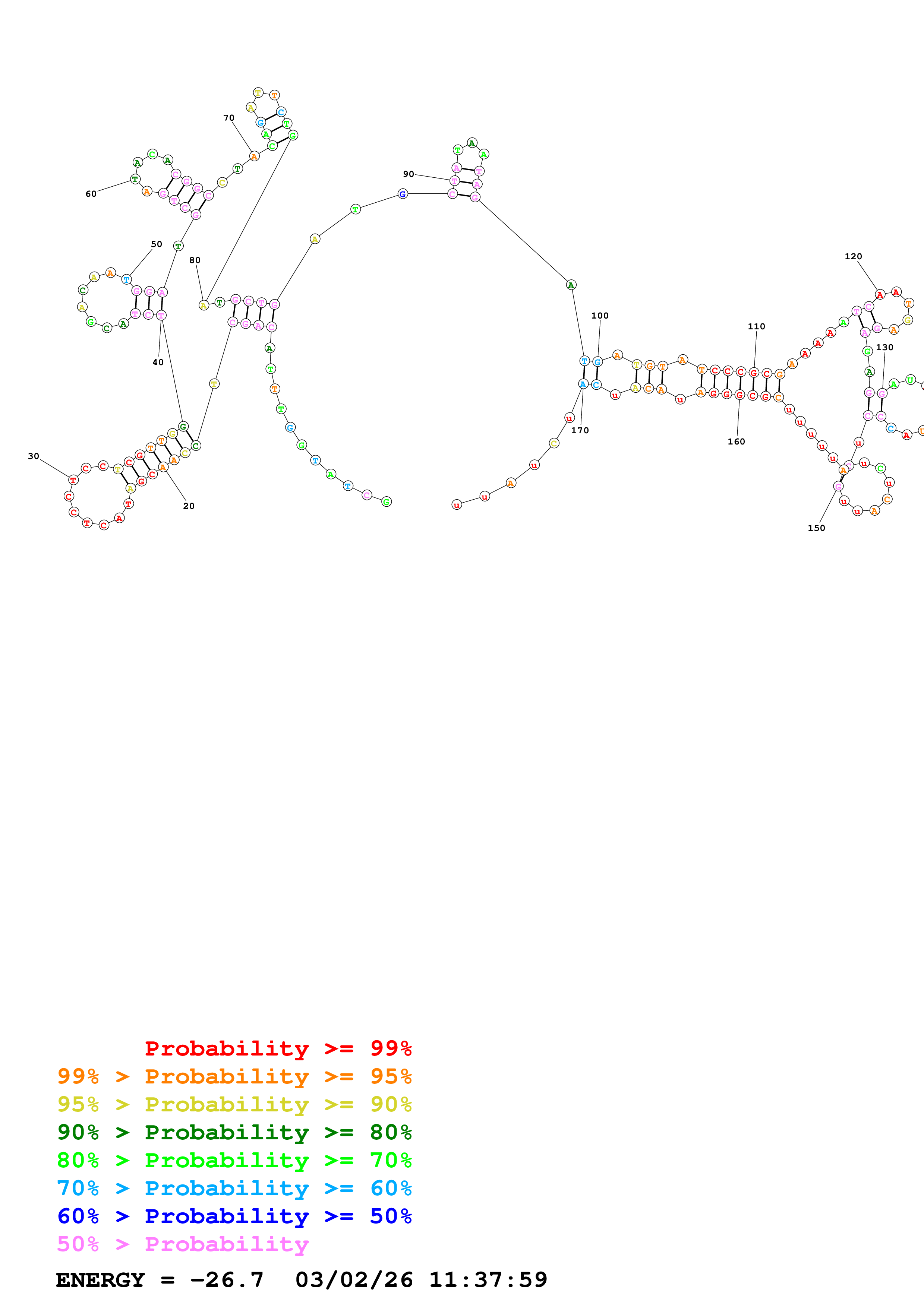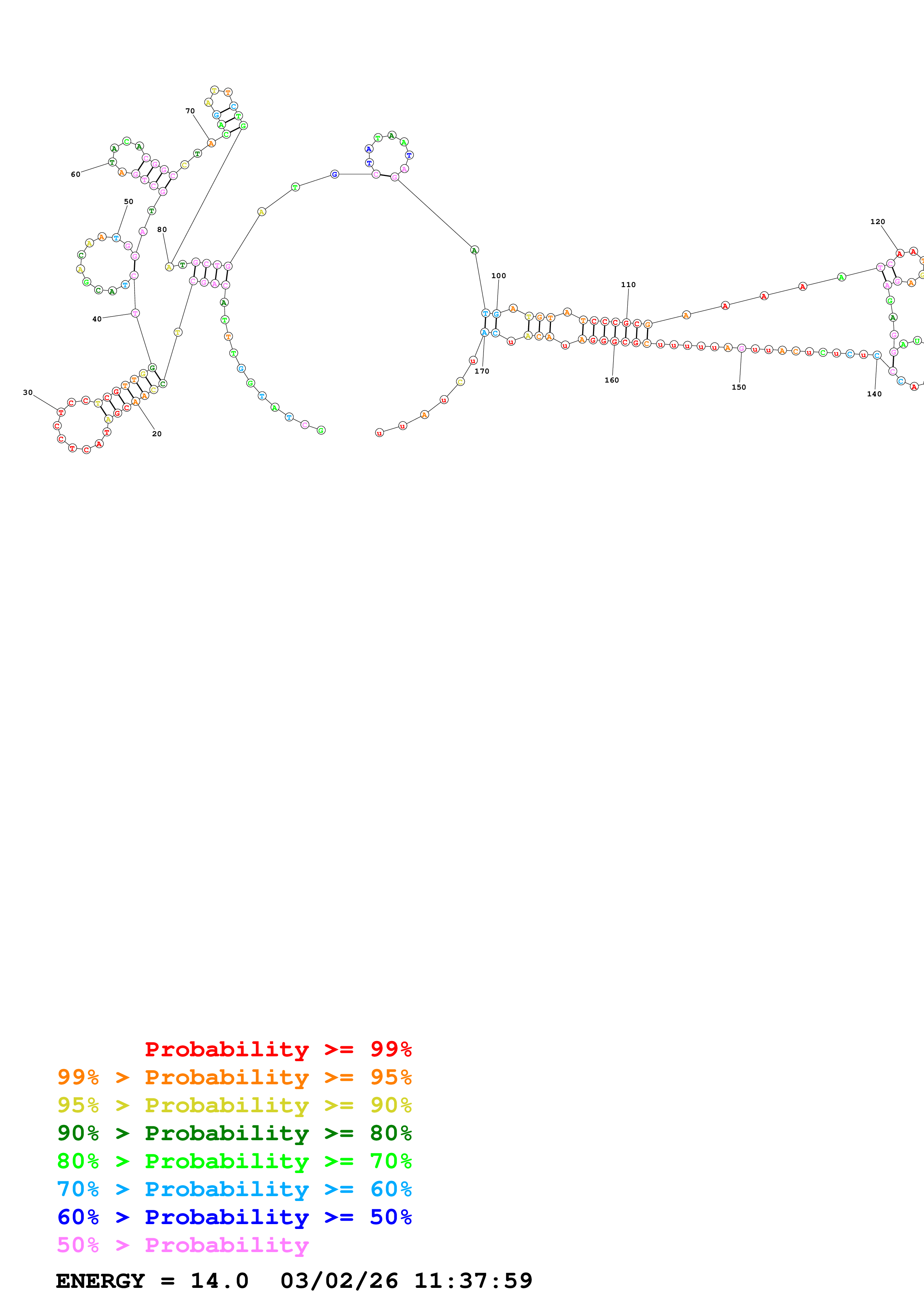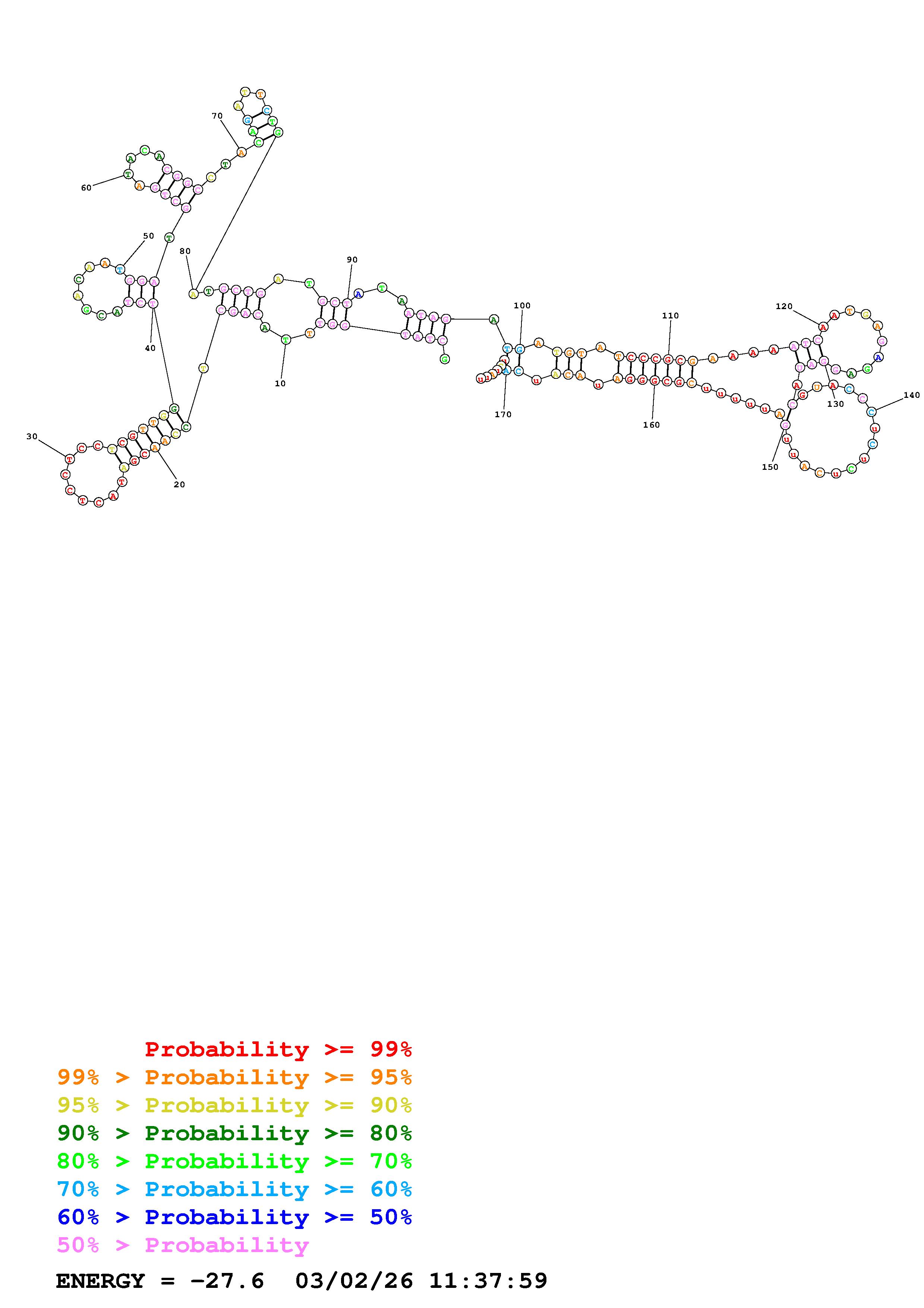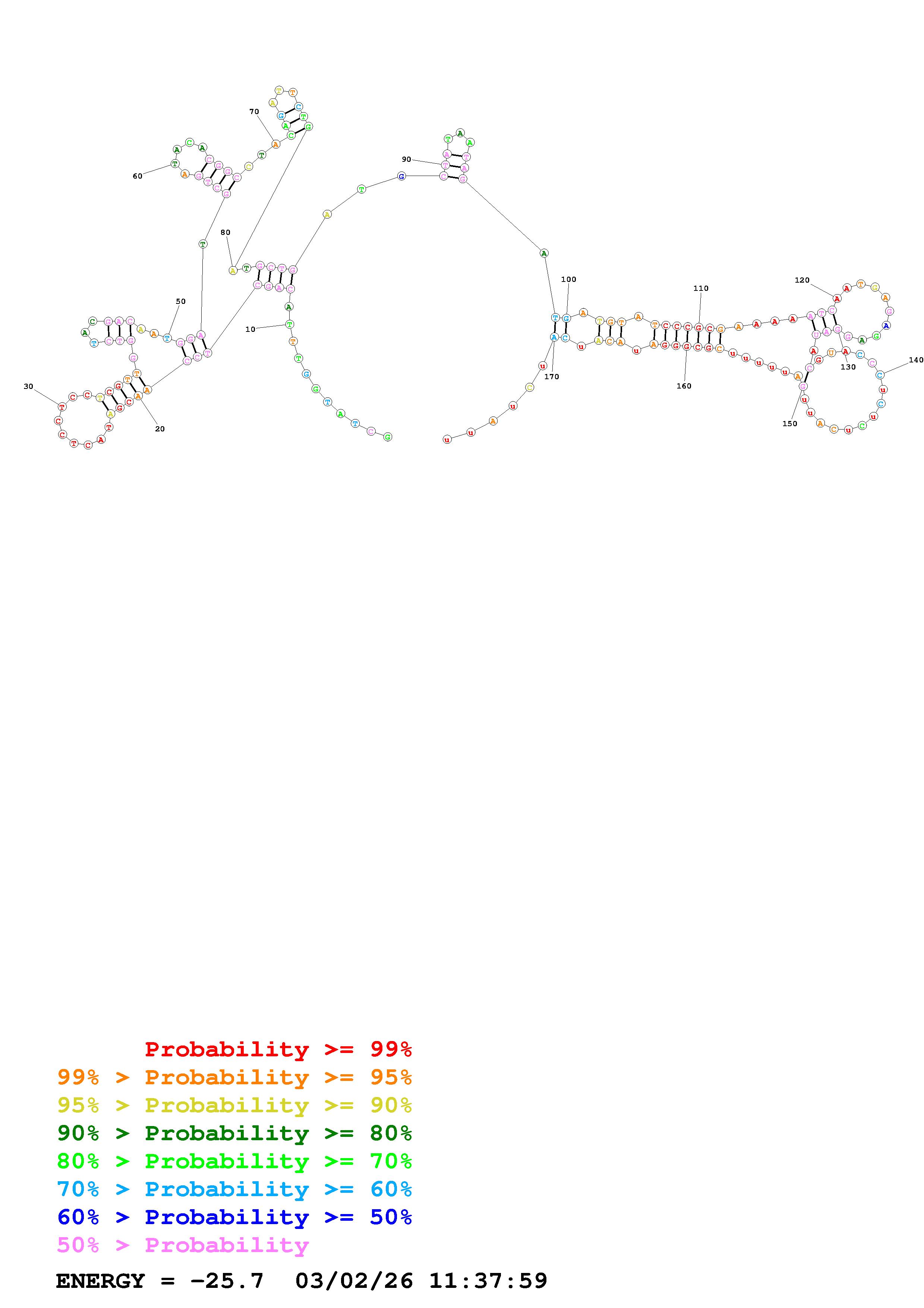 Fold Predict1.fasta Fold.ct --DNA --loop 100 --maximum 20 --percent 10 --temperature 300.15 --window 3