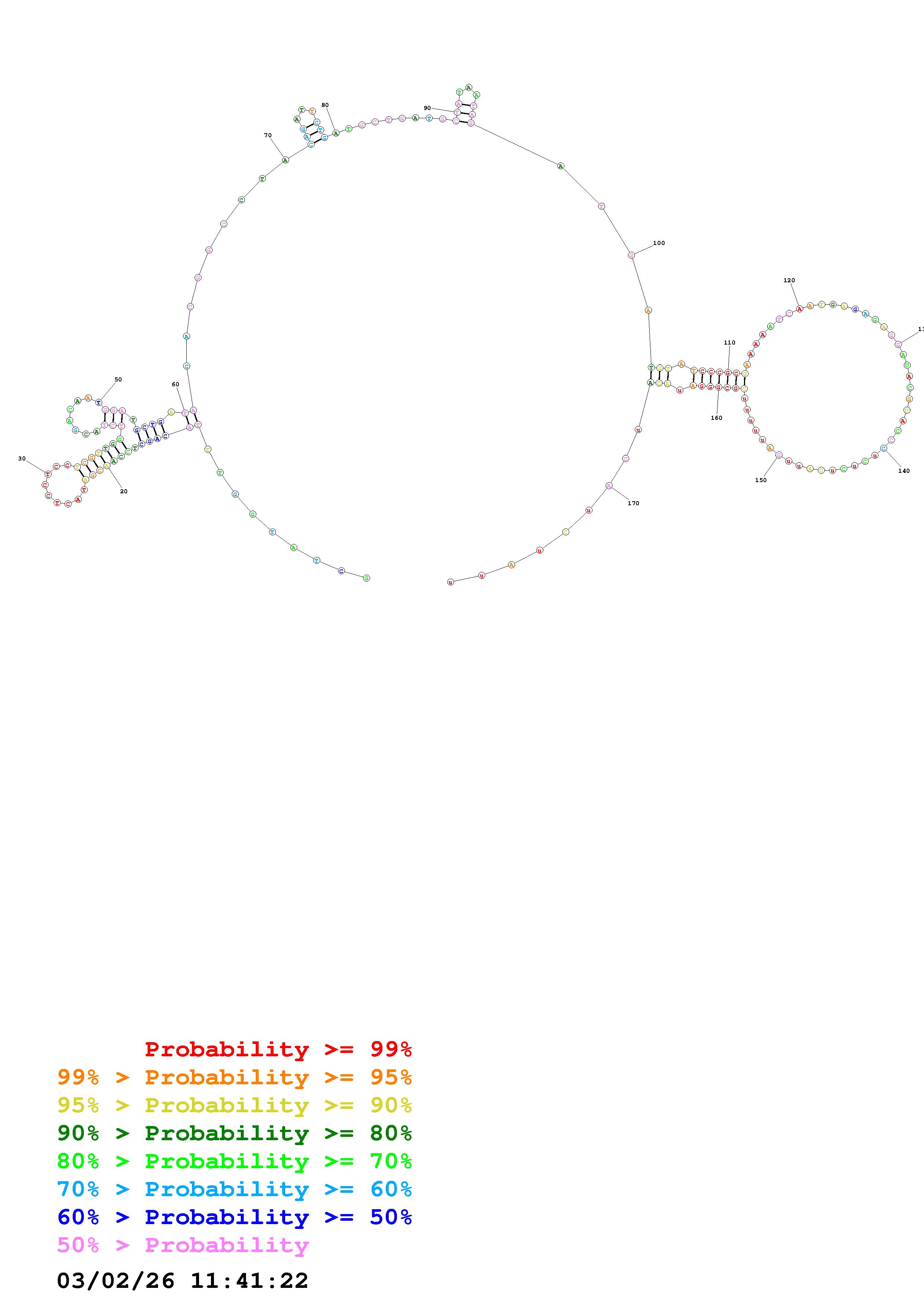 Fold Predict1.fasta Fold.ct --DNA --loop 10 --maximum 5 --percent 10 --temperature 310.15 --window 50