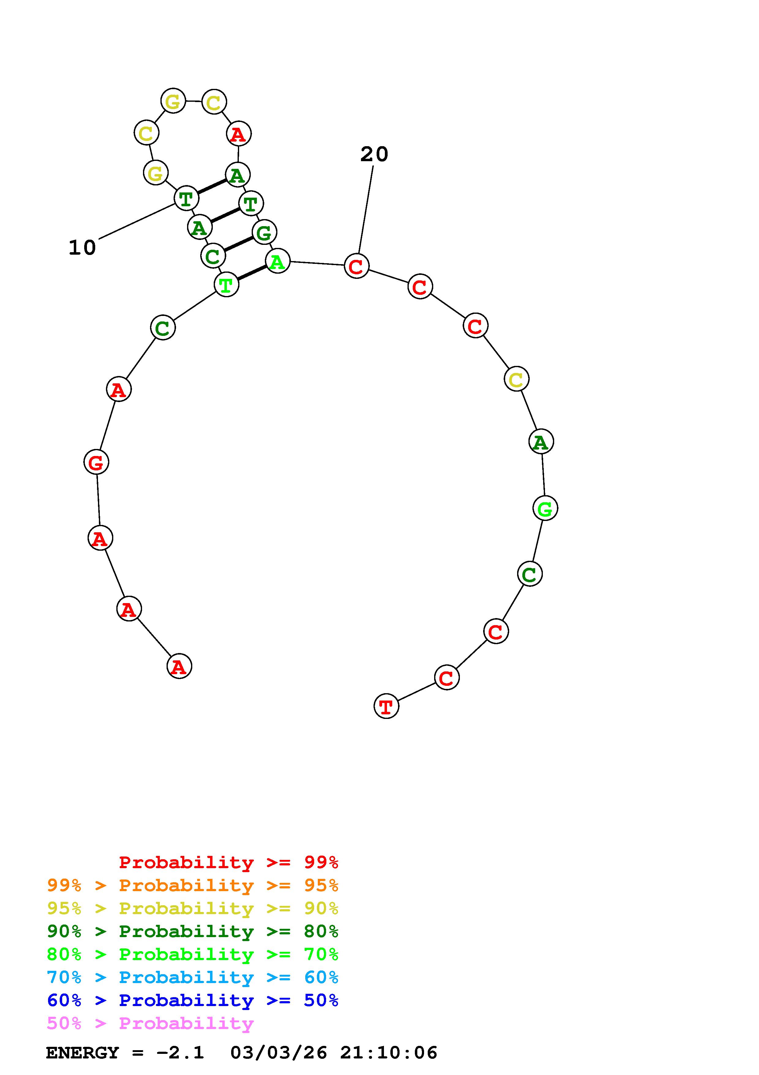 Fold Predict1.fasta Fold.ct --DNA --loop 30 --maximum 20 --percent 10 --temperature 298.15 --window 3