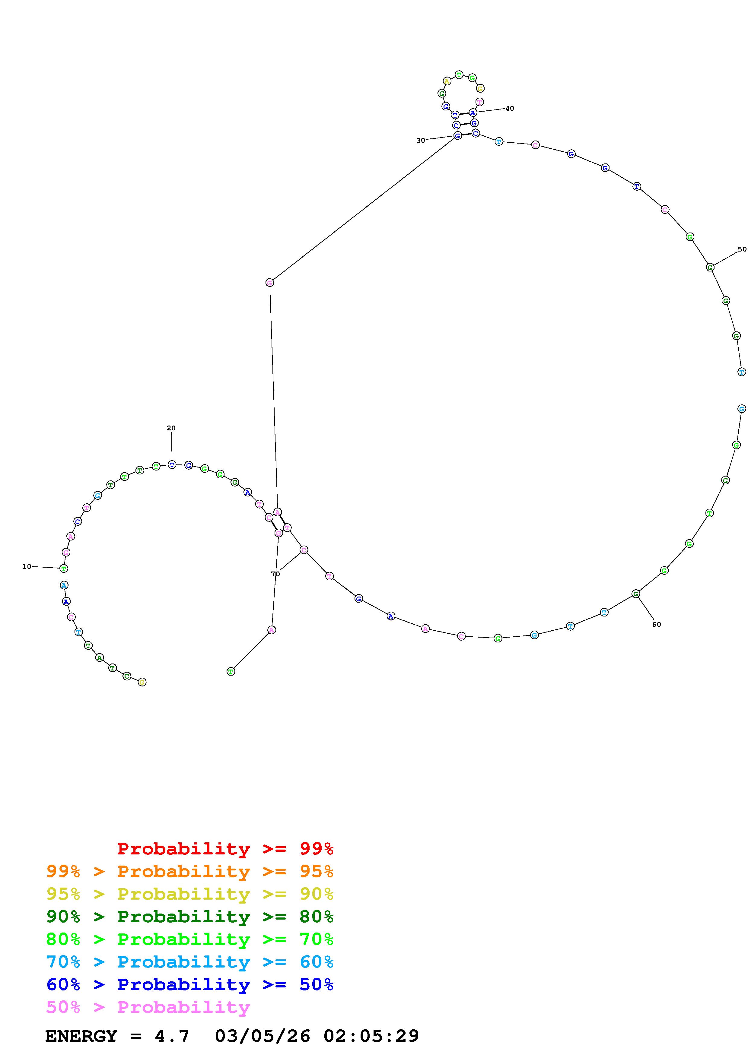 Fold Predict1.fasta Fold.ct --DNA --loop 30 --maximum 20 --percent 10 --temperature 310.15 --window 3
