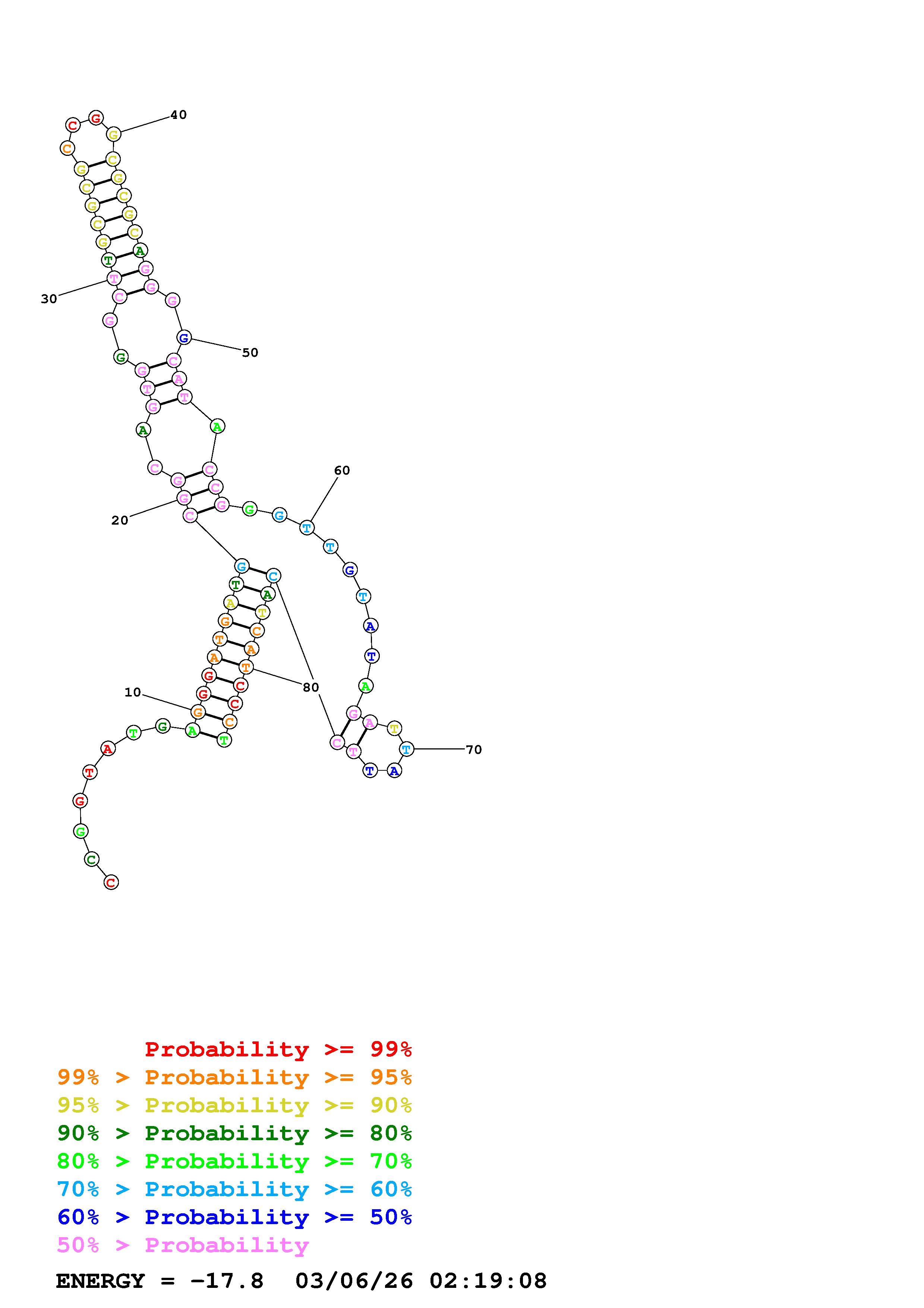 Fold Predict1.fasta Fold.ct --DNA --loop 30 --maximum 20 --percent 10 --temperature 310.15 --window 3