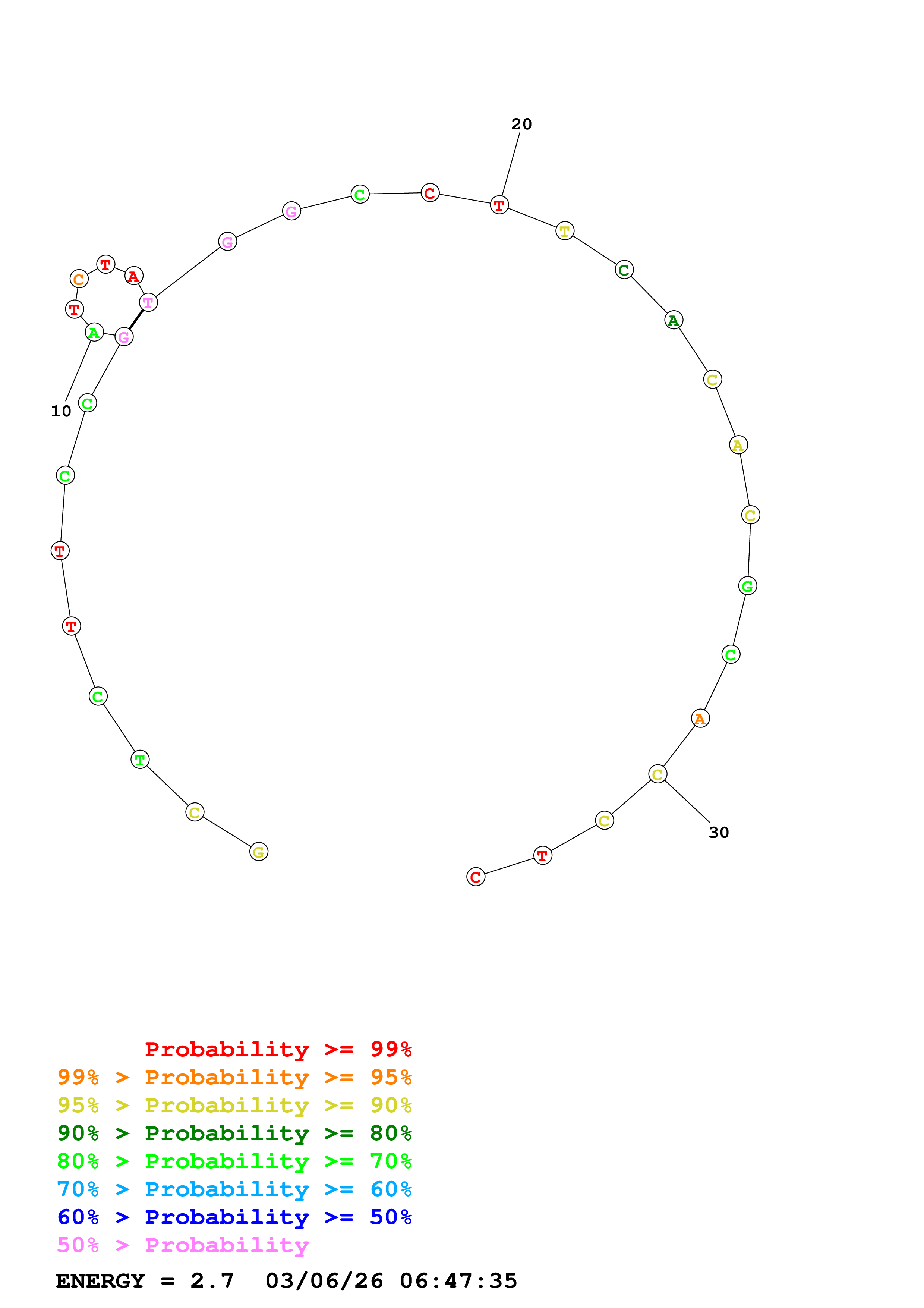 (Generate a structure or structures composed of highly probable base pairs. This is an alternative method for structure prediction that may have higher fidelity in structure prediction.)