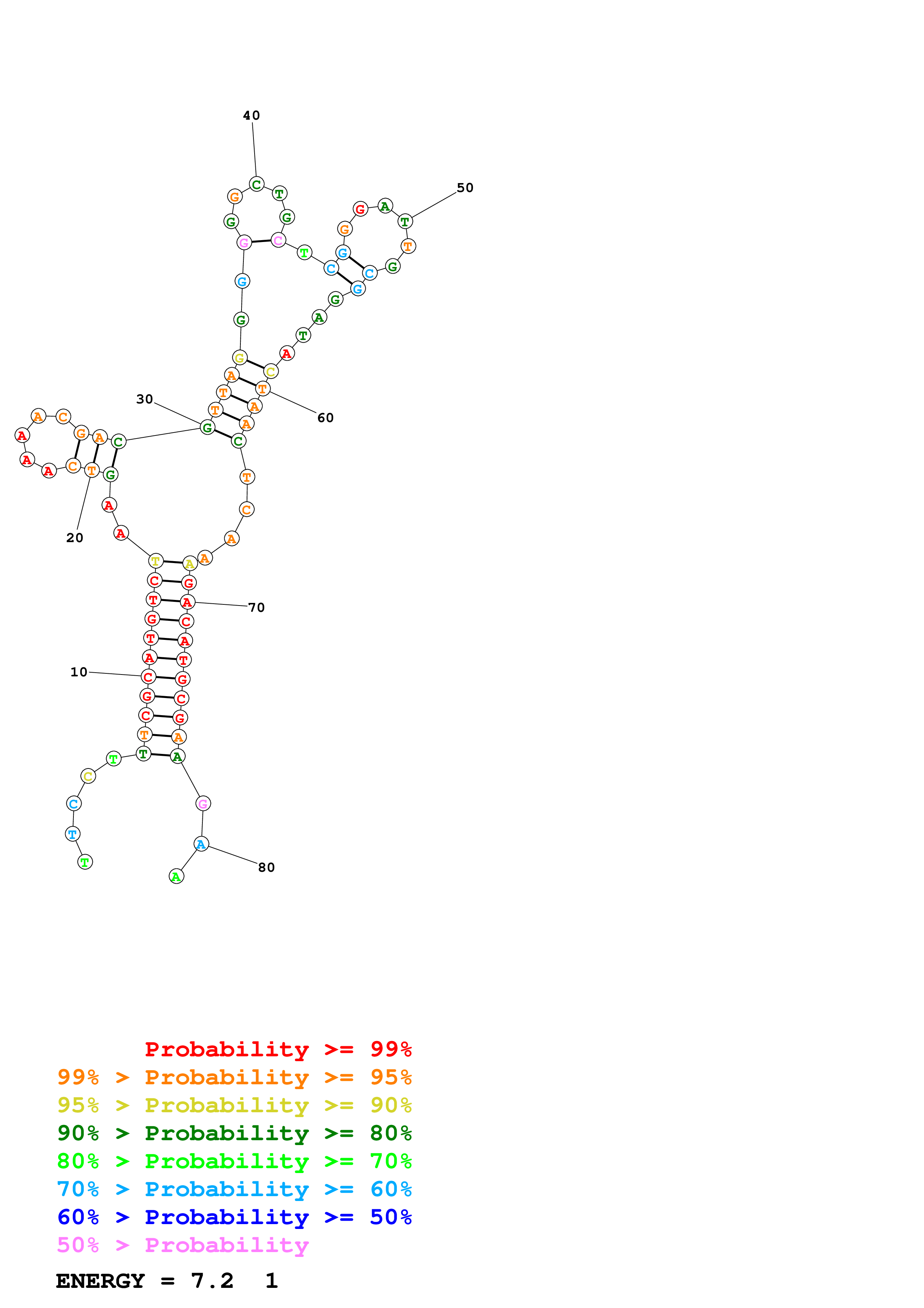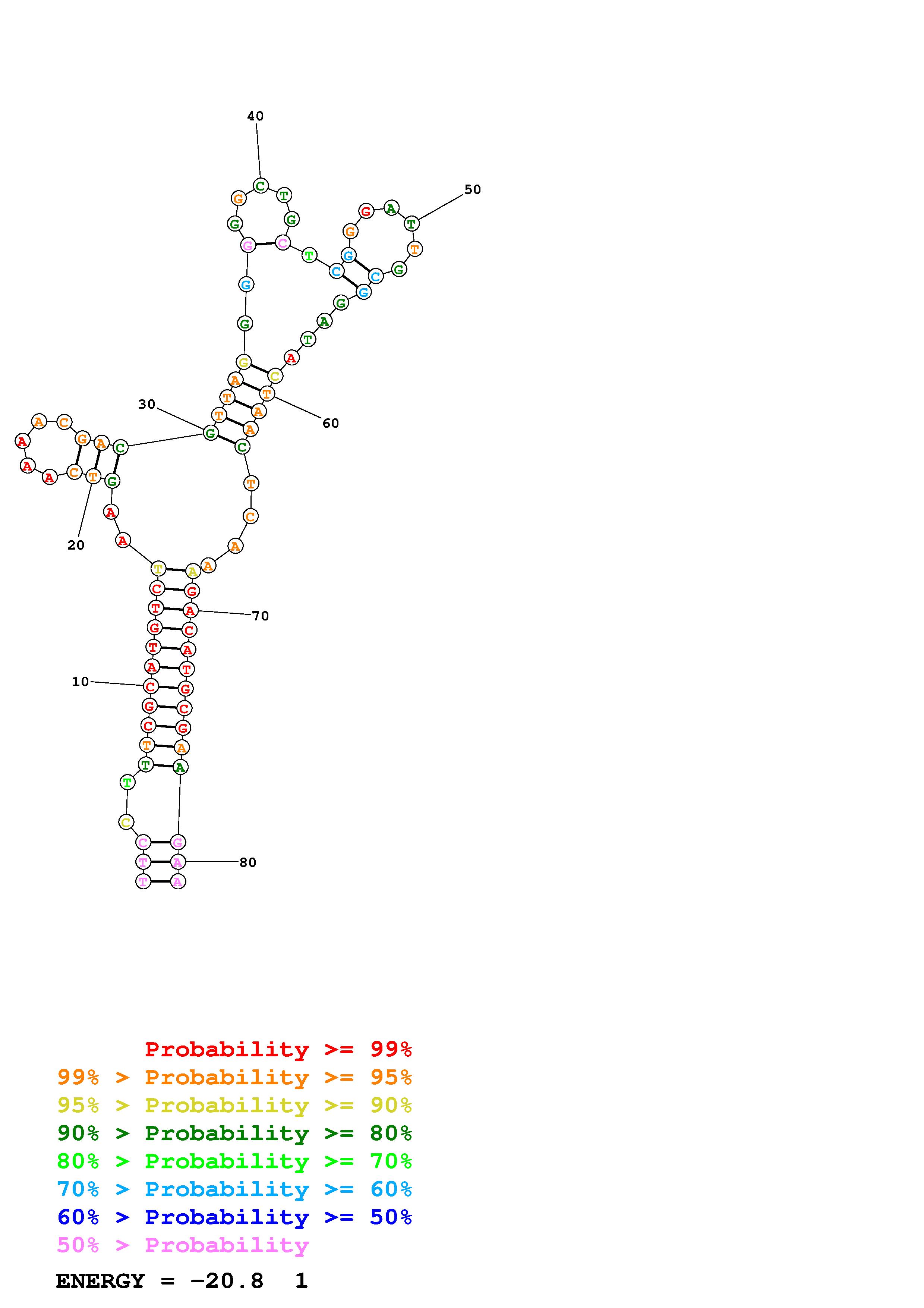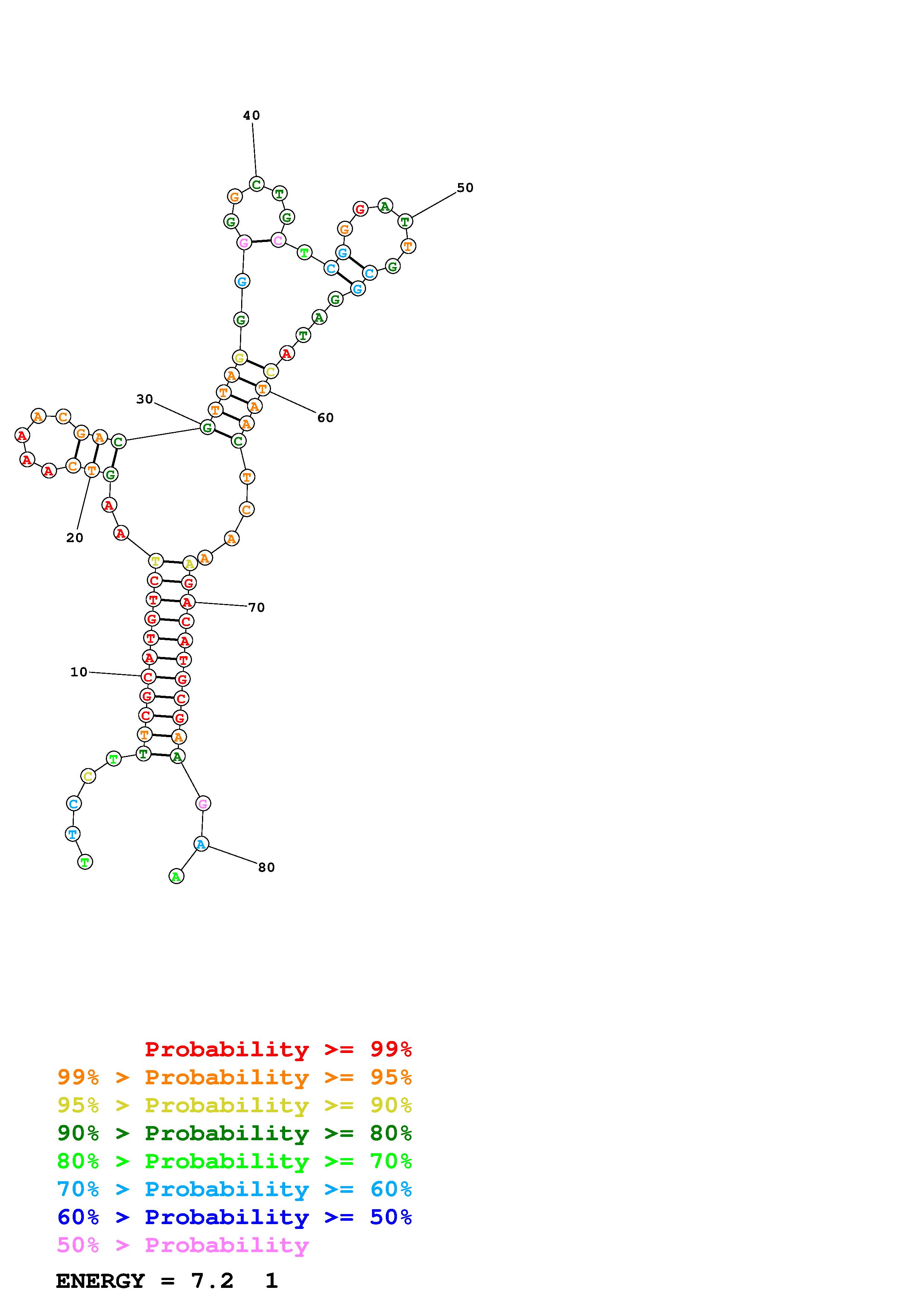 Fold Predict1.fasta Fold.ct --DNA --loop 30 --maximum 20 --percent 10 --temperature 297 --window 3