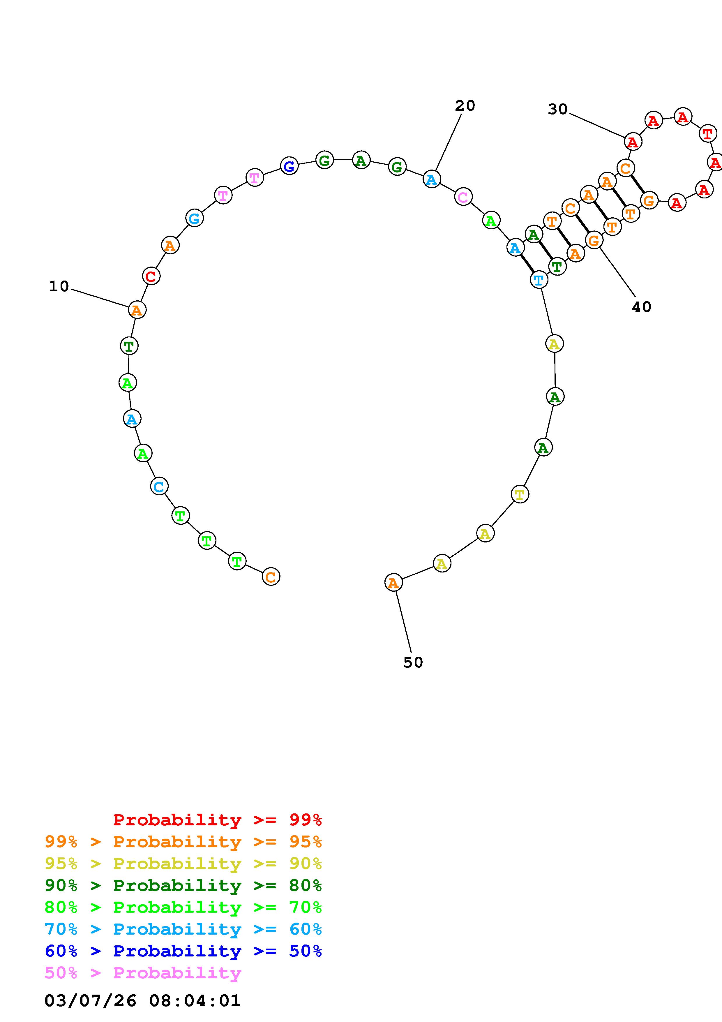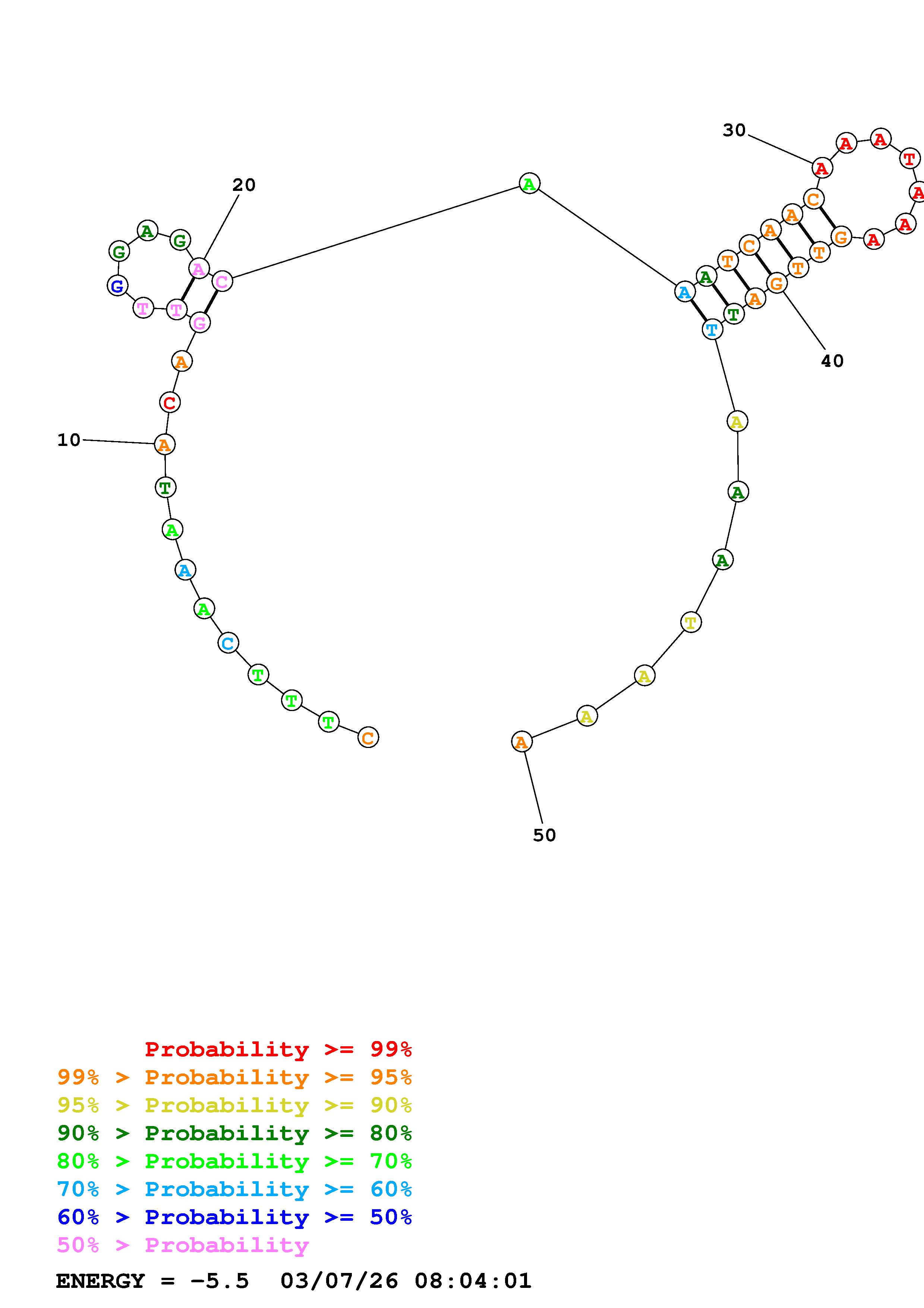 Fold Predict1.fasta Fold.ct --DNA --loop 30 --maximum 20 --percent 10 --temperature 310.15 --window 3