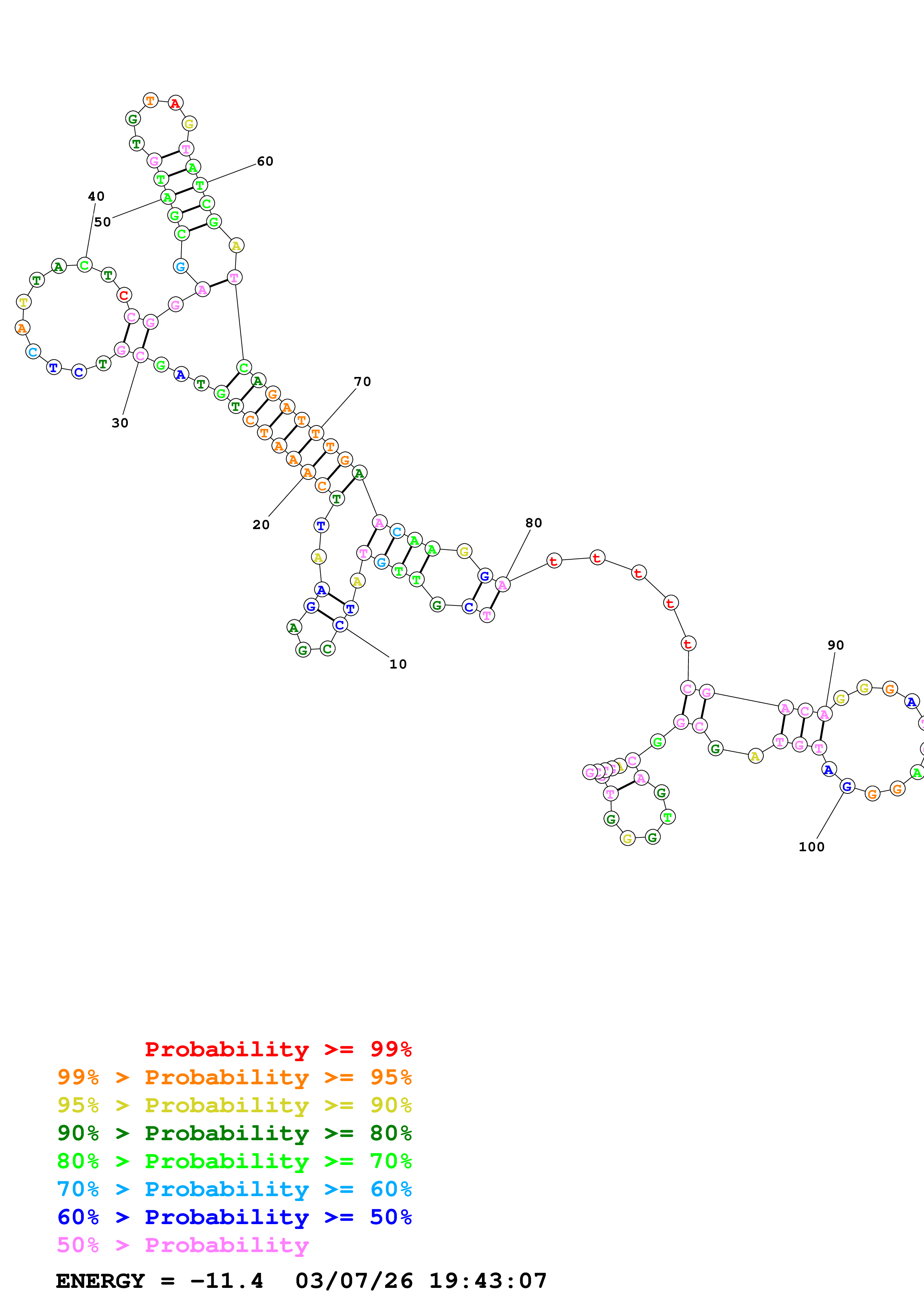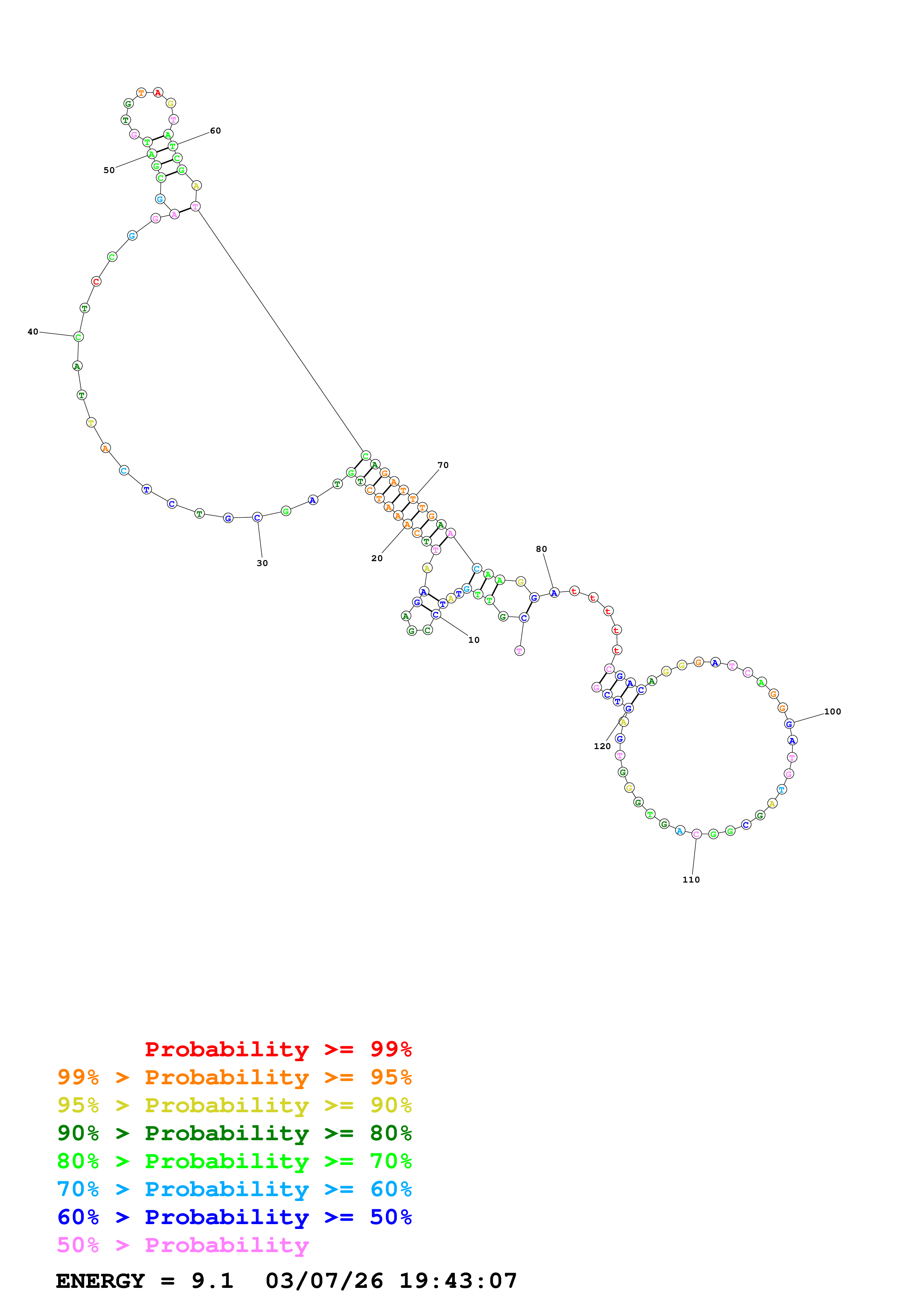 Fold Predict1.fasta Fold.ct --DNA --loop 30 --maximum 20 --percent 10 --temperature 310.15 --window 3
