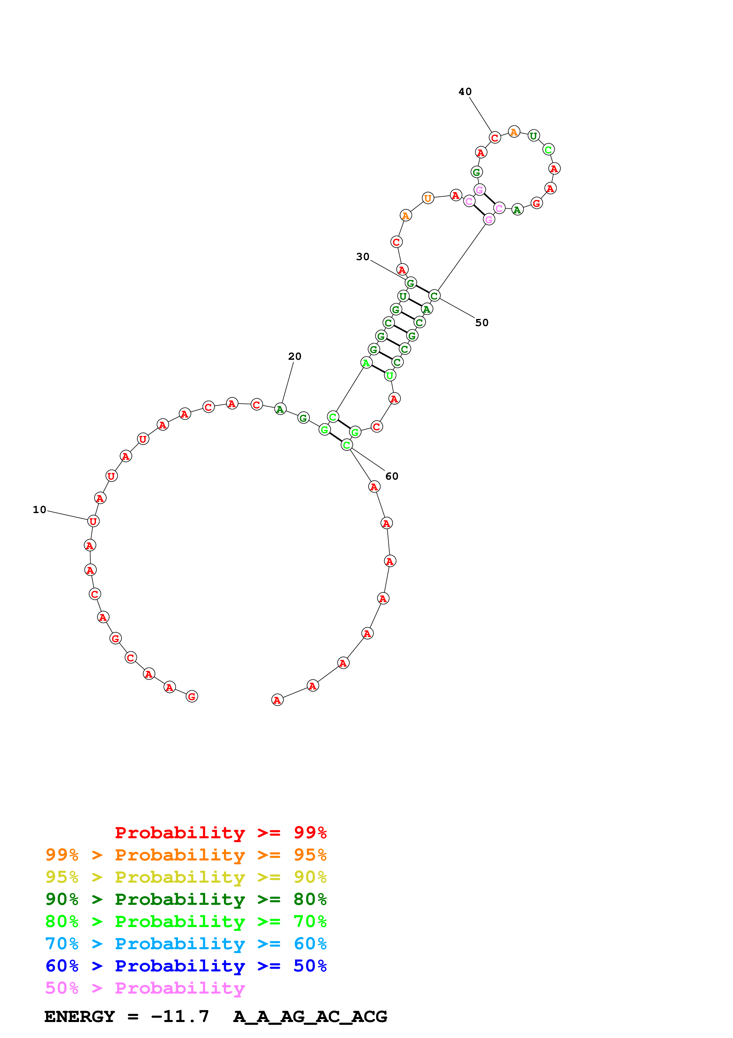 (Generate a structure or structures composed of highly probable base pairs. This is an alternative method for structure prediction that may have higher fidelity in structure prediction.)