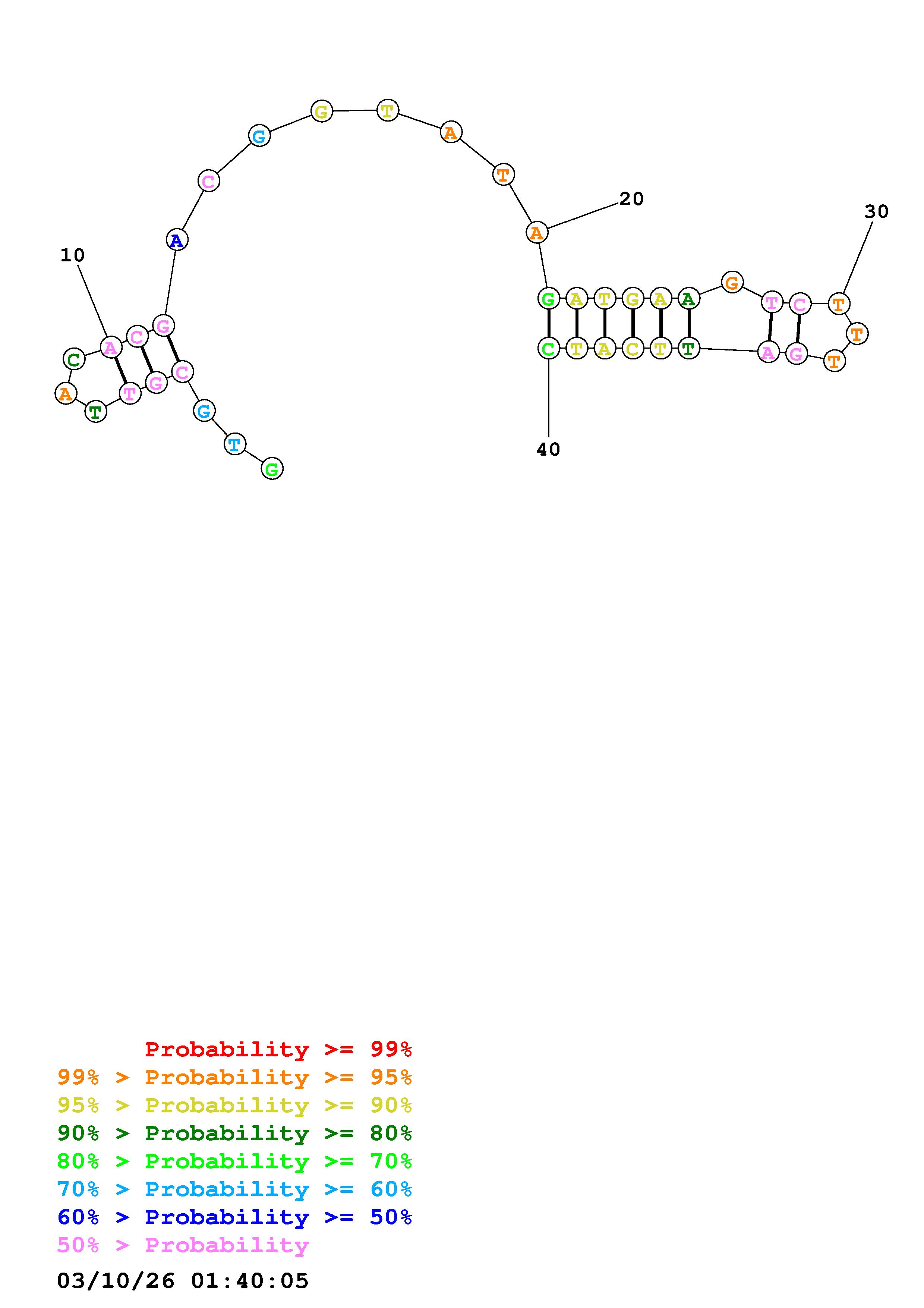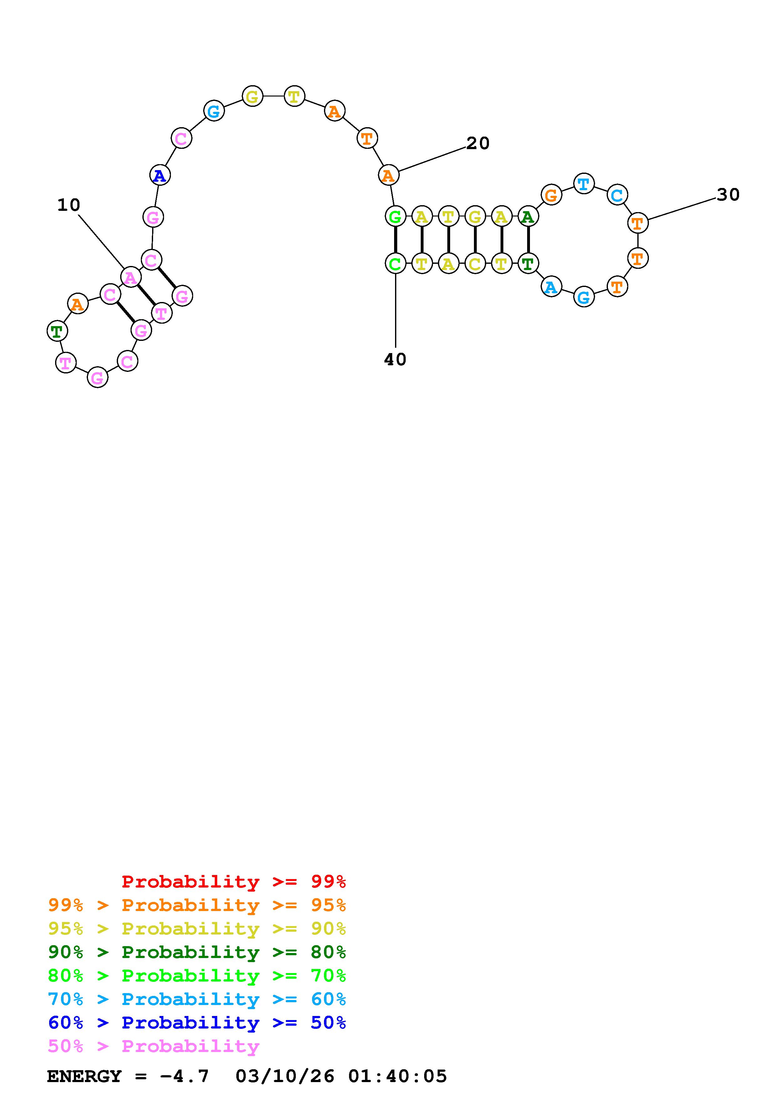 Fold Predict1.fasta Fold.ct --DNA --loop 30 --maximum 20 --percent 10 --temperature 310.15 --window 3