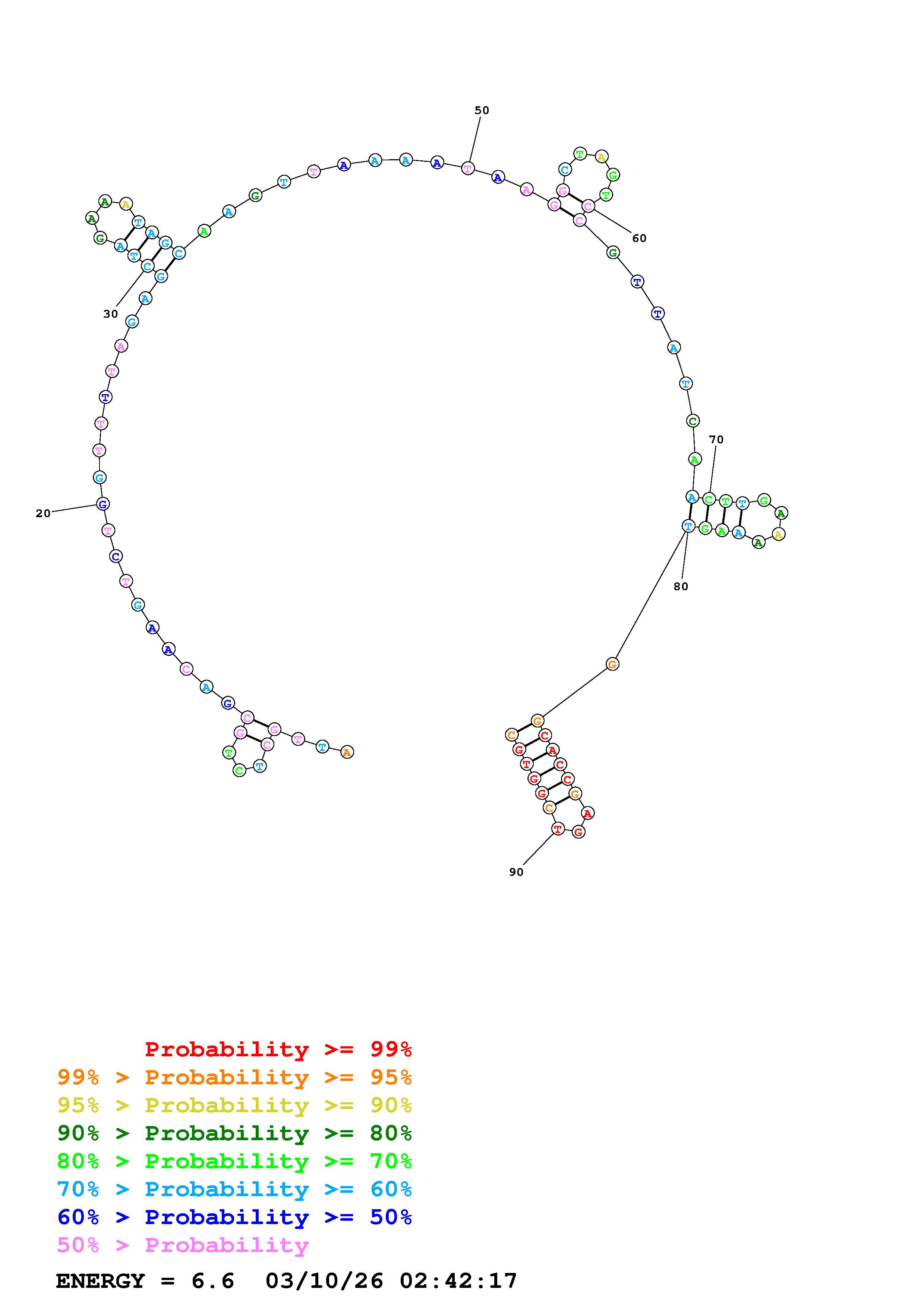 Fold Predict1.fasta Fold.ct --DNA --loop 30 --maximum 20 --percent 10 --temperature 310.15 --window 3