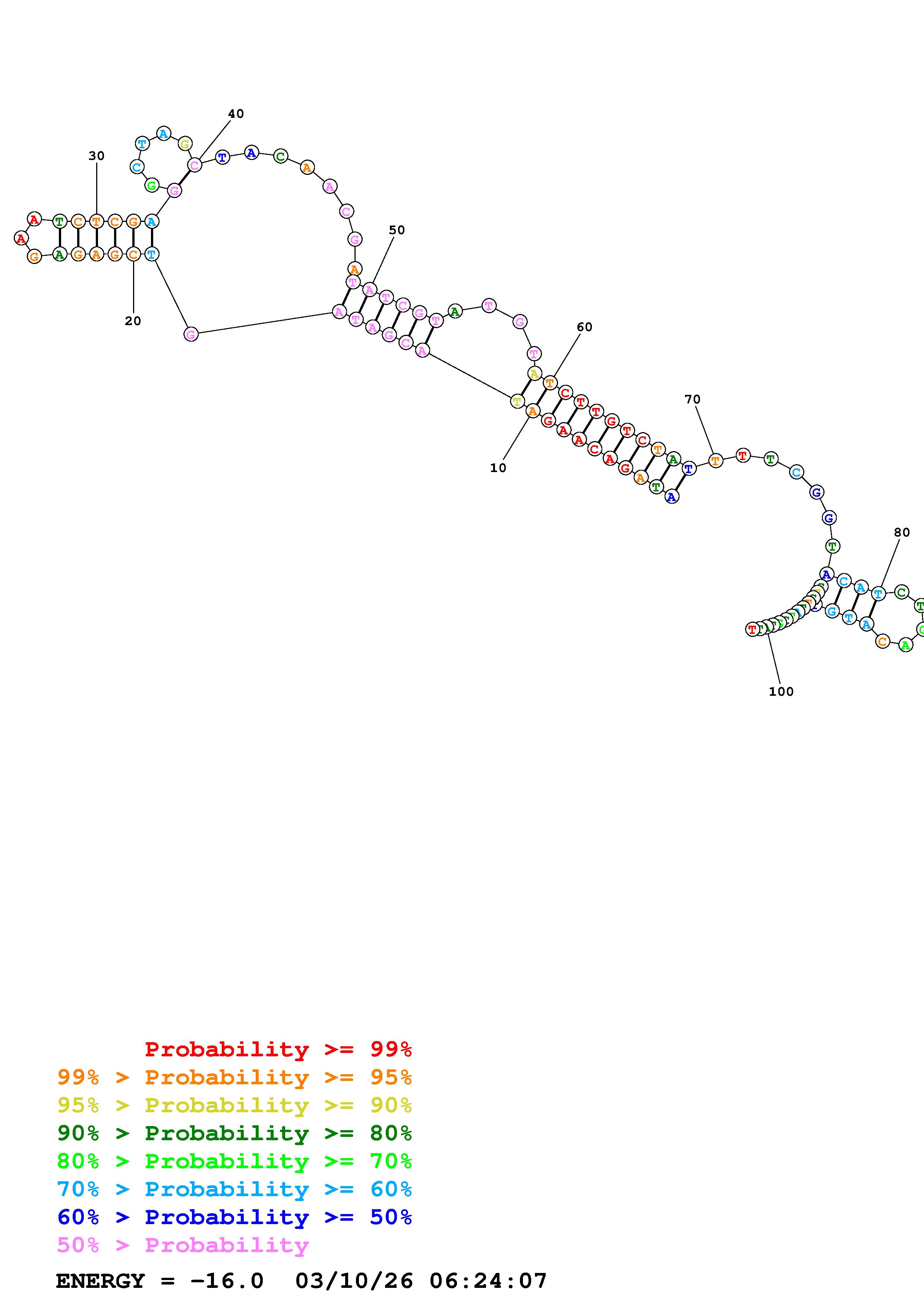 Fold Predict1.fasta Fold.ct --DNA --loop 30 --maximum 20 --percent 10 --temperature 310.15 --window 3