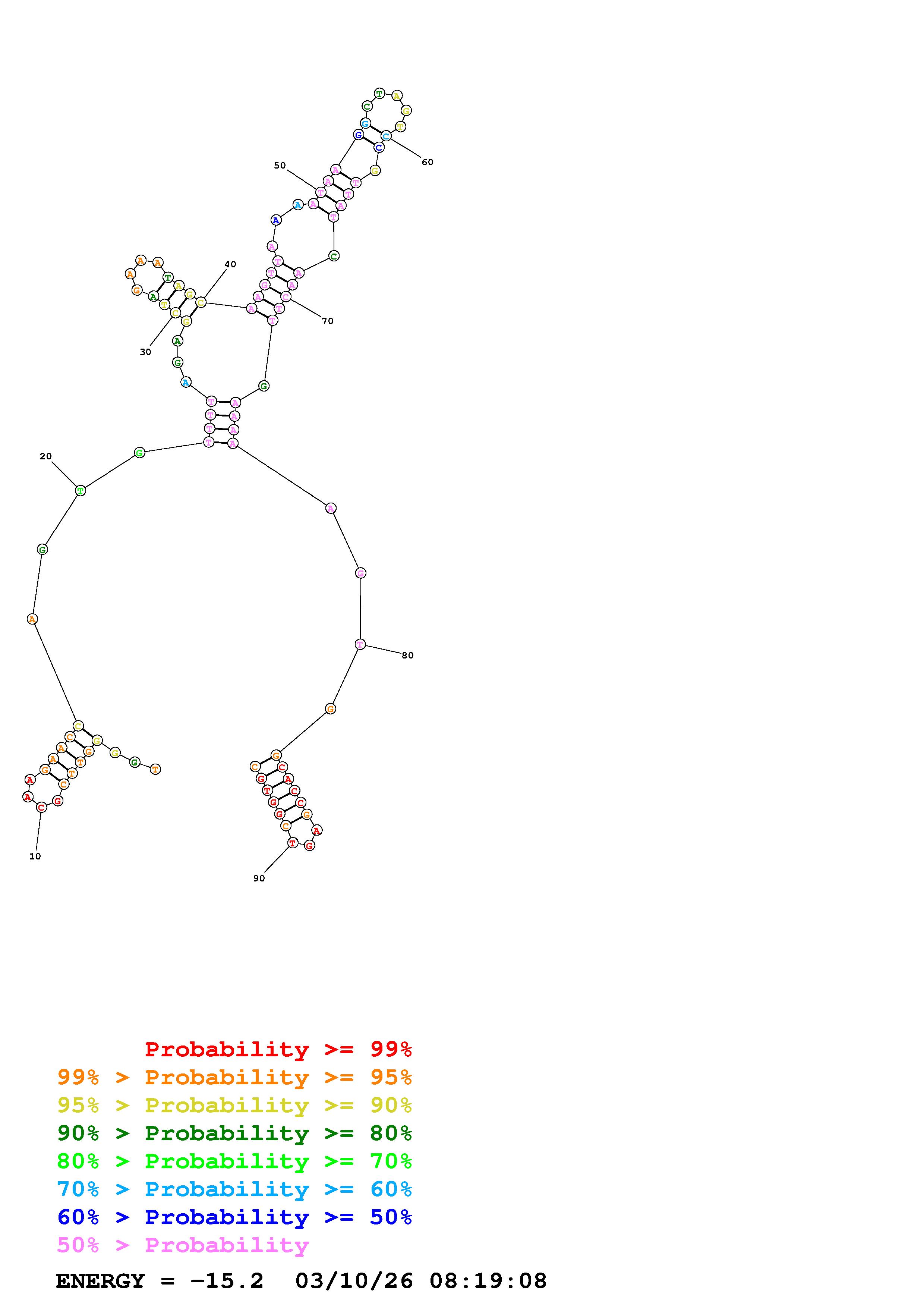 Fold Predict1.fasta Fold.ct --DNA --loop 30 --maximum 20 --percent 10 --temperature 310.15 --window 3