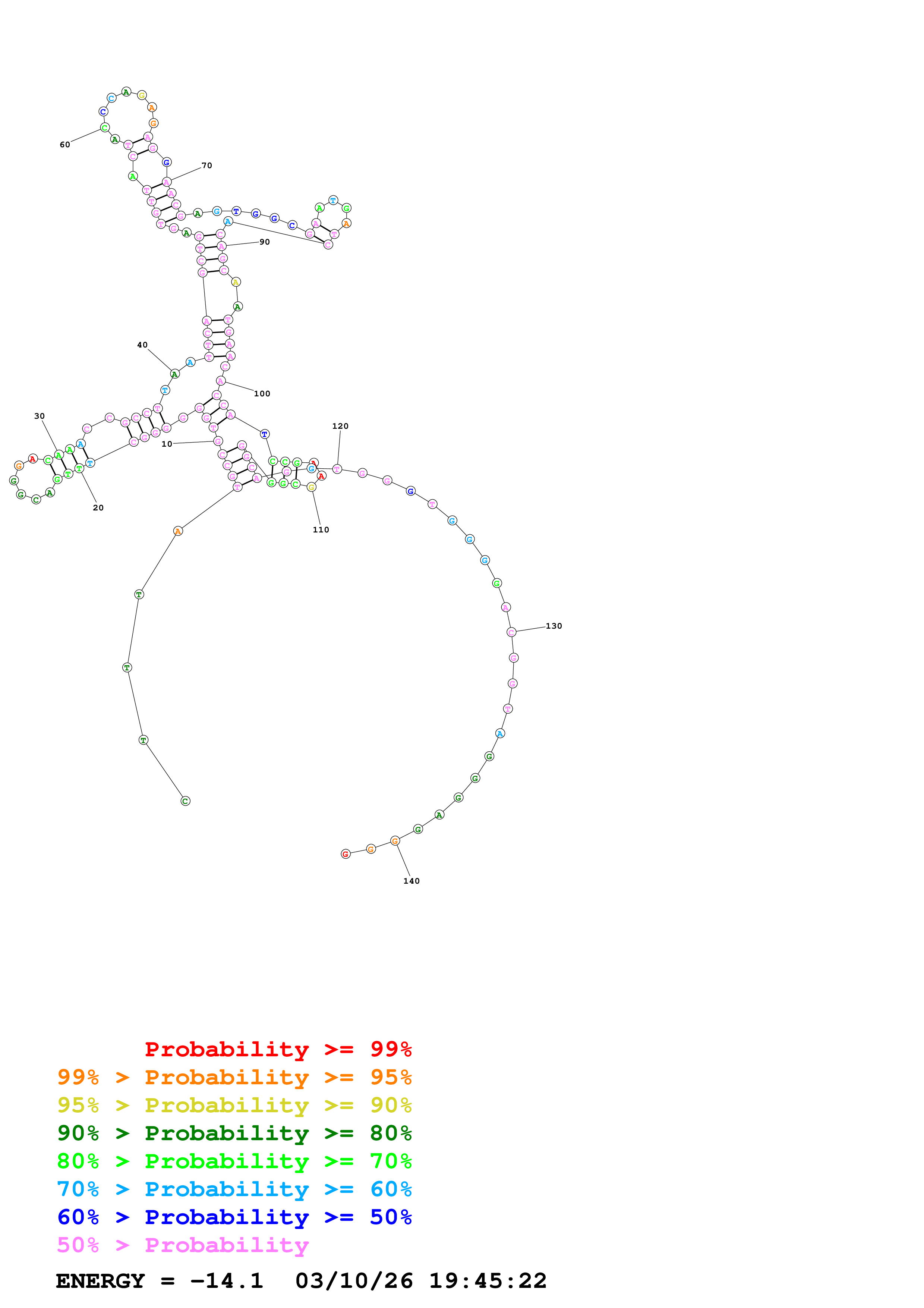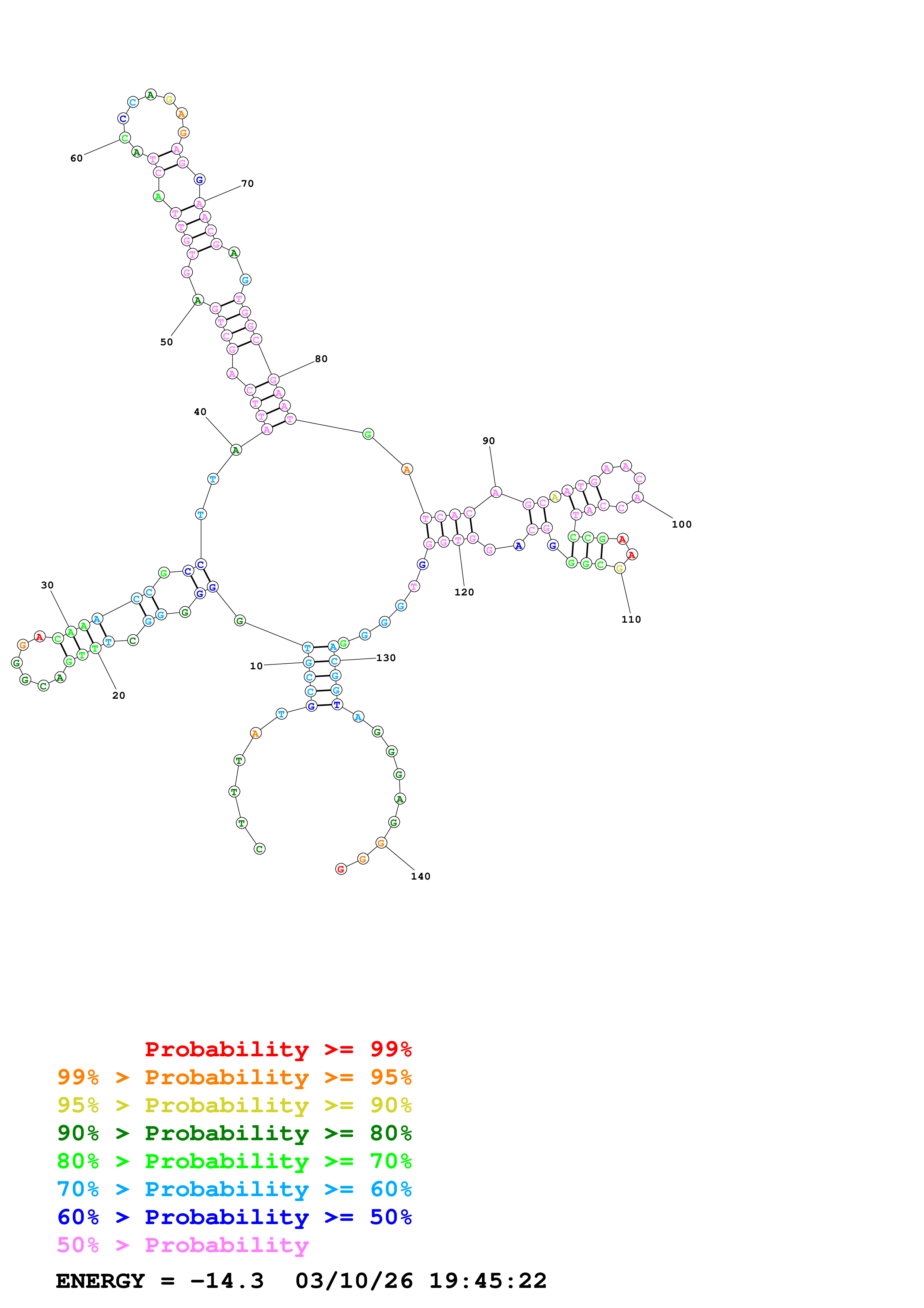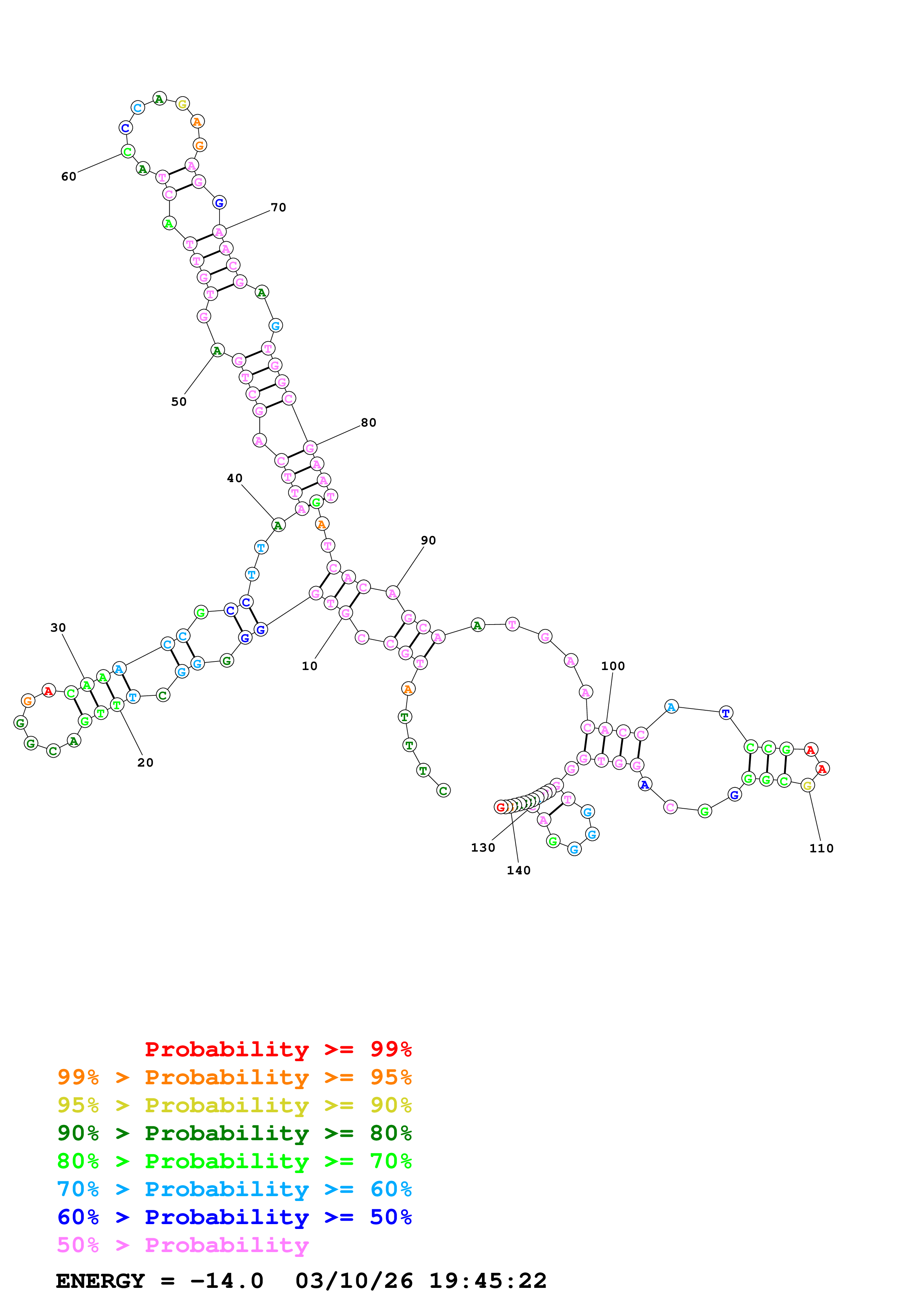 Fold Predict1.fasta Fold.ct --DNA --loop 30 --maximum 20 --percent 10 --temperature 310.15 --window 3