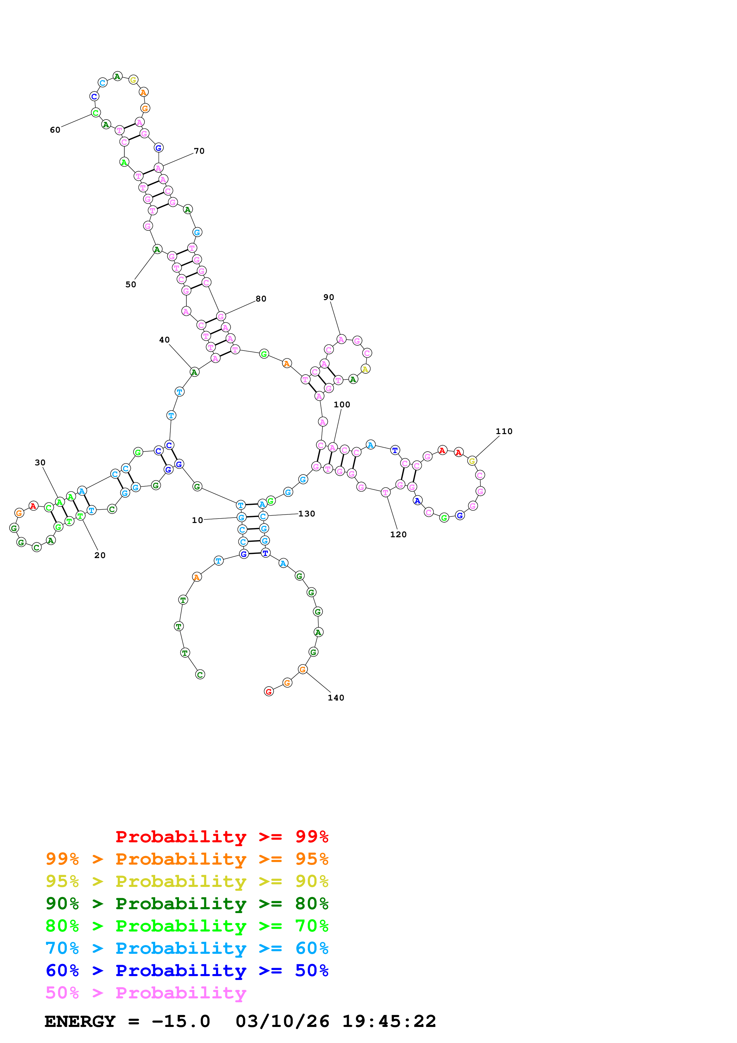 (Generate a structure or structures composed of highly probable base pairs. This is an alternative method for structure prediction that may have higher fidelity in structure prediction.)