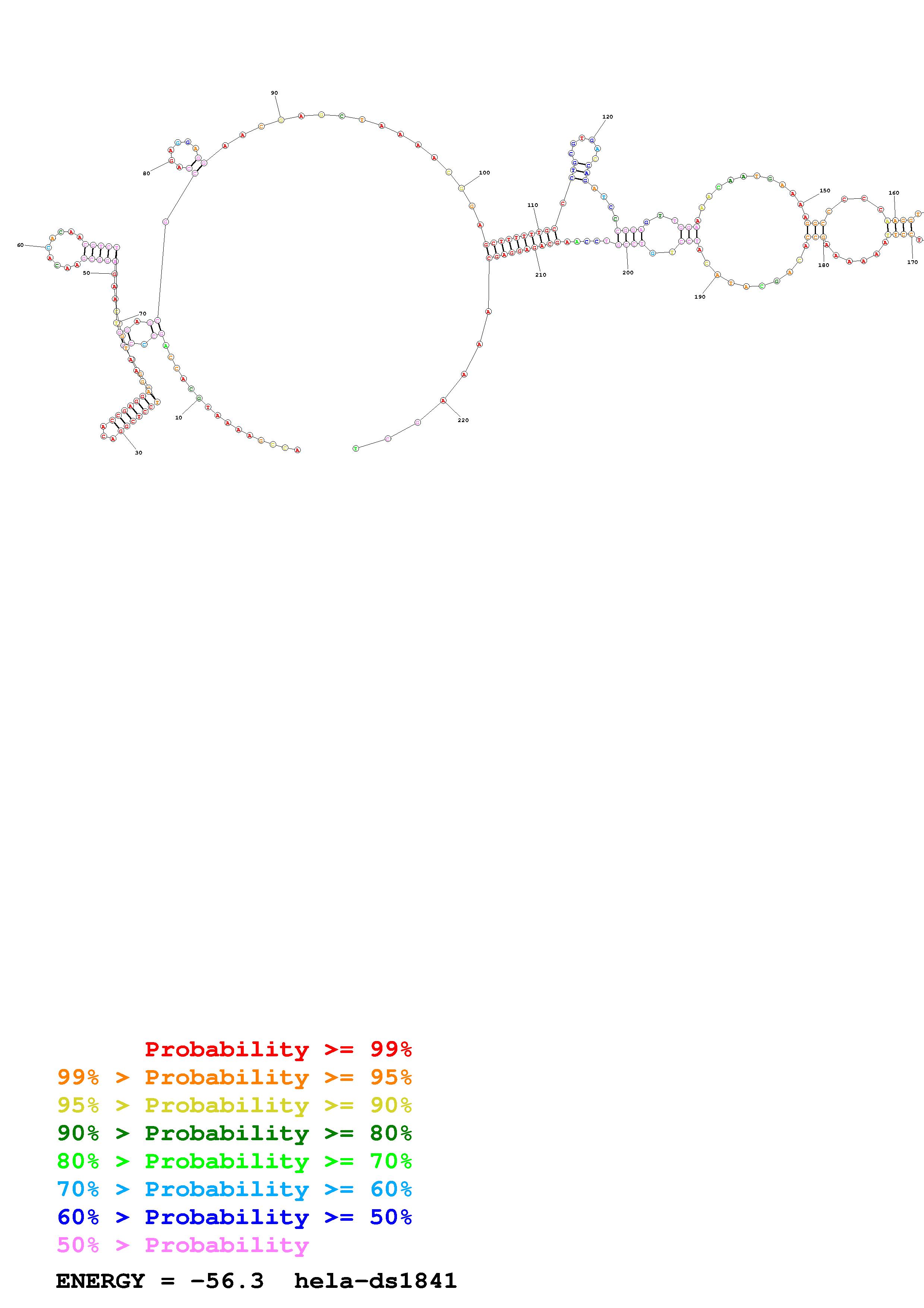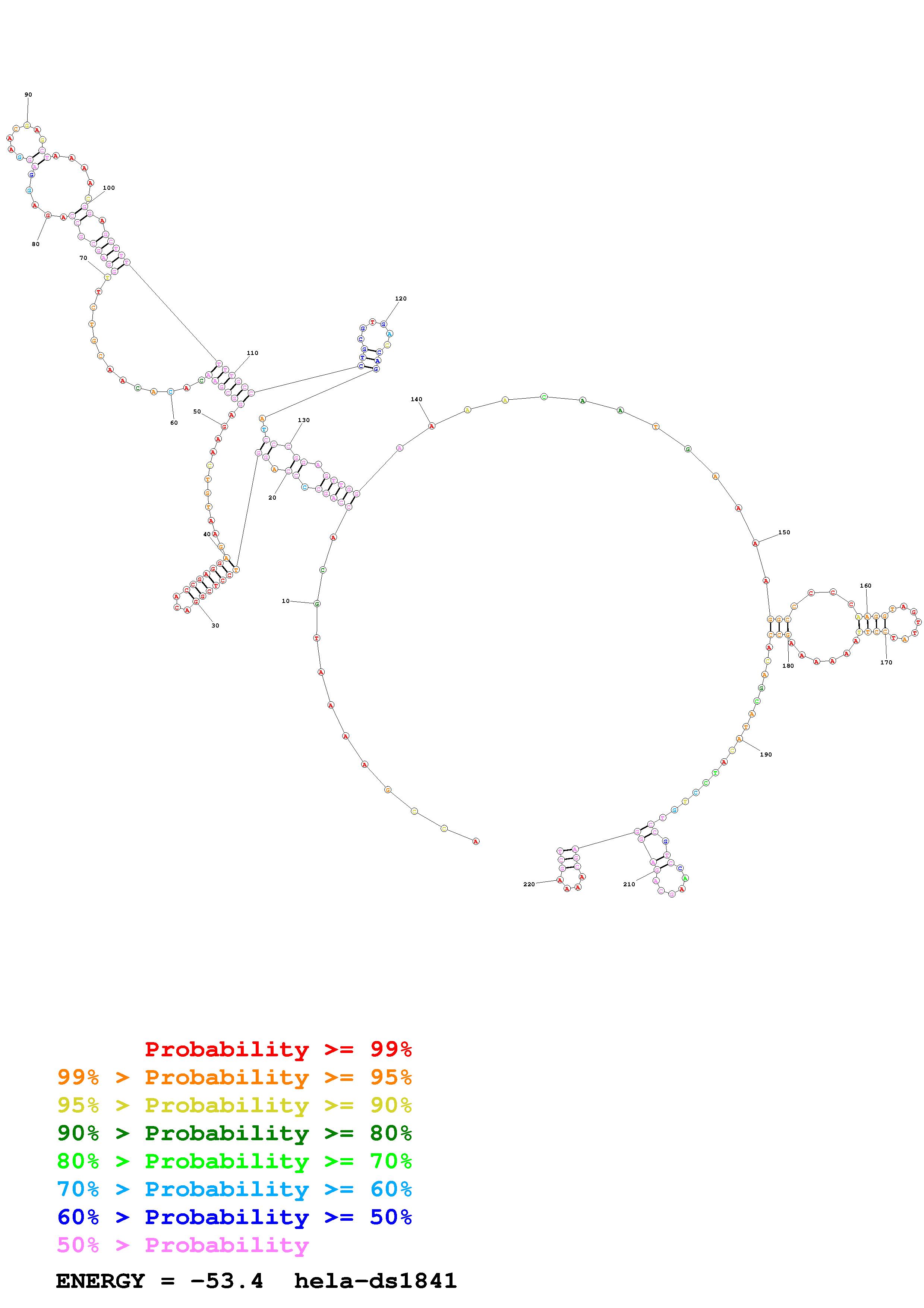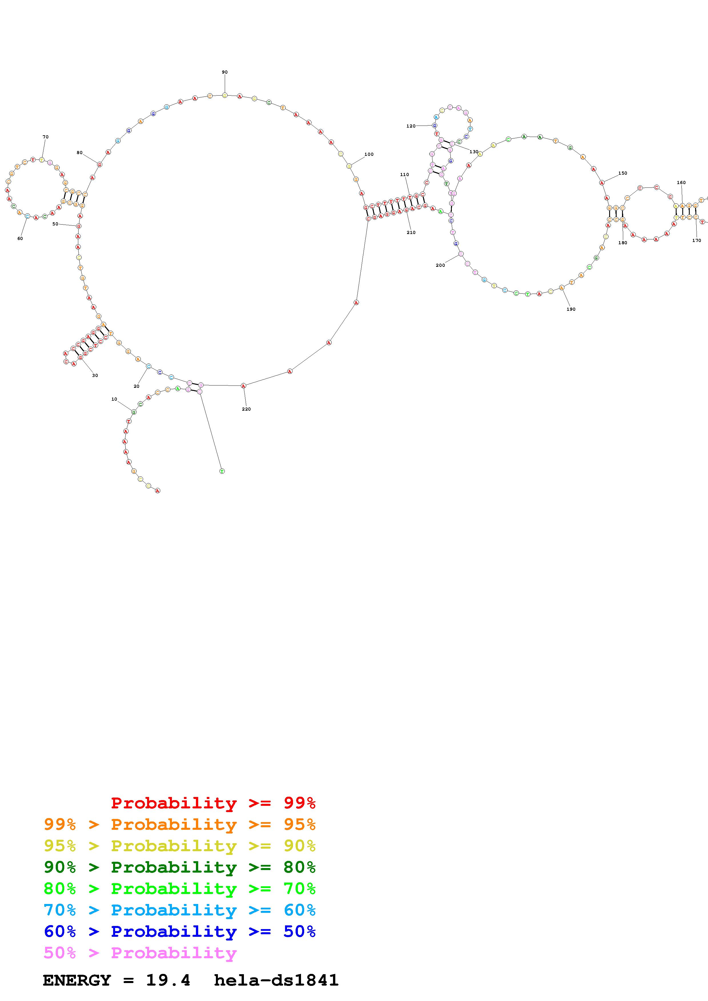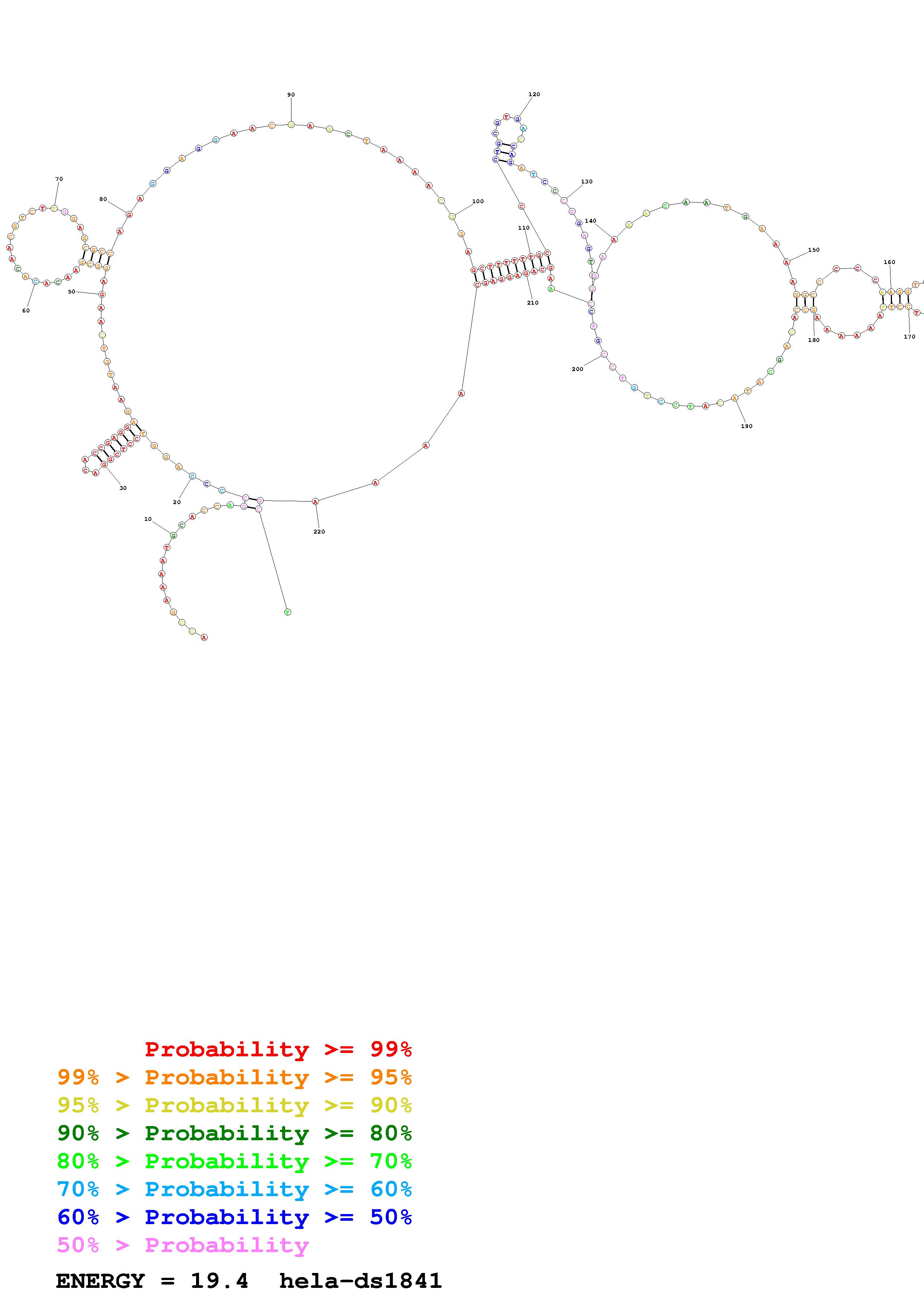 Fold Predict1.fasta Fold.ct --loop 30 --maximum 20 --percent 10 --SHAPE Hela_ds39.txt --SHAPEintercept -0.6 --SHAPEslope 3 --temperature 310.15 --window 3