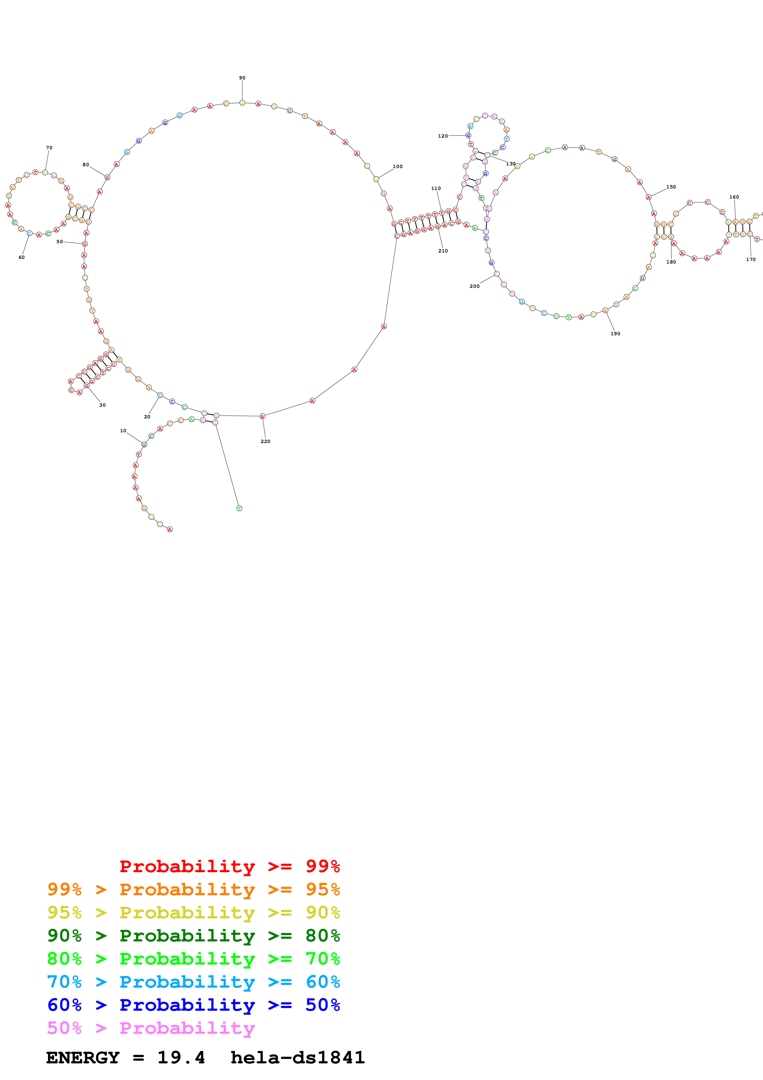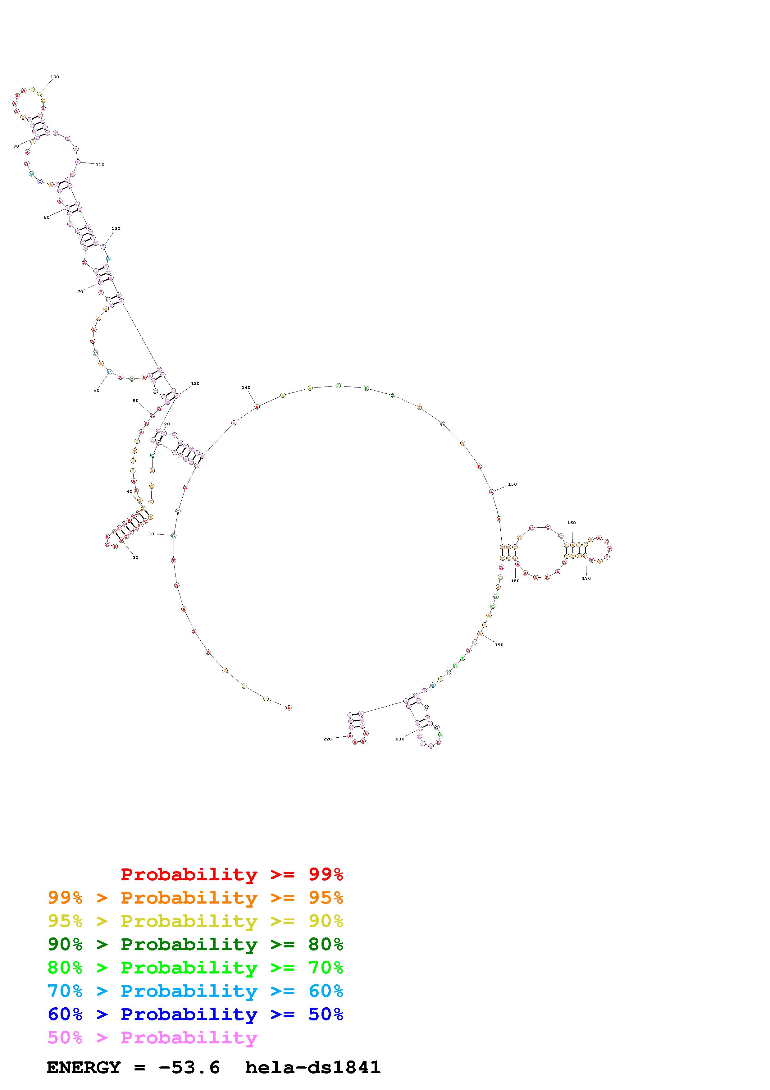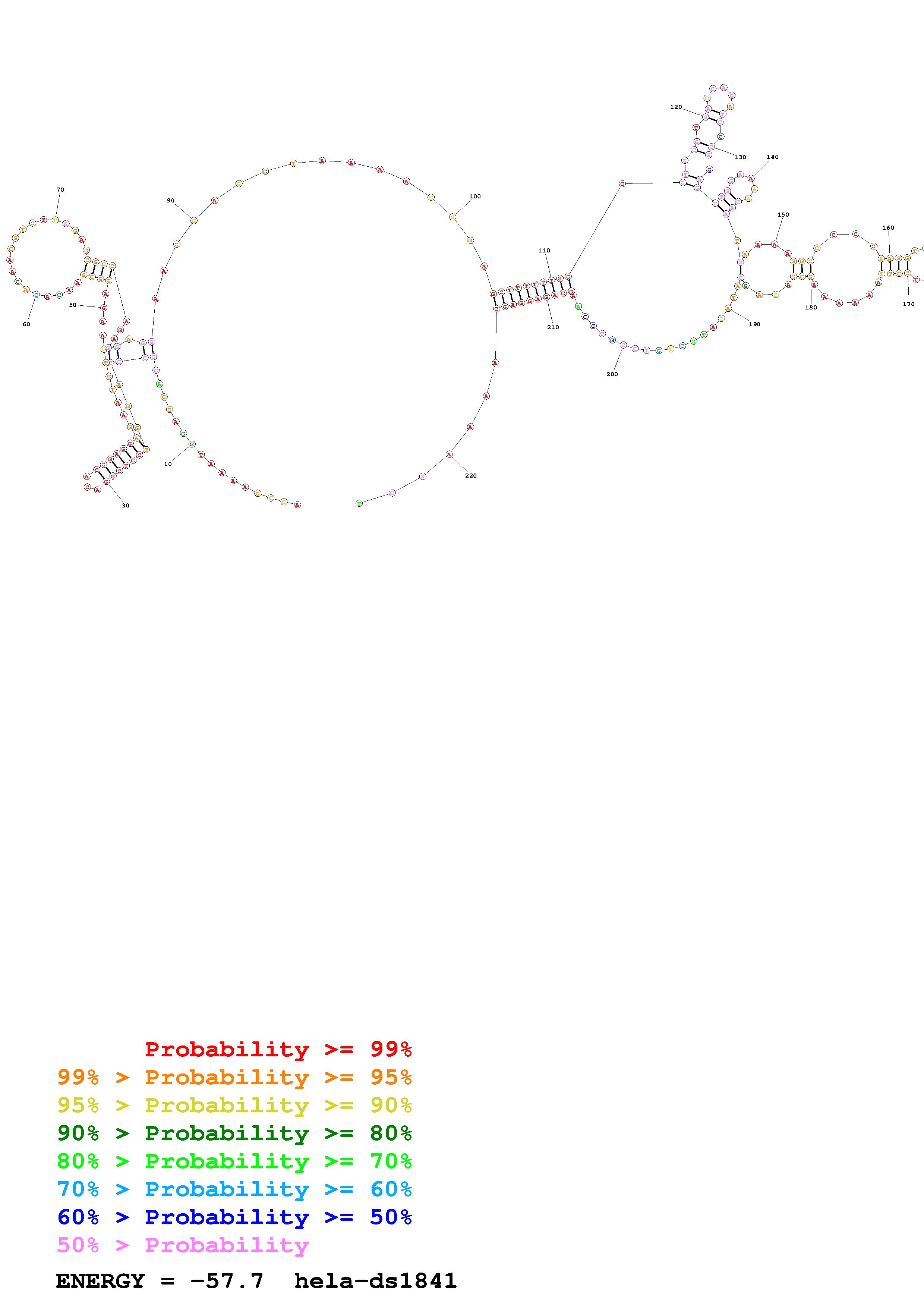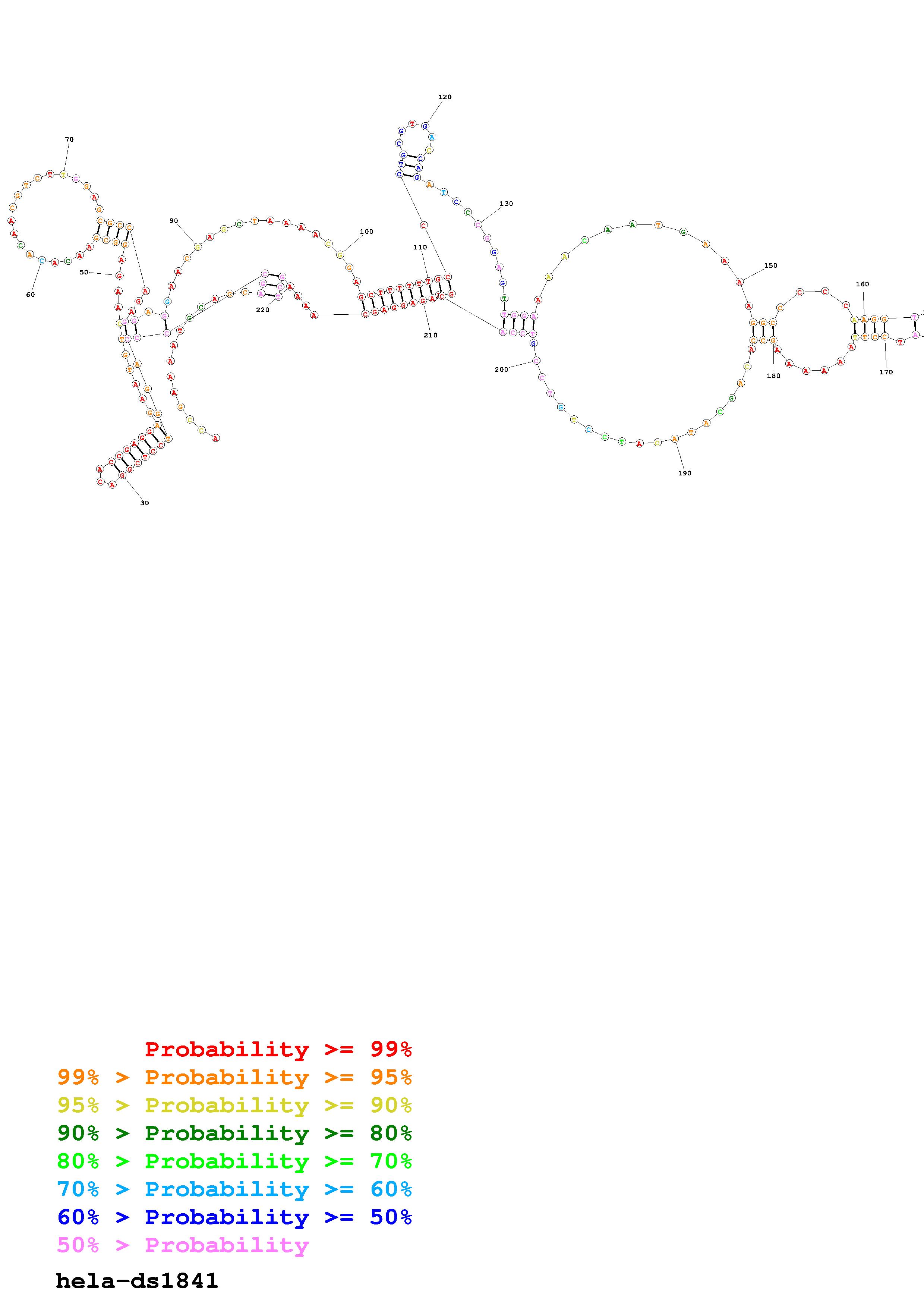Fold Predict1.fasta Fold.ct --loop 30 --maximum 20 --percent 10 --SHAPE Hela_ds39.txt --SHAPEintercept -0.6 --SHAPEslope 3 --temperature 310.15 --window 3