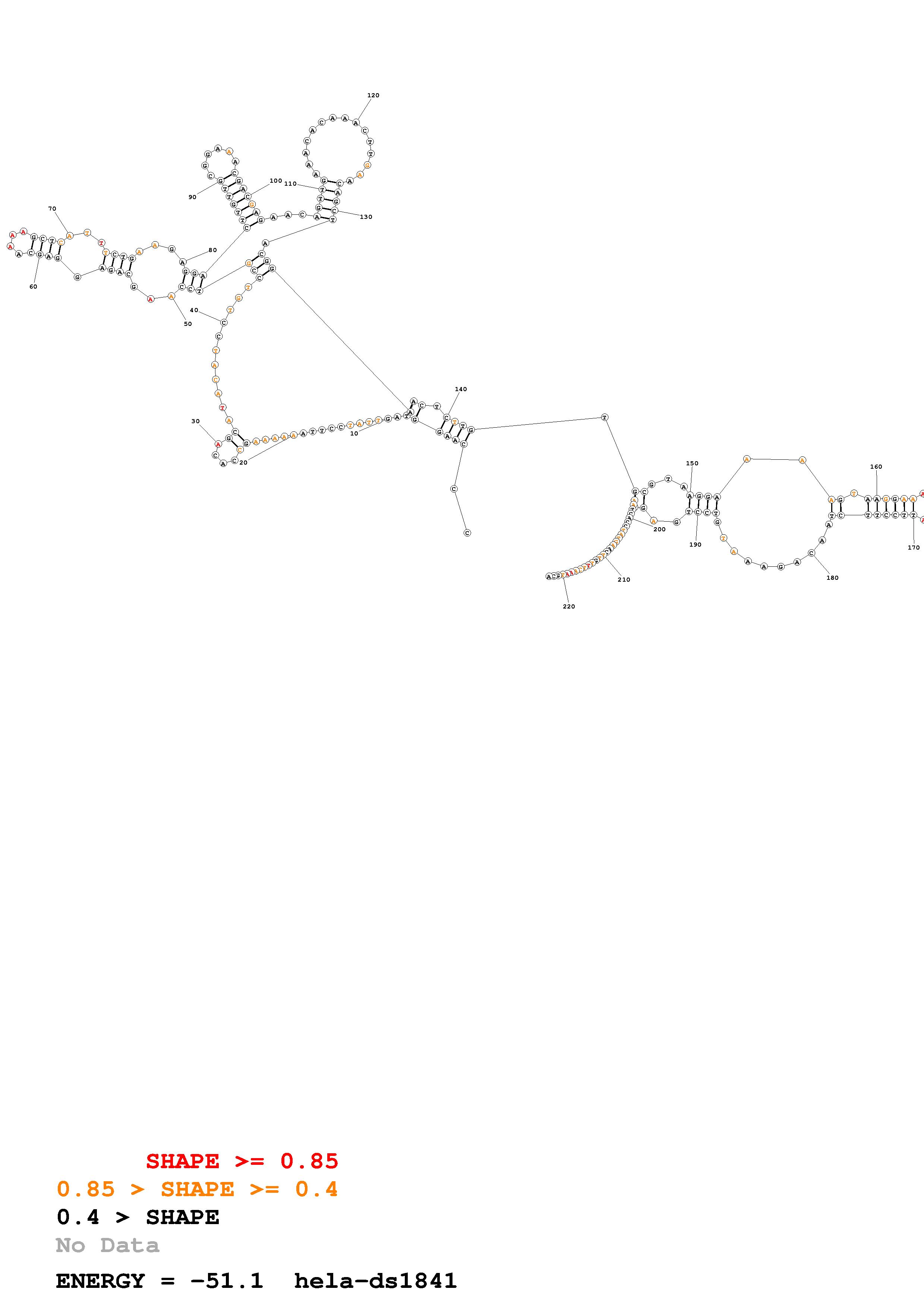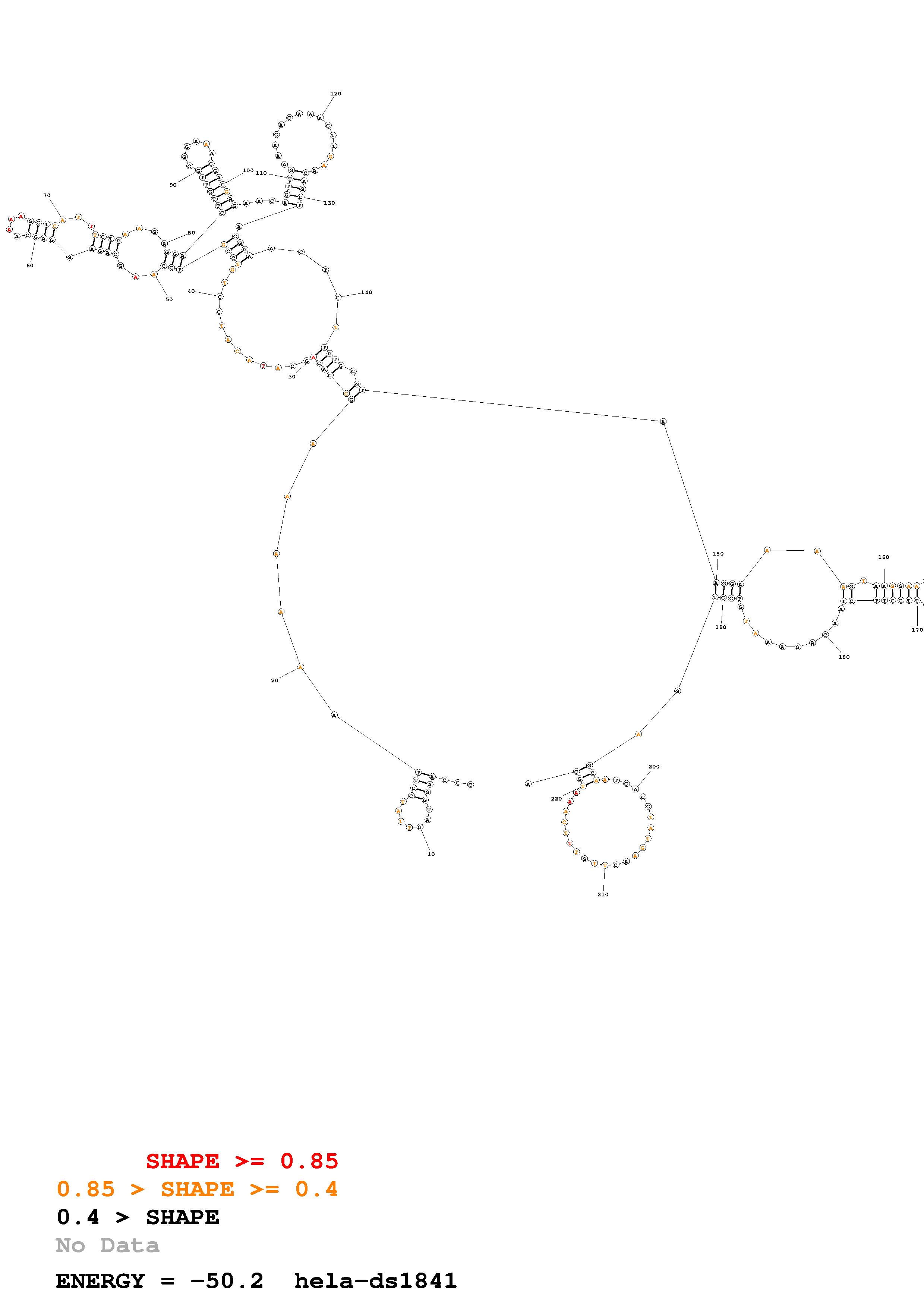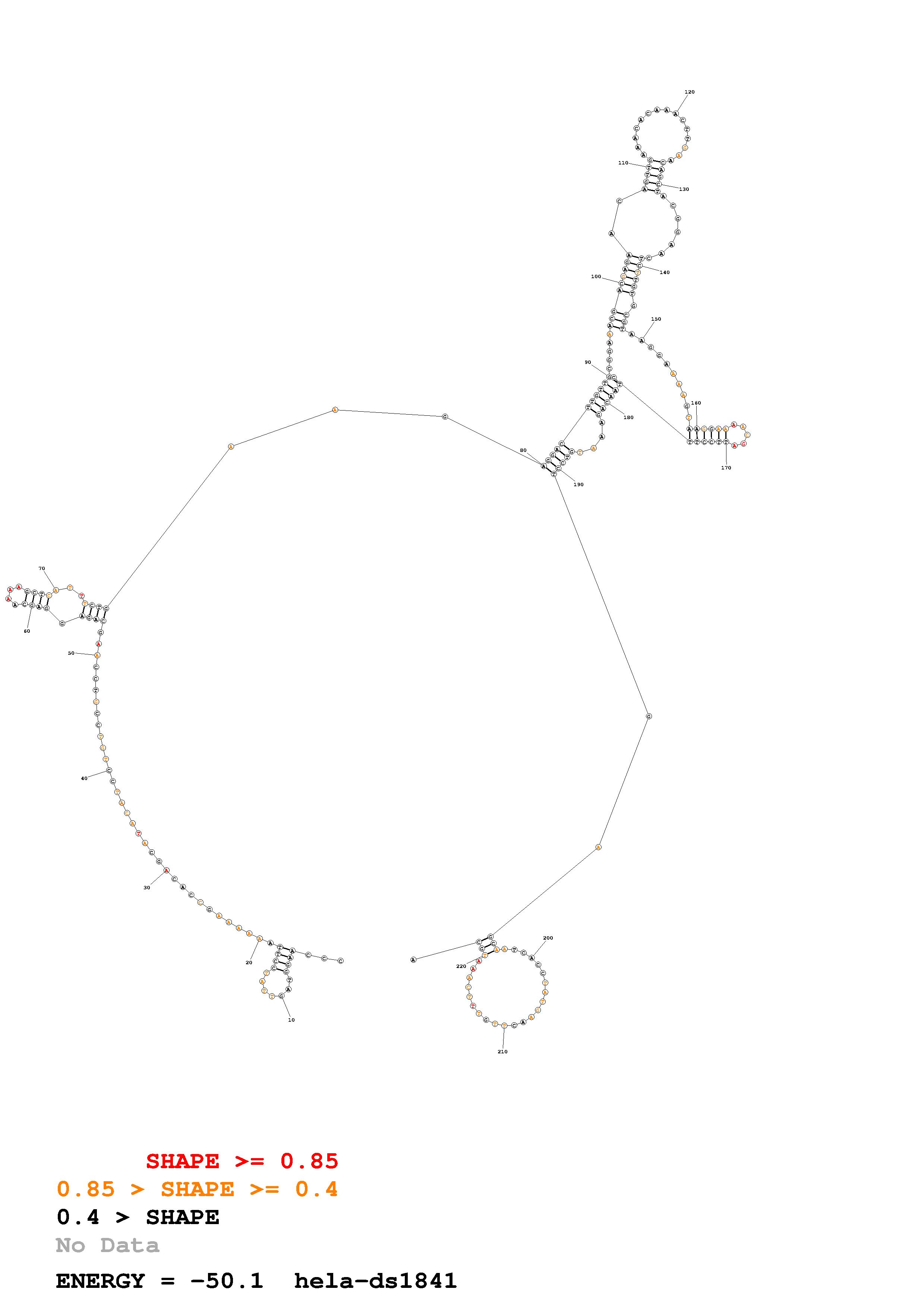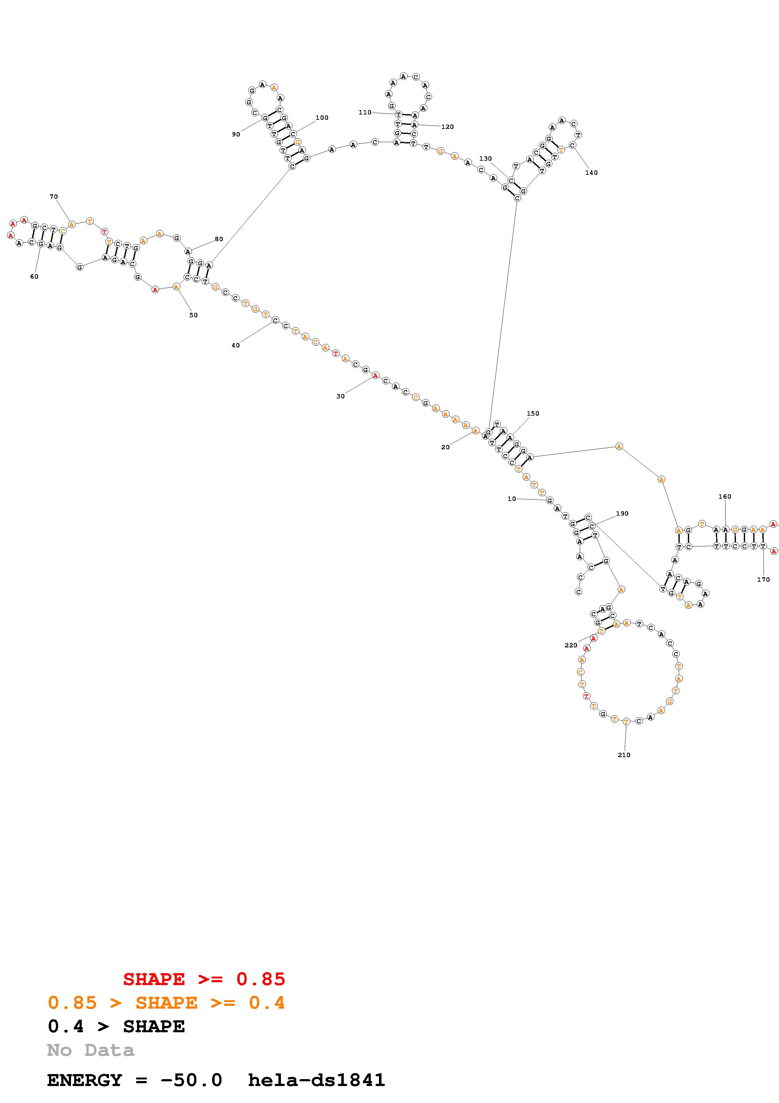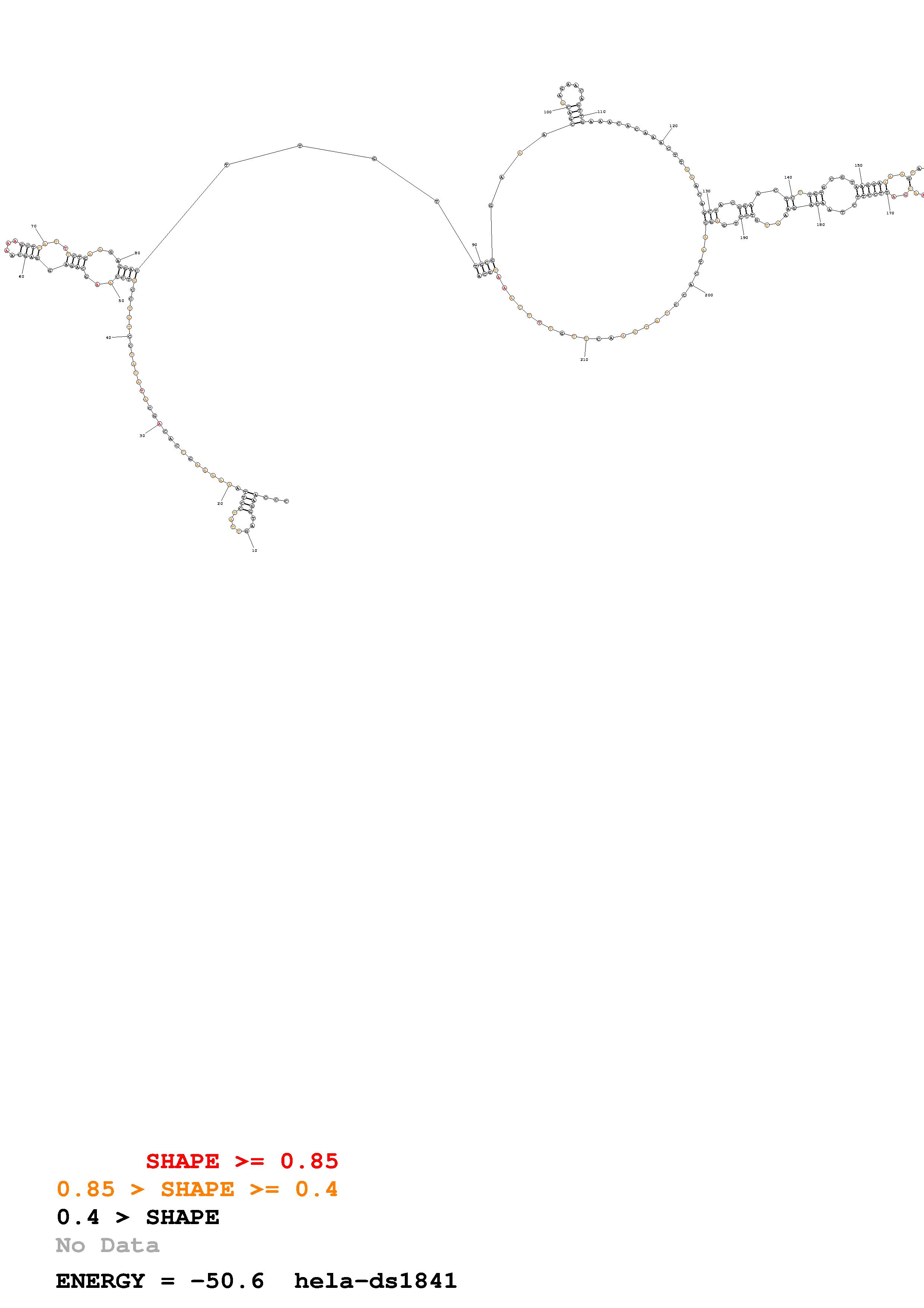 Fold Predict1.fasta Fold.ct --loop 30 --maximum 20 --percent 10 --SHAPE Hela_ds40.txt --SHAPEintercept -0.6 --SHAPEslope 3 --temperature 310.15 --window 3