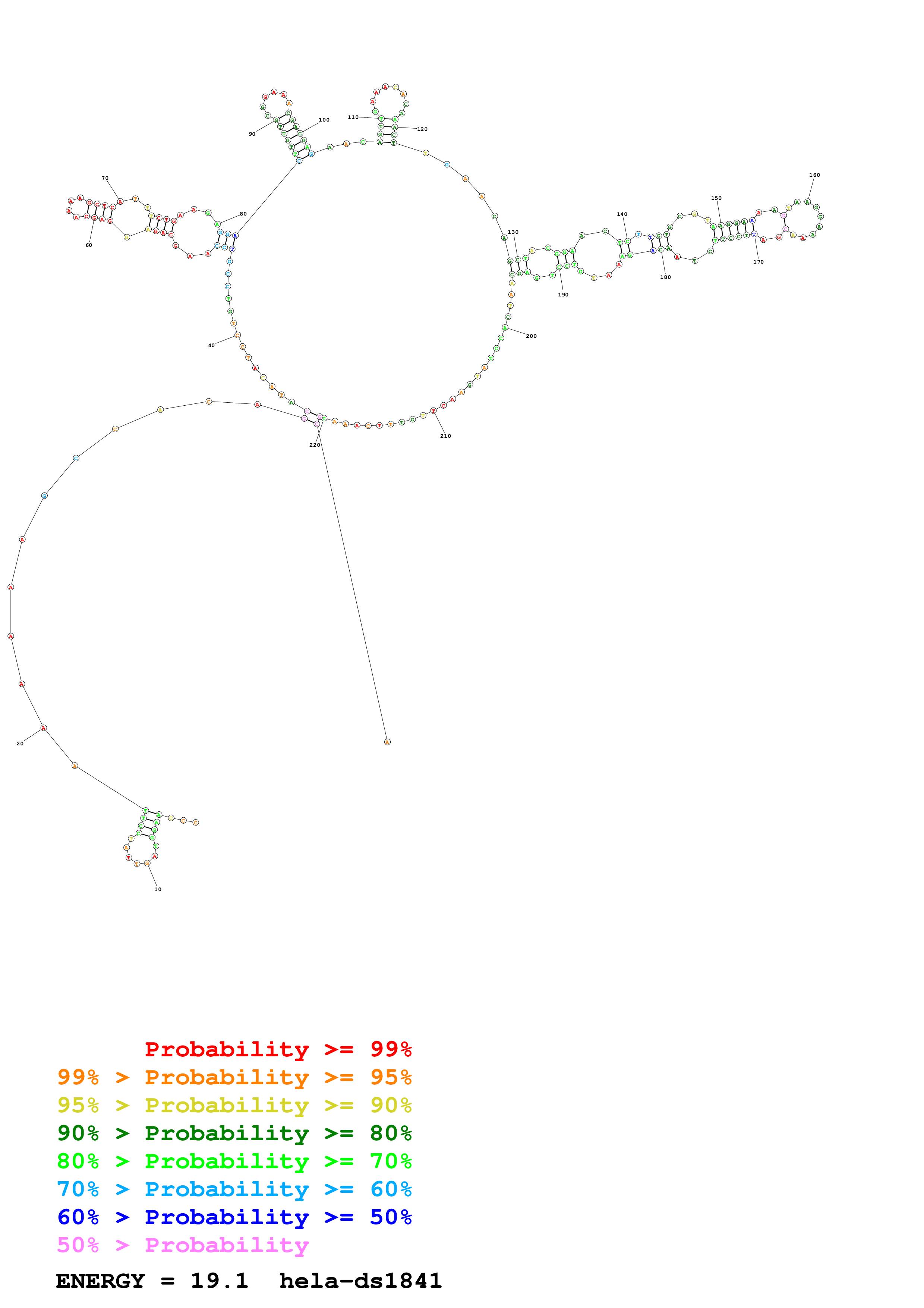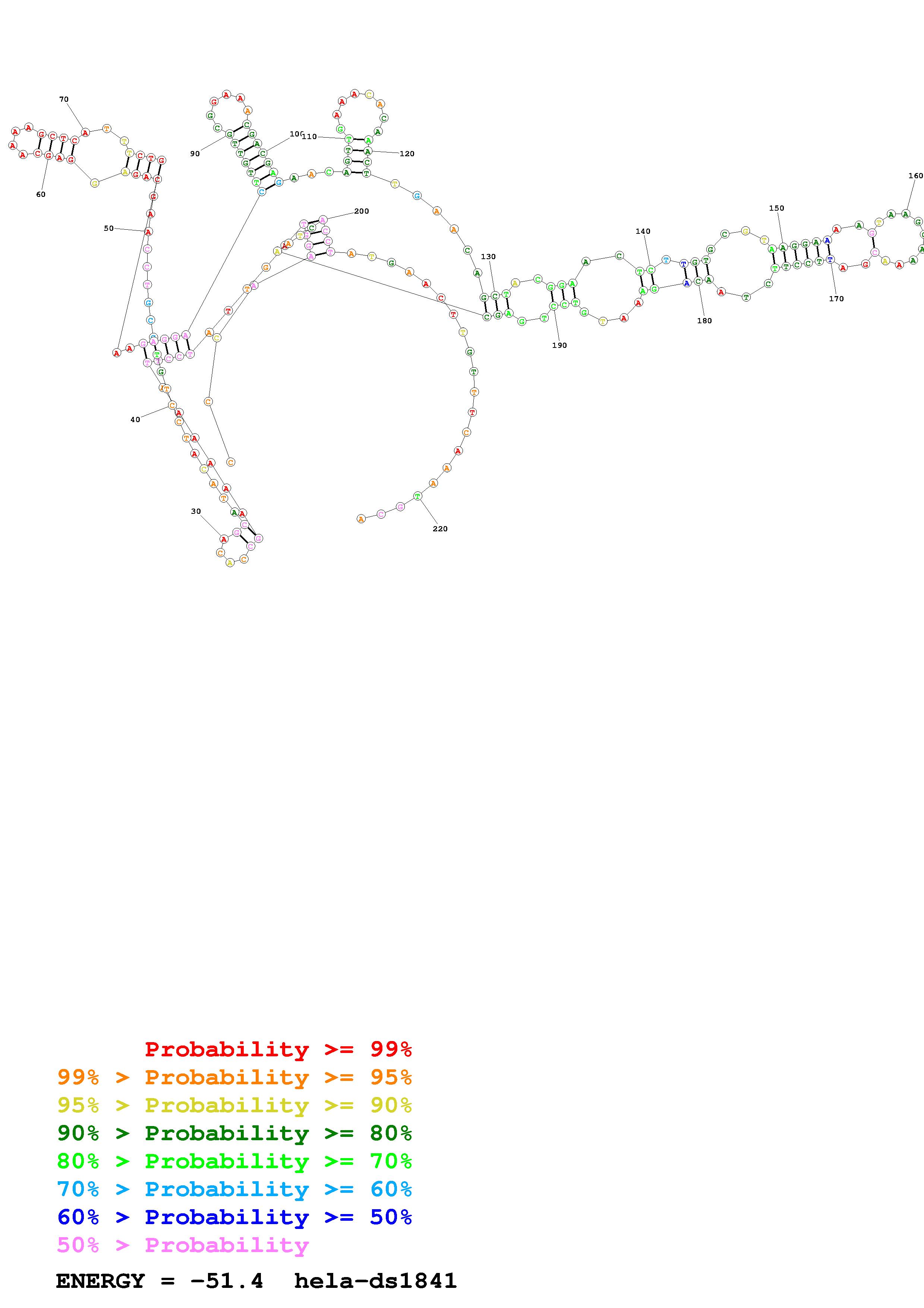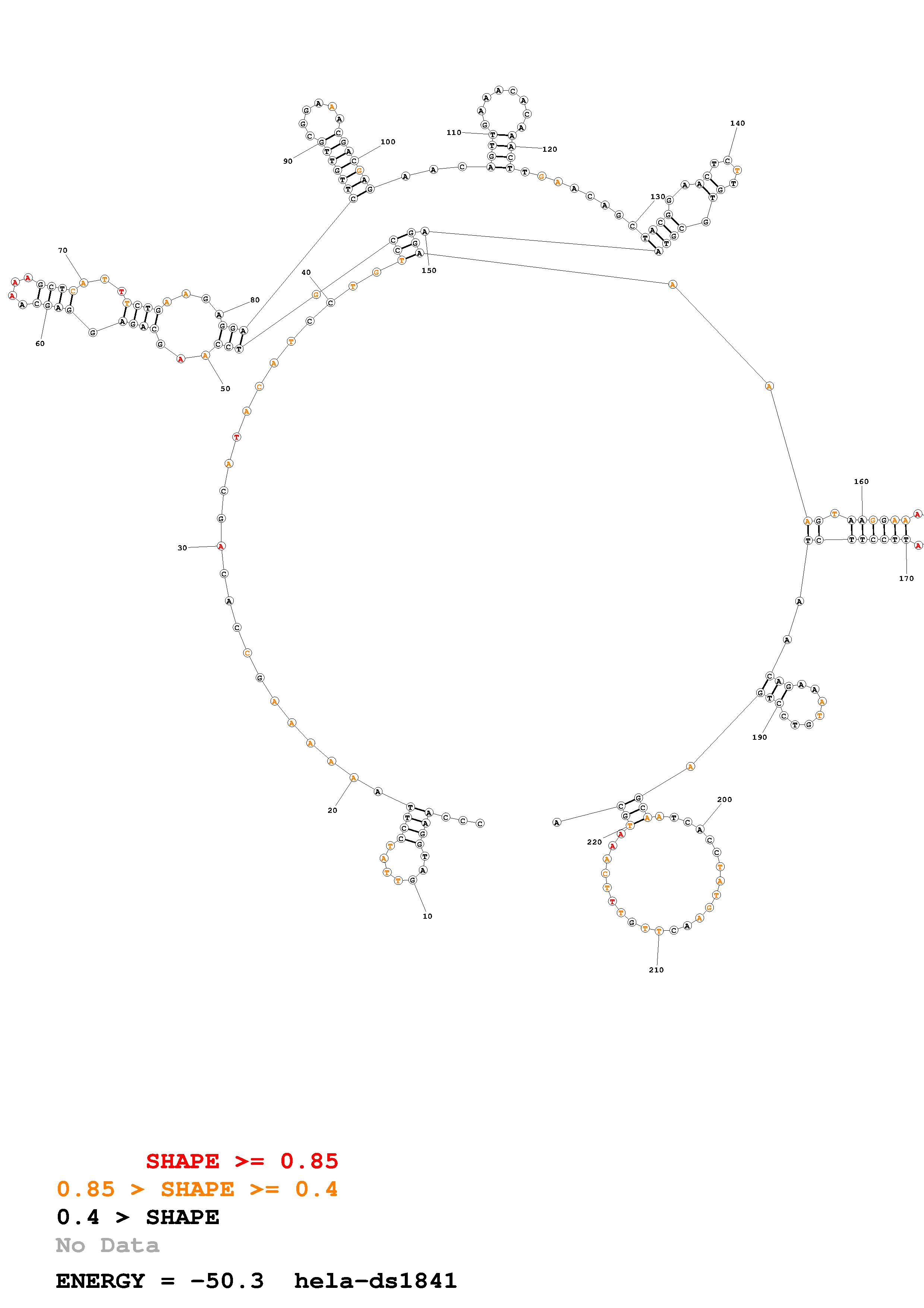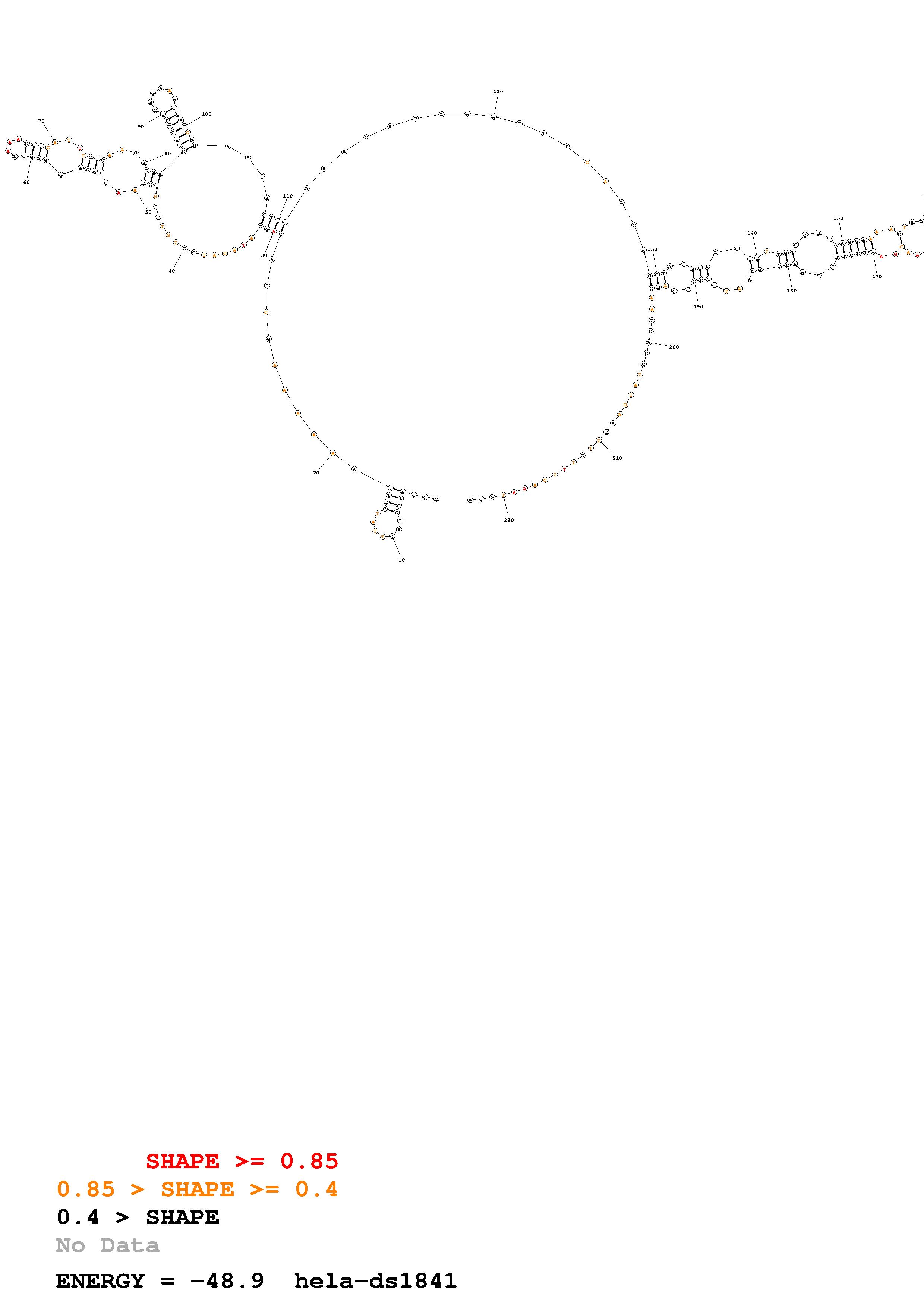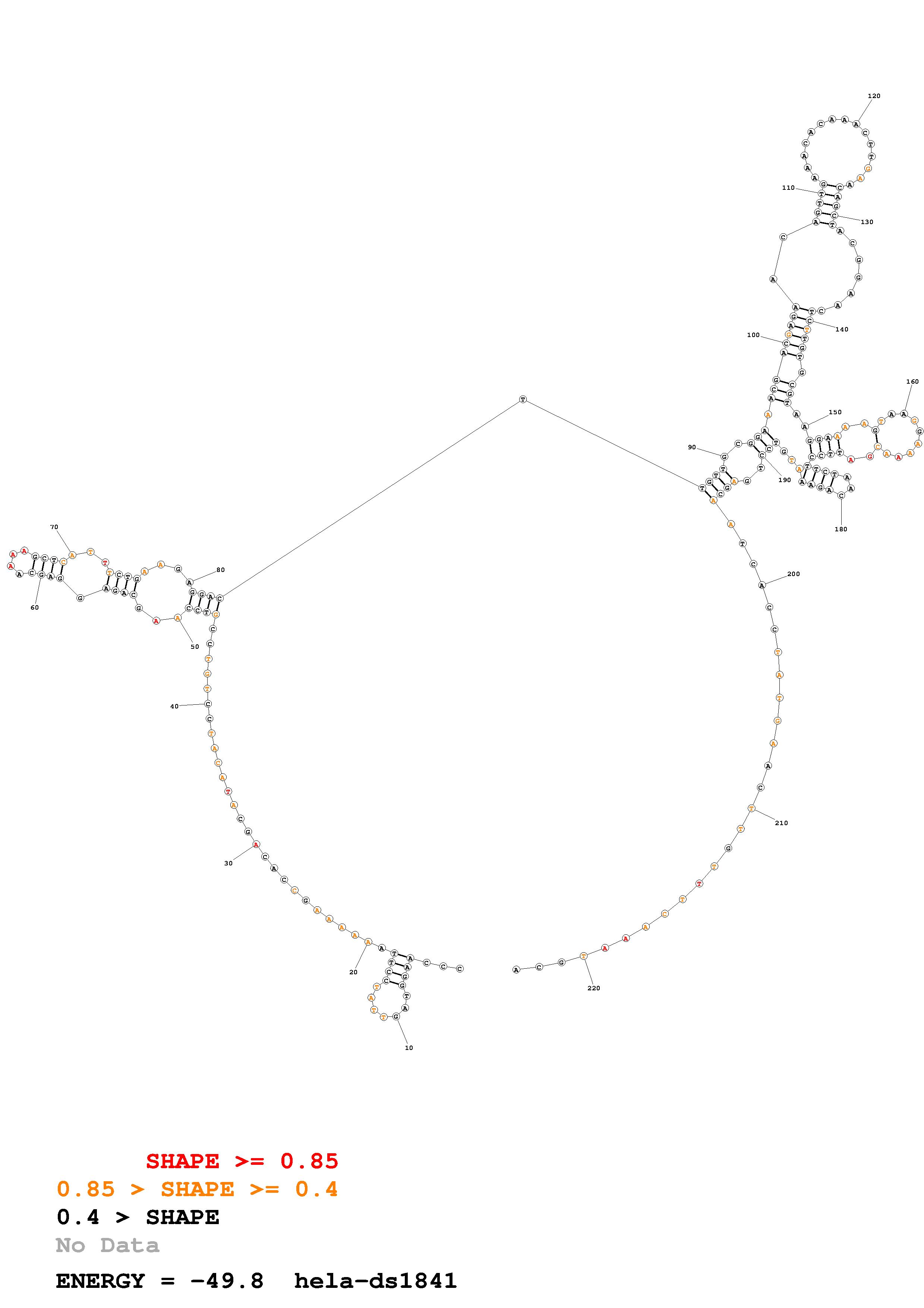 Fold Predict1.fasta Fold.ct --loop 30 --maximum 20 --percent 10 --SHAPE Hela_ds40.txt --SHAPEintercept -0.6 --SHAPEslope 3 --temperature 310.15 --window 3