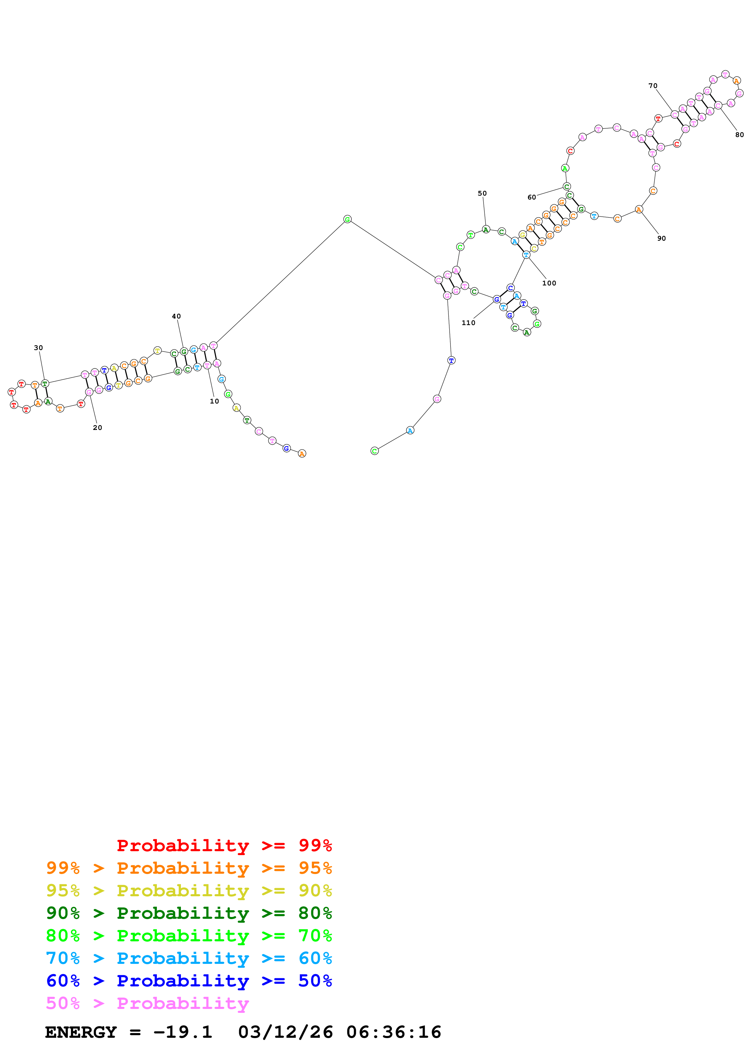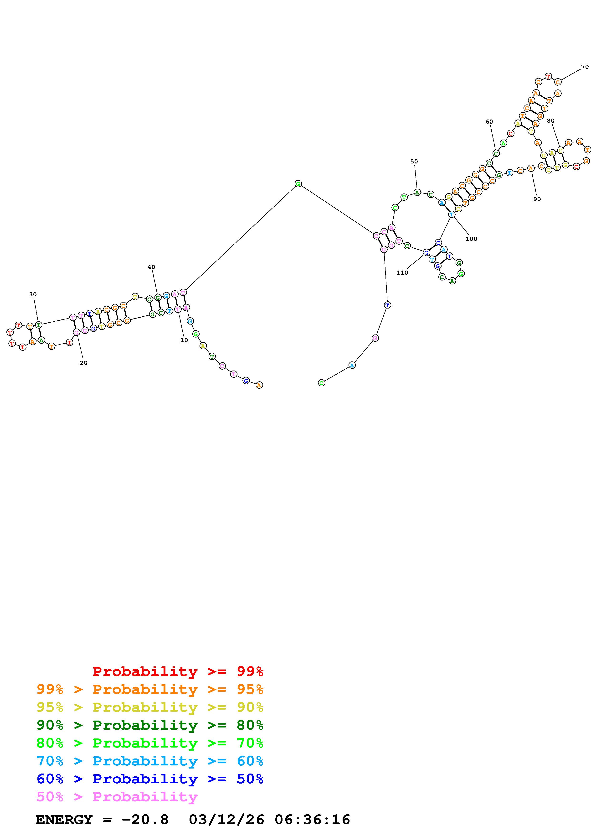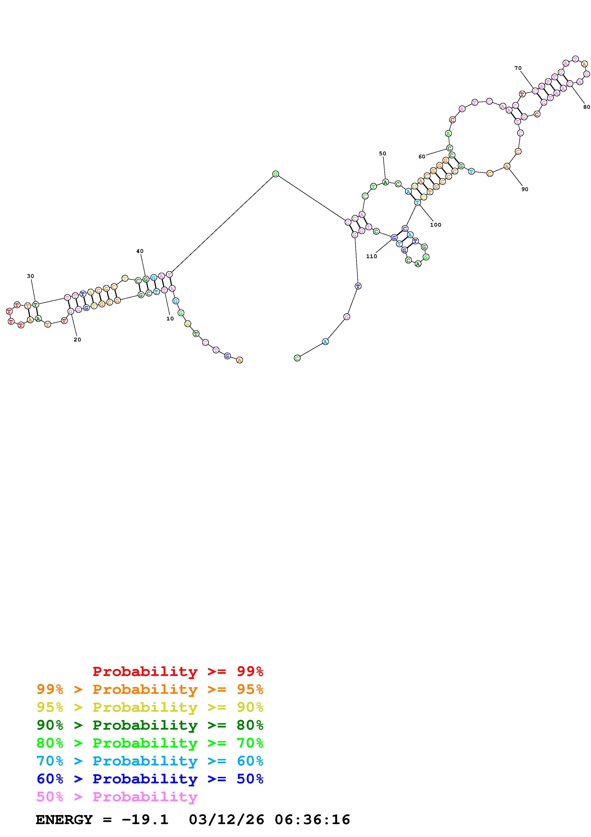 Fold Predict1.fasta Fold.ct --DNA --loop 30 --maximum 20 --percent 10 --temperature 310.15 --window 3