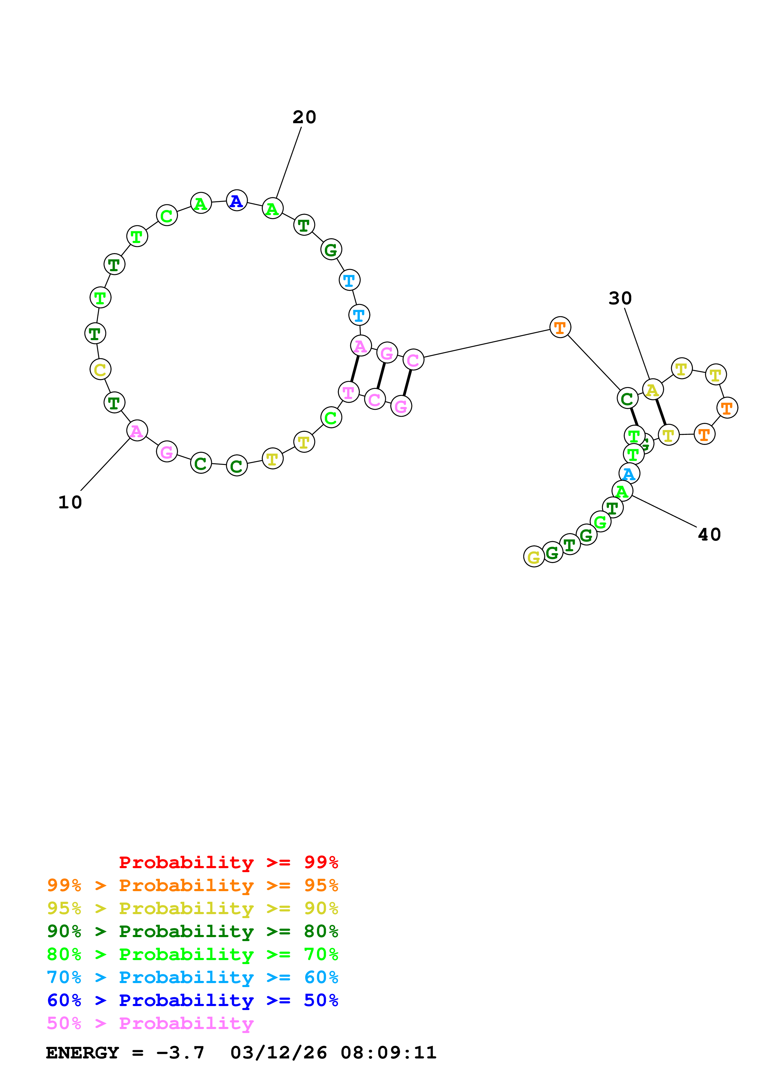 Fold Predict1.fasta Fold.ct --DNA --loop 30 --maximum 20 --percent 10 --temperature 310.15 --window 3