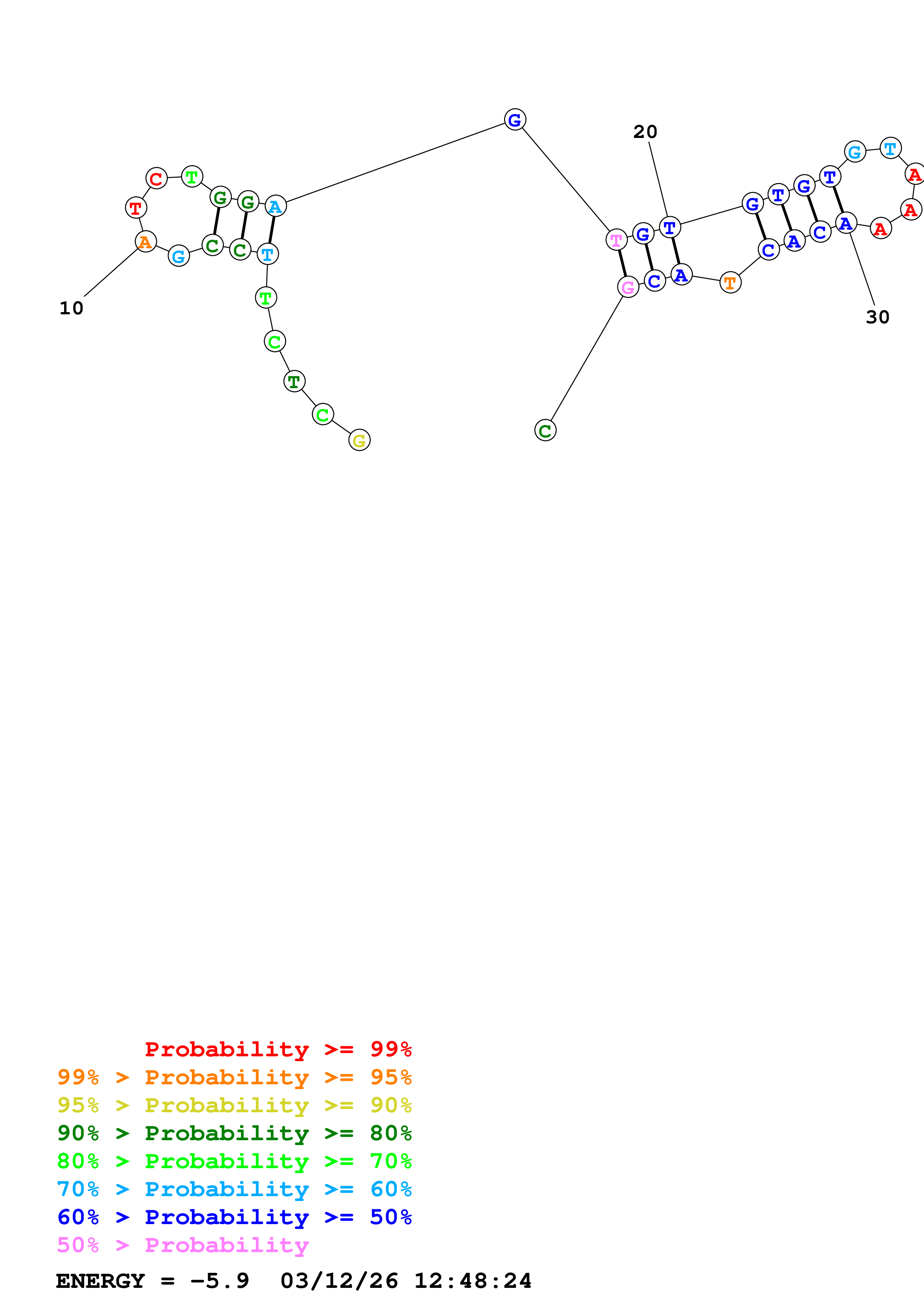 Fold Predict1.fasta Fold.ct --DNA --loop 30 --maximum 20 --percent 10 --temperature 310.15 --window 3
