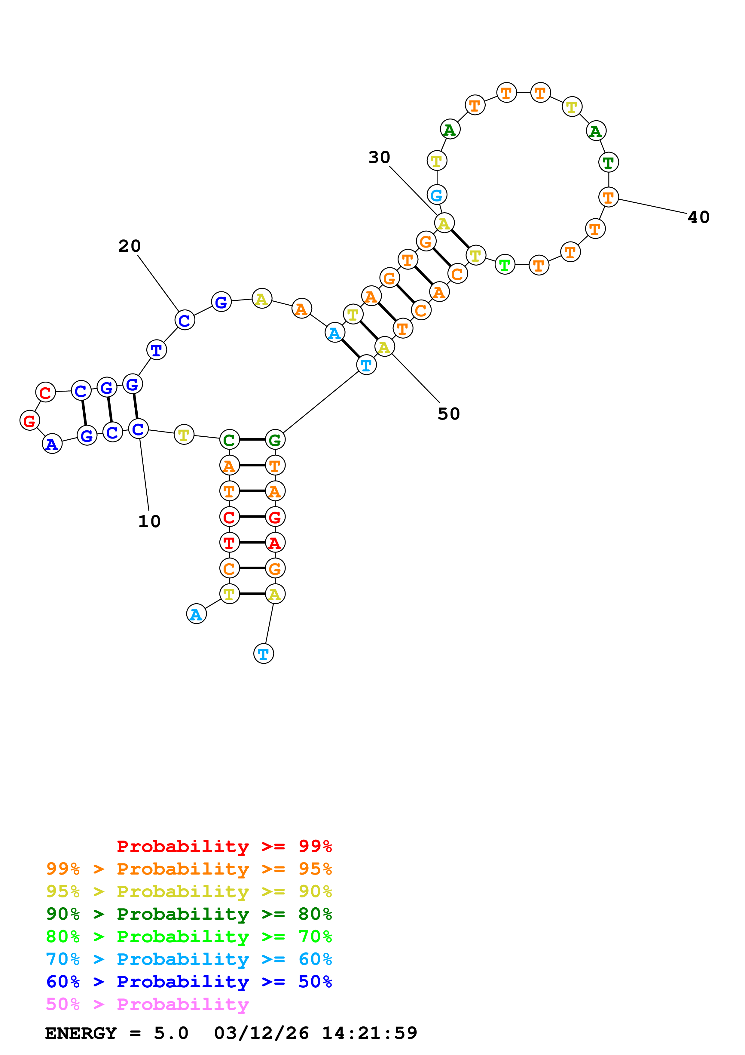 Fold Predict1.fasta Fold.ct --DNA --loop 30 --maximum 20 --percent 10 --temperature 310.15 --window 3