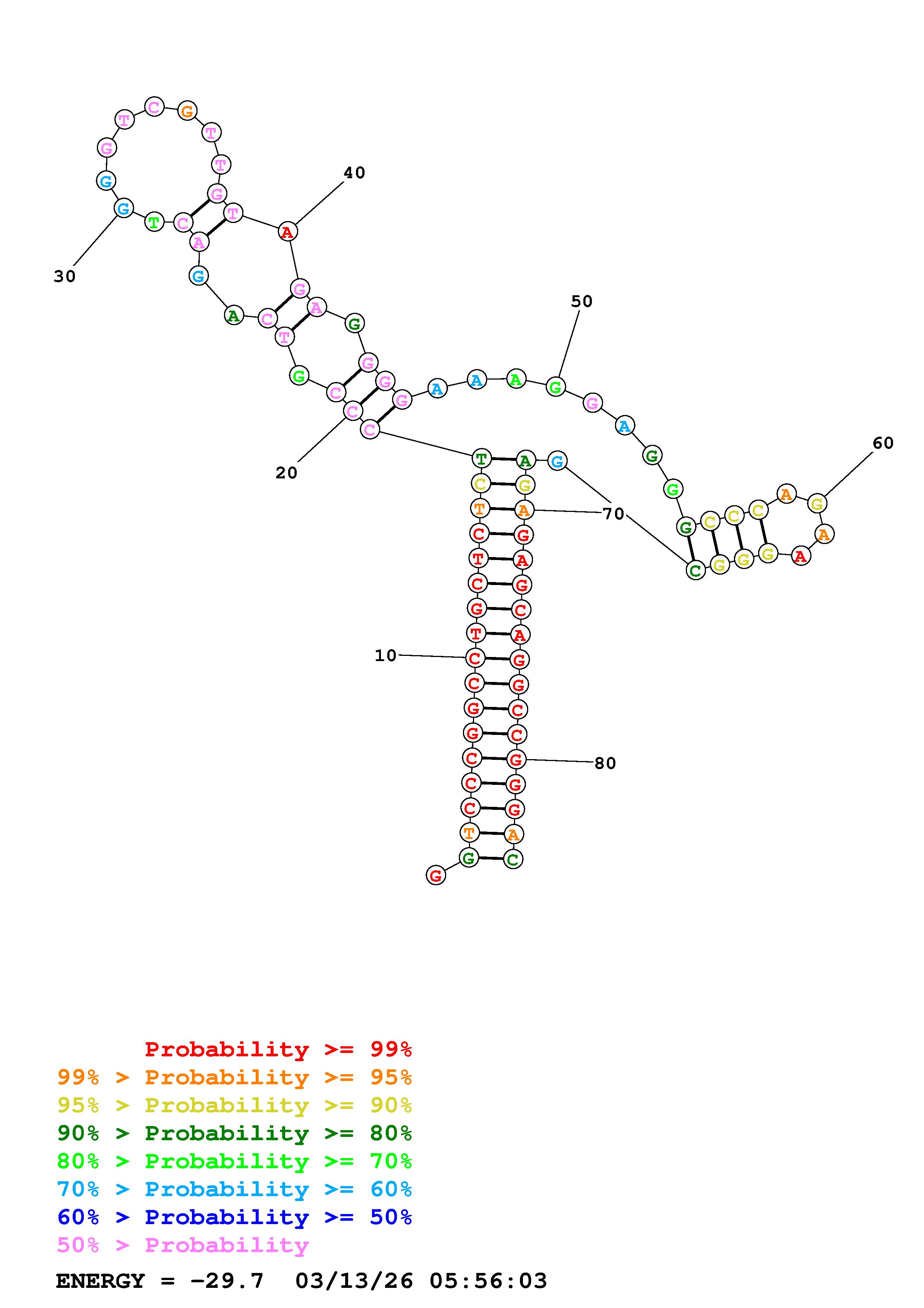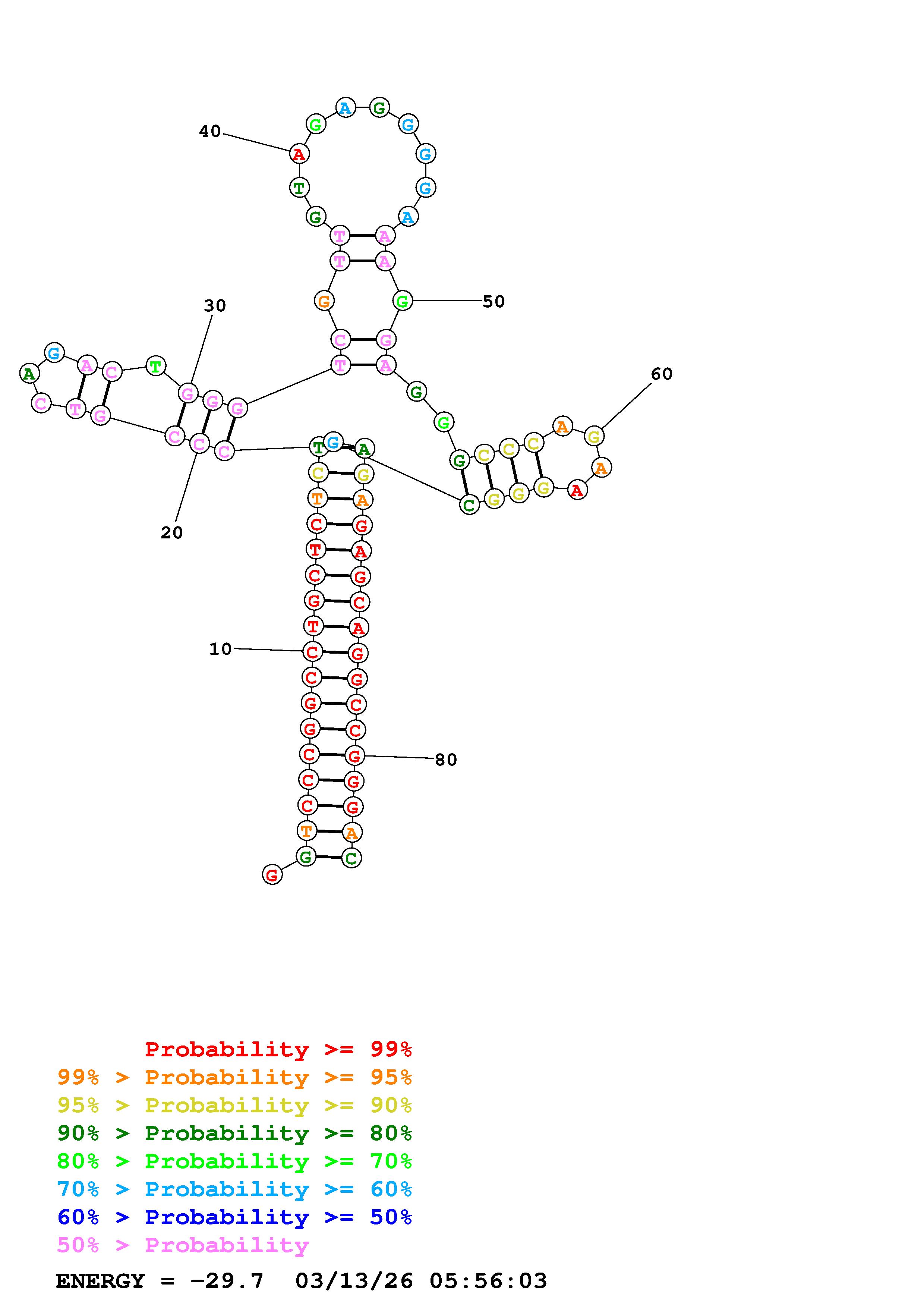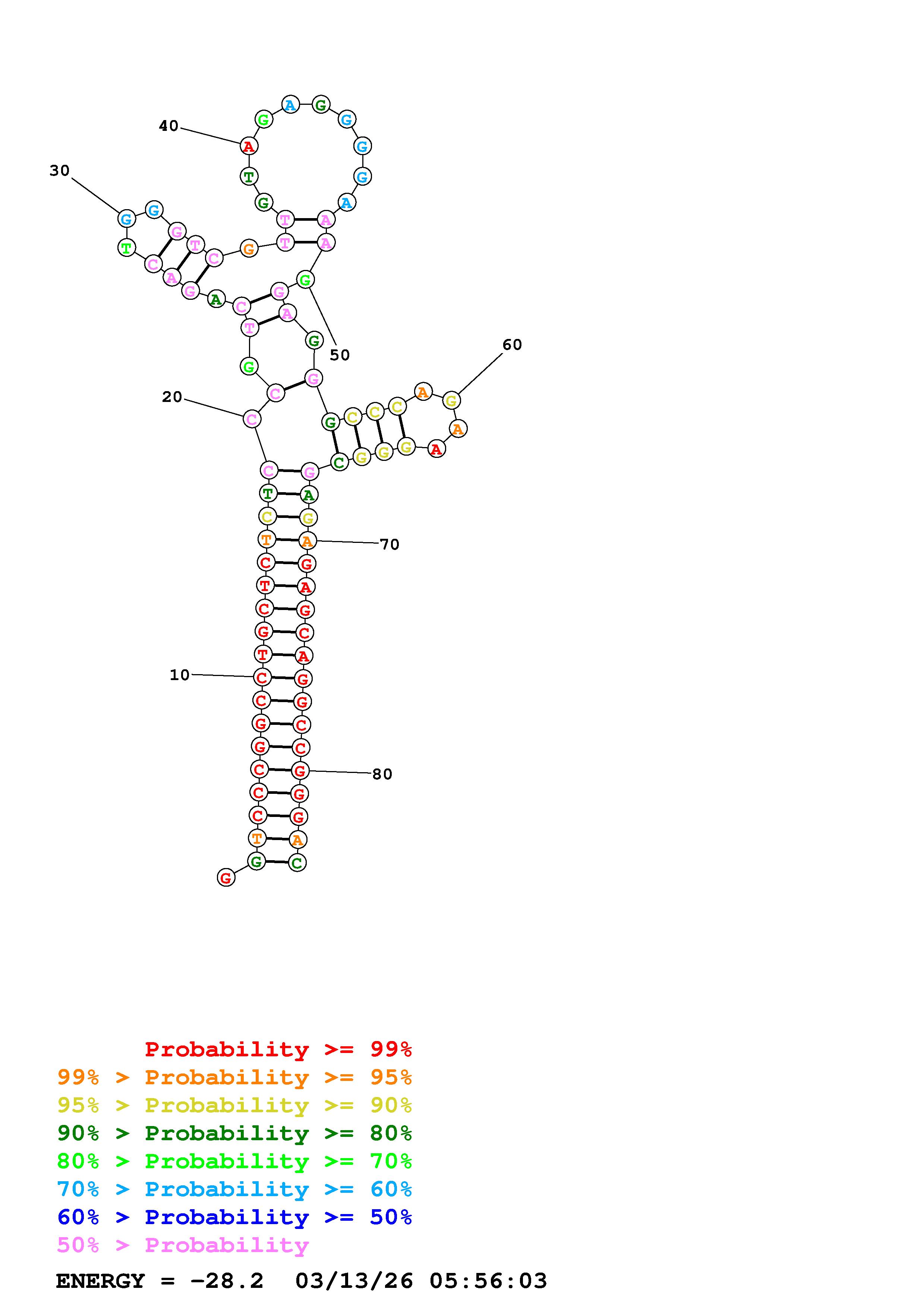 Fold Predict1.fasta Fold.ct --DNA --loop 30 --maximum 20 --percent 10 --temperature 310.15 --window 3